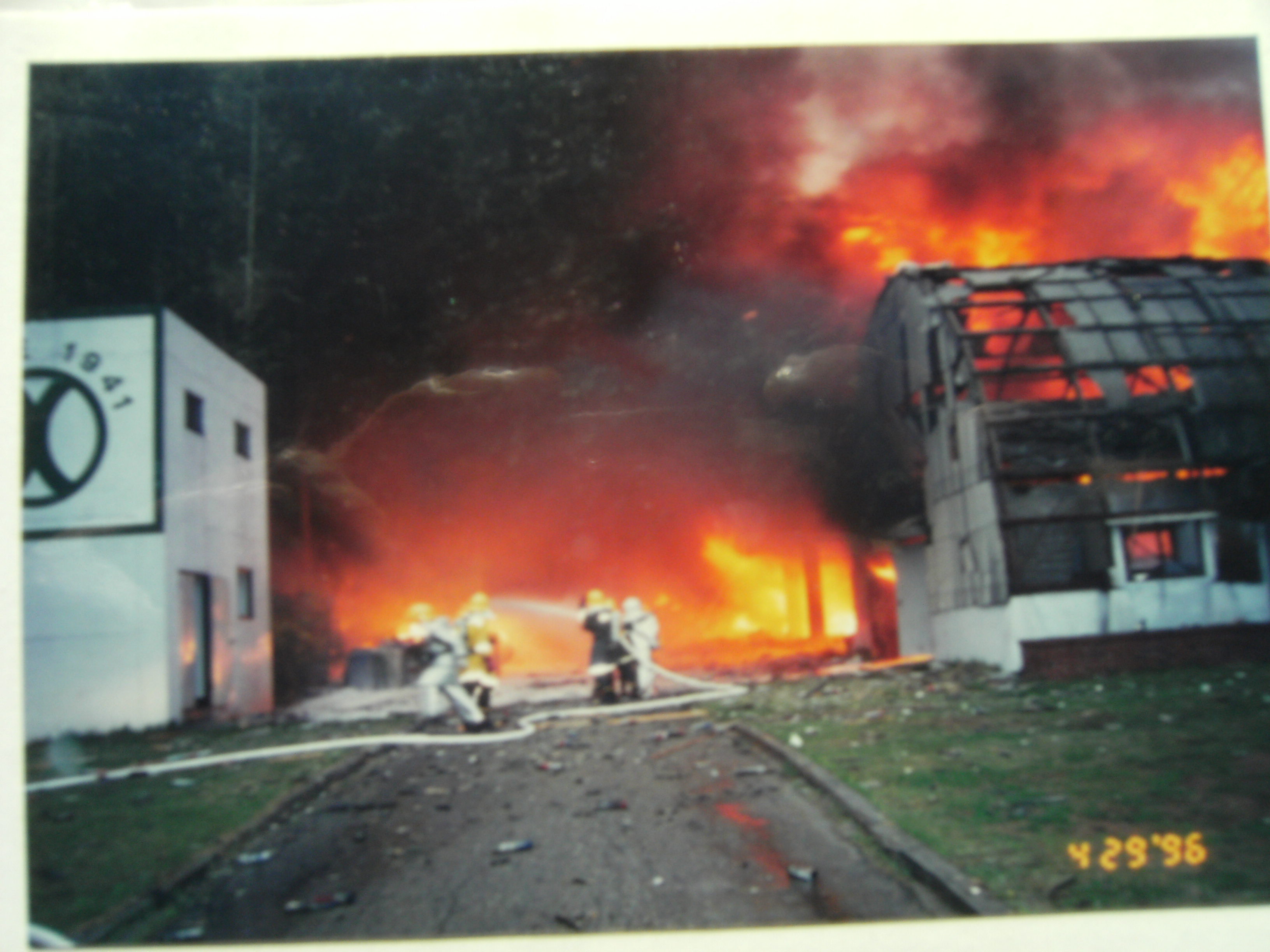 2022.11.06/ #기록 #기억 #화재 #유유산업 #옛신문 #옛사진/ 사진 제공: 안양소방서에 근무했던 김종철 소방관. 사진속 화재가 발생한 장소는 현재의 특별기획전시관이있던 곳이다. 1996년 4월 29일 오후 안양시 만안구 석수1동 모기약제조업체인 유유후마킬라㈜에서 대형화재가 발생했다. 이날 불은 창고안에 있던 18억9천7백여만원 상당의 분무식 모기약 완제품과 기계류, 창고건물 3채를 모두 태운 뒤 인근 1백40평규모의 비닐하우스로된 화원(주인김태종) 2채와 김씨의 승합차로 옮겨 붙어 1천3백여만원의 재산피해를 내 전체 재산피해액은 19억1천여만원(경찰추정)에 달하는것으로 알려졌다. 이날 불로 이 회사 생산부장 신순성씨(54) 등 직원 2명과 이명숙양(17) 등 인근 지역주민 6명, 안양소방서소속 김희석소방관(40) 등 모두 9명이 중경상을 입었다. 이 가운데 생산부장 신씨 등 회사직원 2명과 김소방관은 서울 한 강성심병원과 안양 중앙병원에 입원, 치료중이며 나머지 주민 6명은 인근병원에서 치료후 모두 귀가했다.