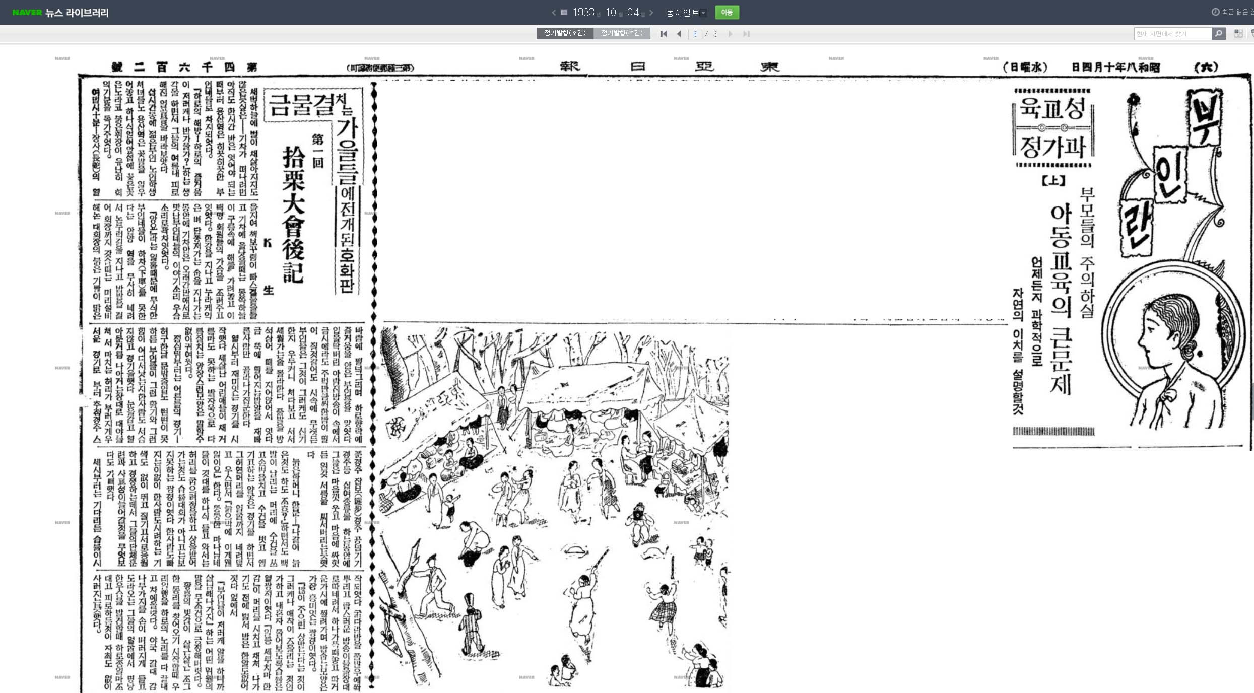1933년 10월 4일자 동아일보에 게제된 제1회 전국 부녀자밤줍기대회(습률대회)의 참관 후기.