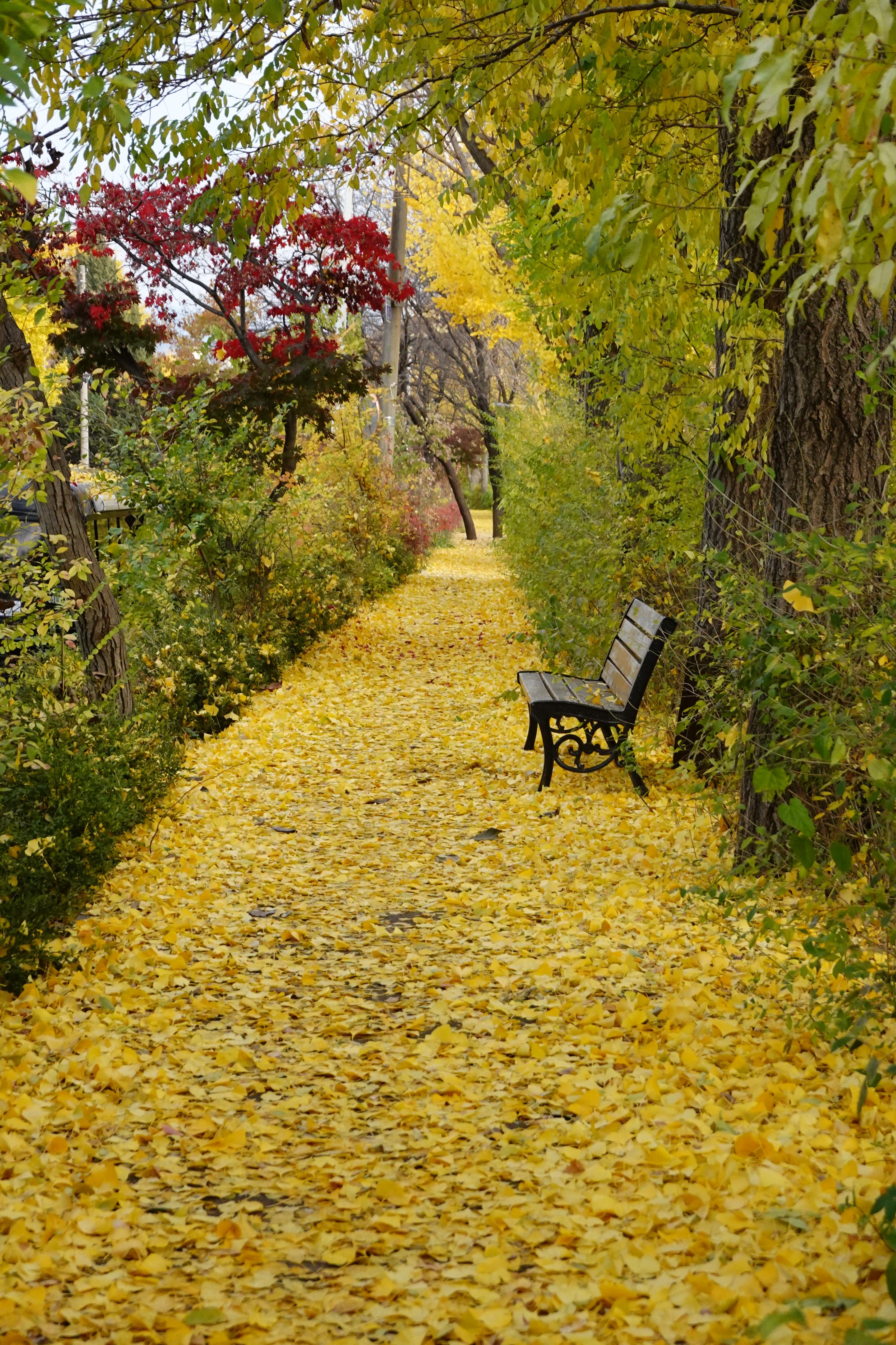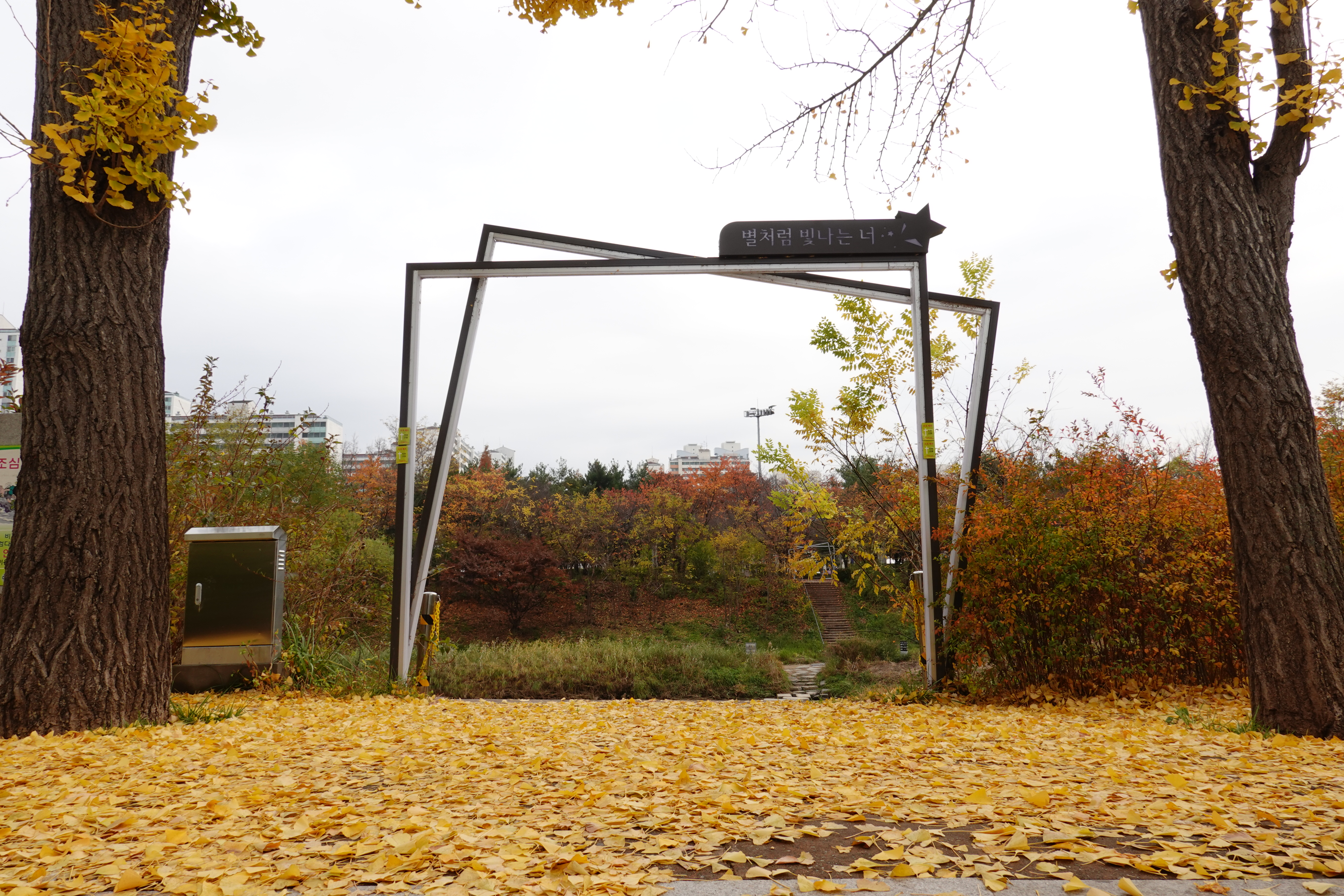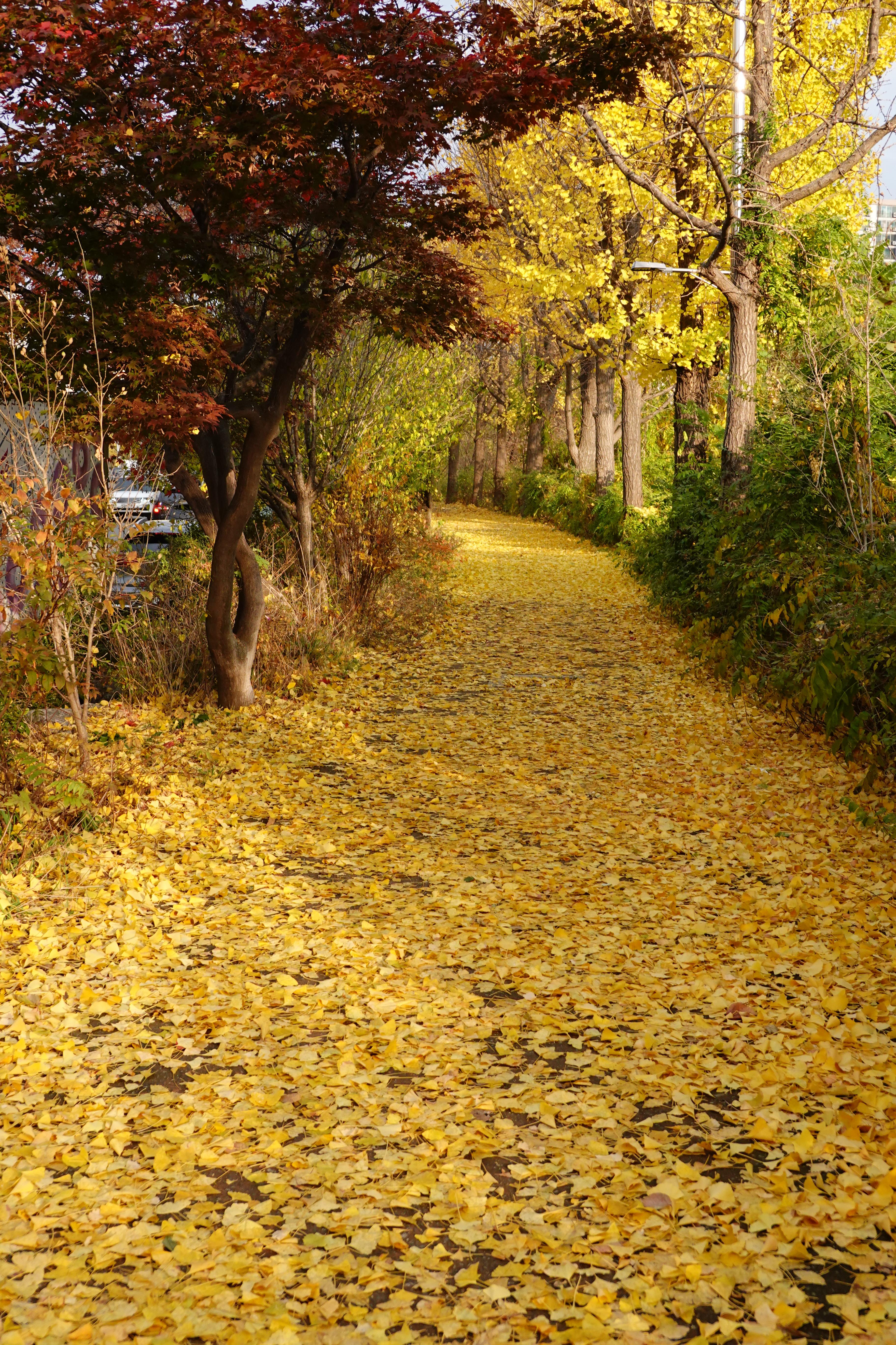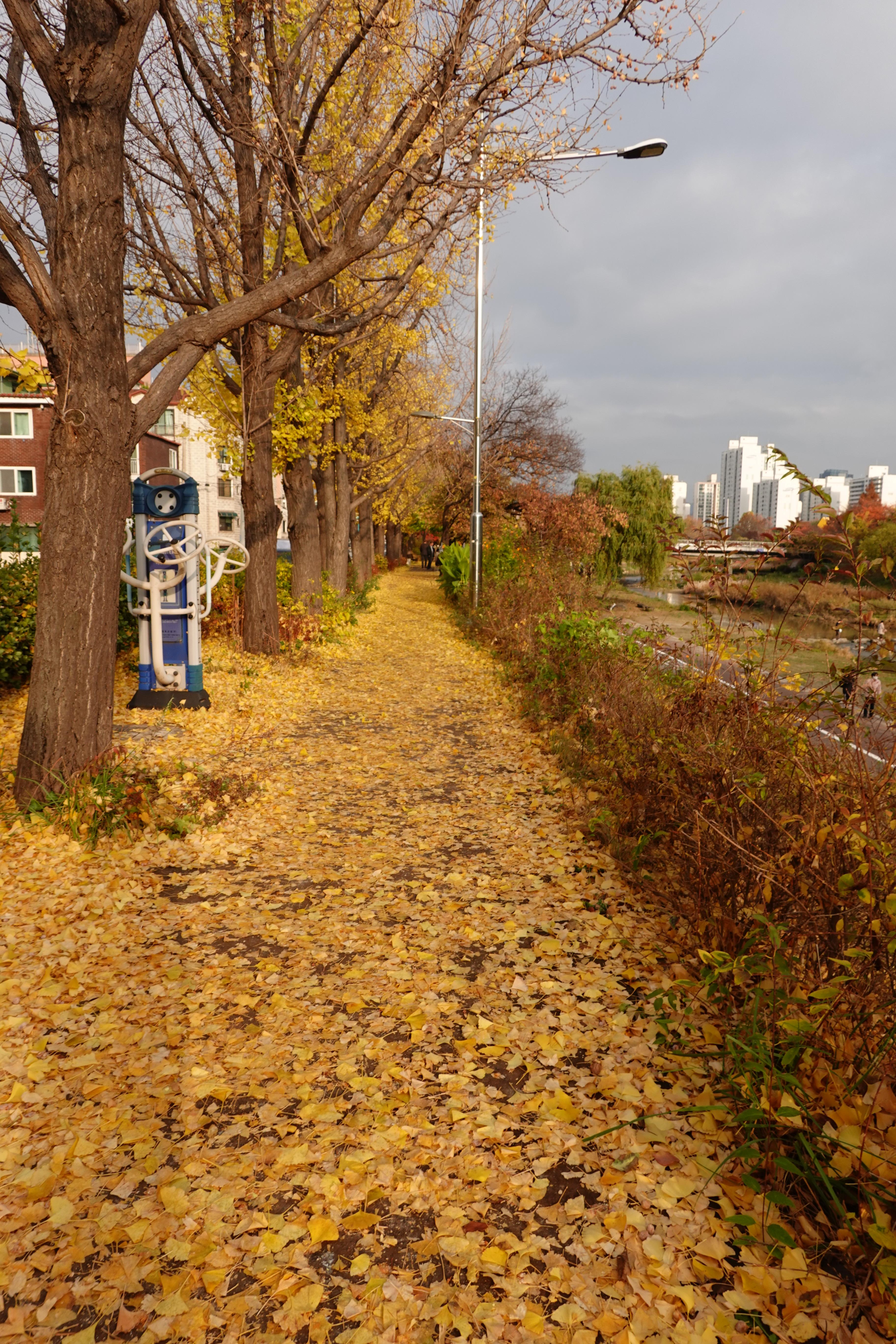 2022.11.13/ #도시기록 #가을 #은행나무 #학의천뚝방길/ 안양 학의천 북쪽 뚝방길에 노란 융탄자를 깔아놓은듯 은행나무에서 떨어진 나뭇잎이 깔려 멋진 길이 되었다. 특히 비산 인도교에서 수촌교까지 구간은 그야말로 노란색 융탄자를 펼쳐놓은듯 멋지다.