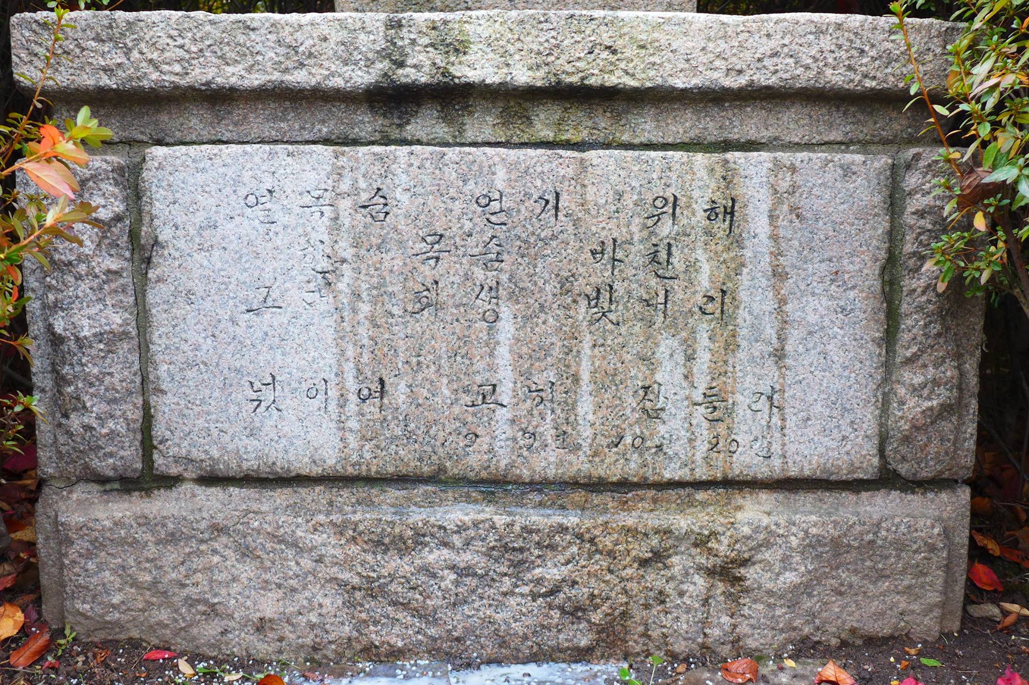 “열 목숨 얻기 위해 한 목숨 바친 그대 희생 빛내리. 넋이여 고히 잠드소서. 1969년 10월 20일”