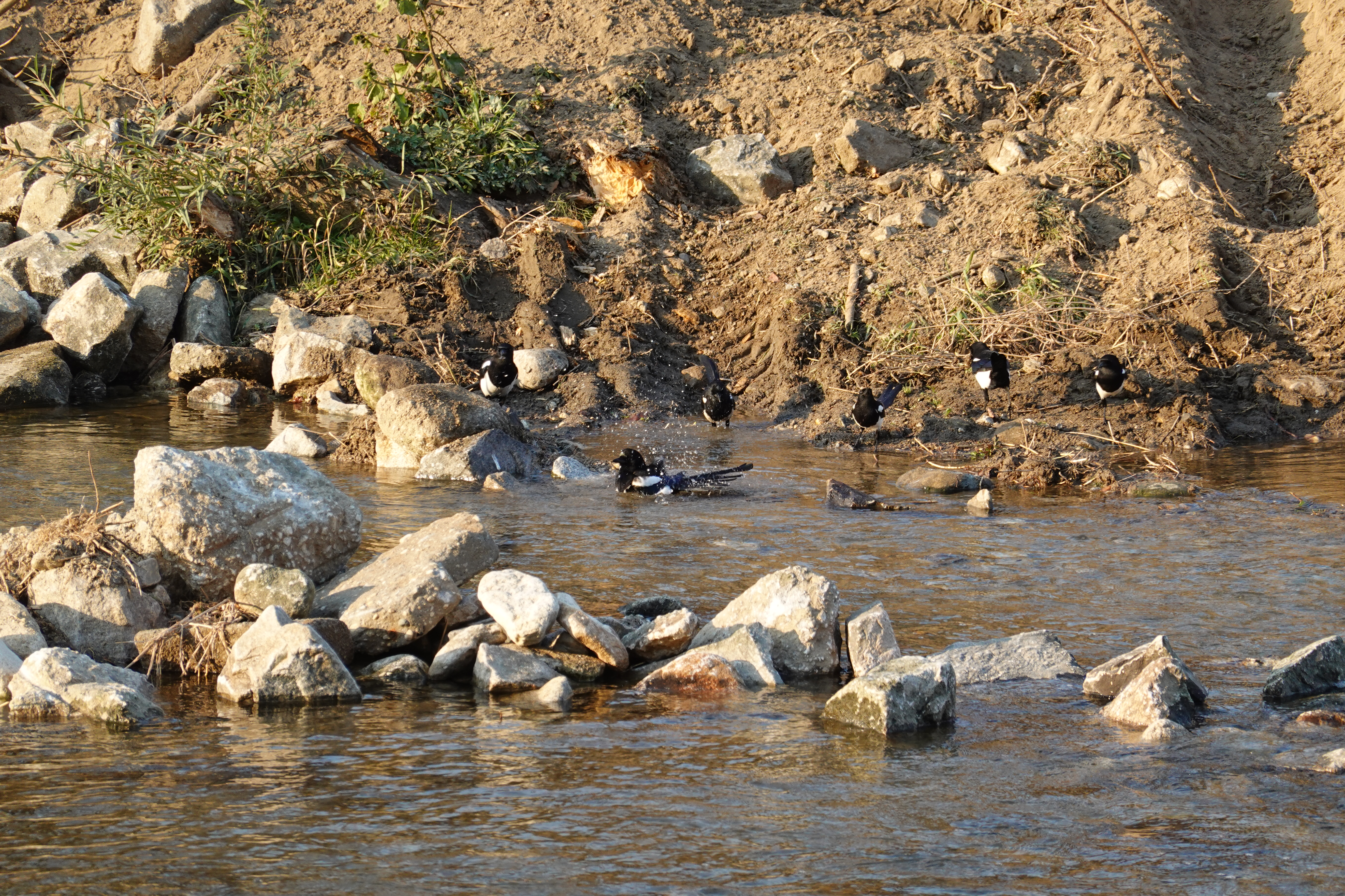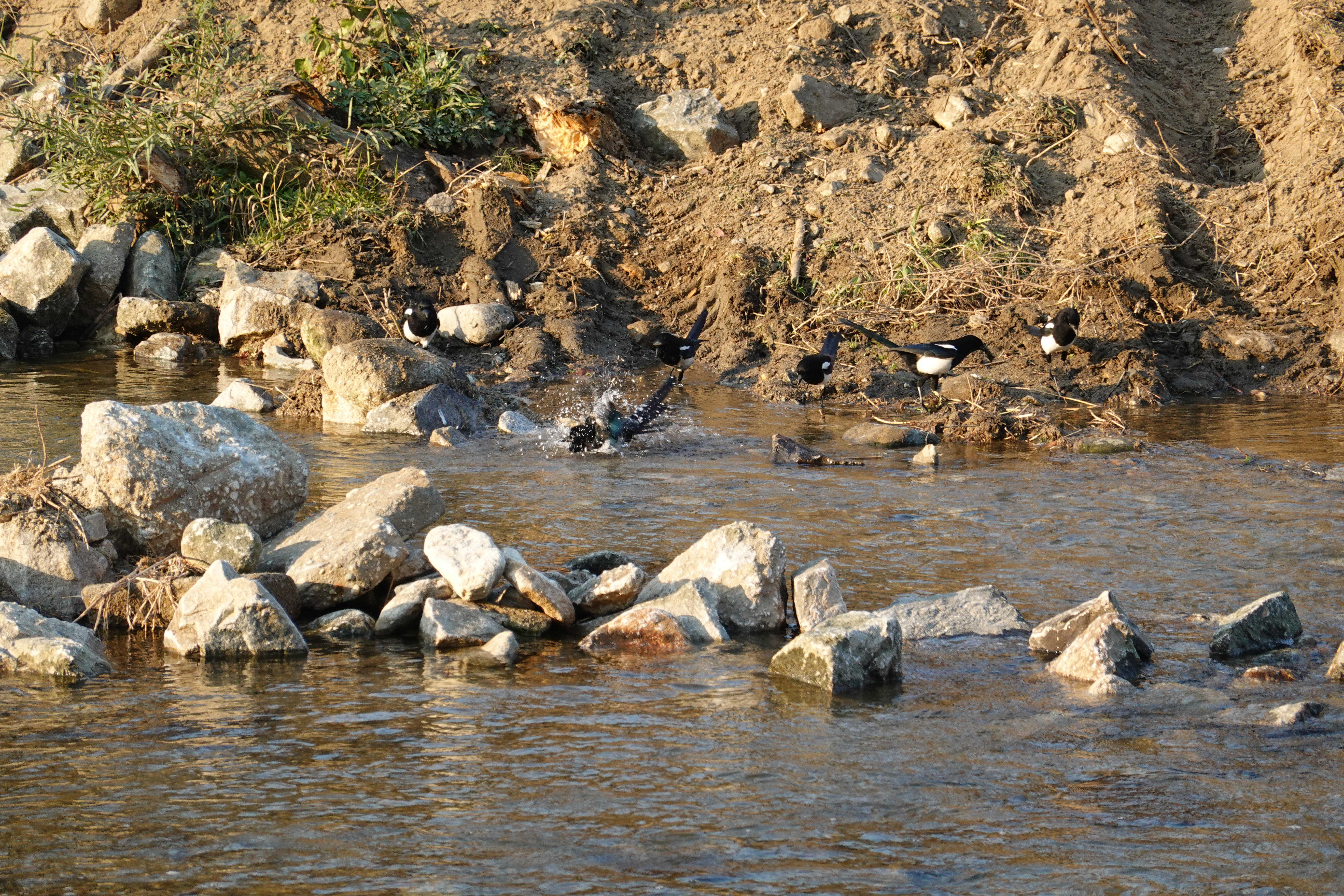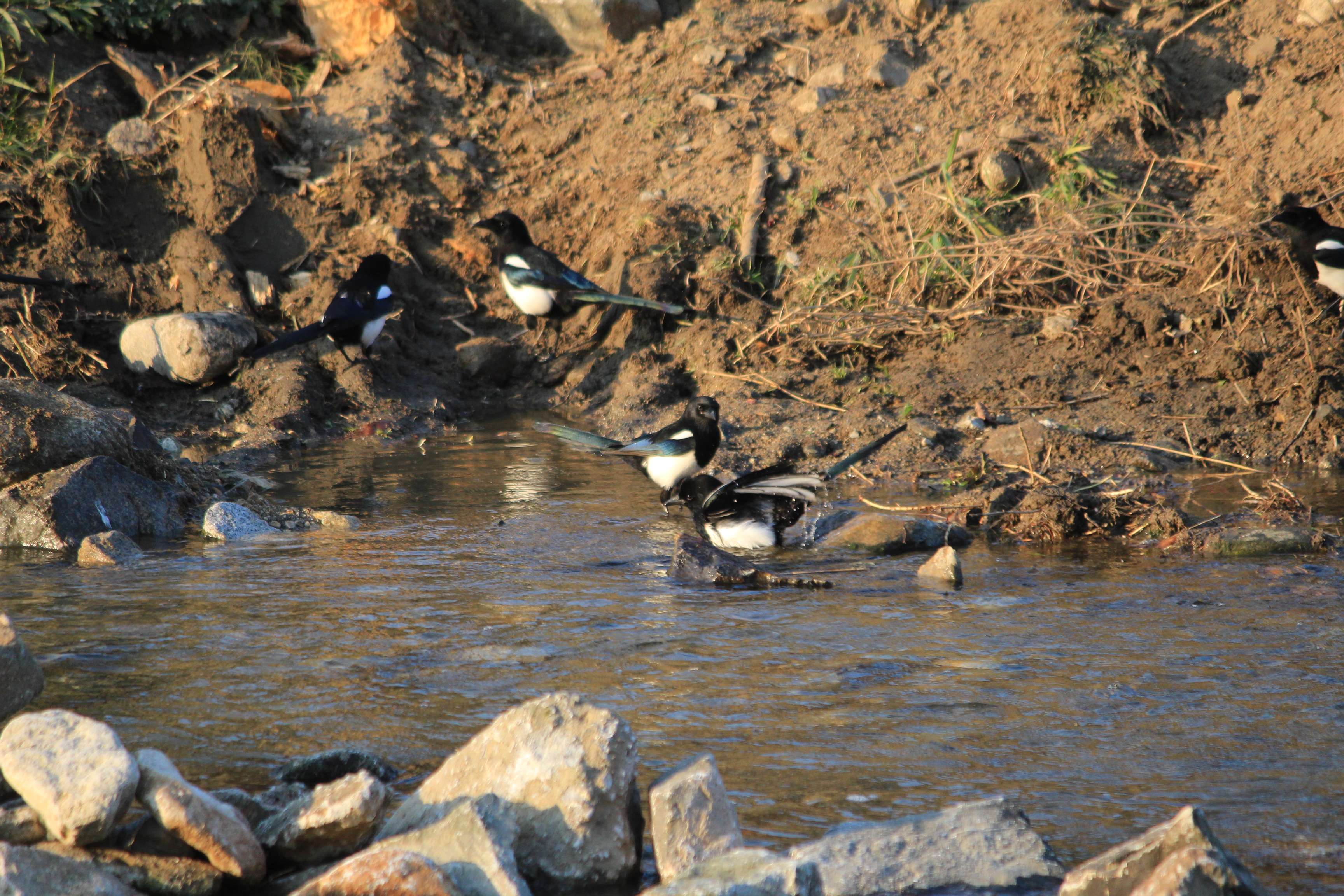 2022.11.20/ #도시기록 #안양 #학의천 #까치목욕탕/ 안양 학의천 수풀속에 있던 까치들의 목욕탕이 다 드러났다. 저 자리는 학의천 북단 산책로 수촌교 다리인근으로 지금은 마치 공사 현장의 웅덩이 같은 모양새지만 지난 여름 수해로 큰물이 지나가기 전에는 나무 수풀이 우거져 산책로 길에서 수풀에 가려져 잘 보이지 않았던 곳이다. 하지만 큰물이 지나간후 나무와 수풀 대부분이 없어지는 등 환경이 크게 변했음에도 용케들 알고 멱 감으러 잘들 찾아온다. 그나저나 까치들의의 목욕하는 장면이 고스란히 다보이니 프라이버시 논란이 일어나지는 않을까.