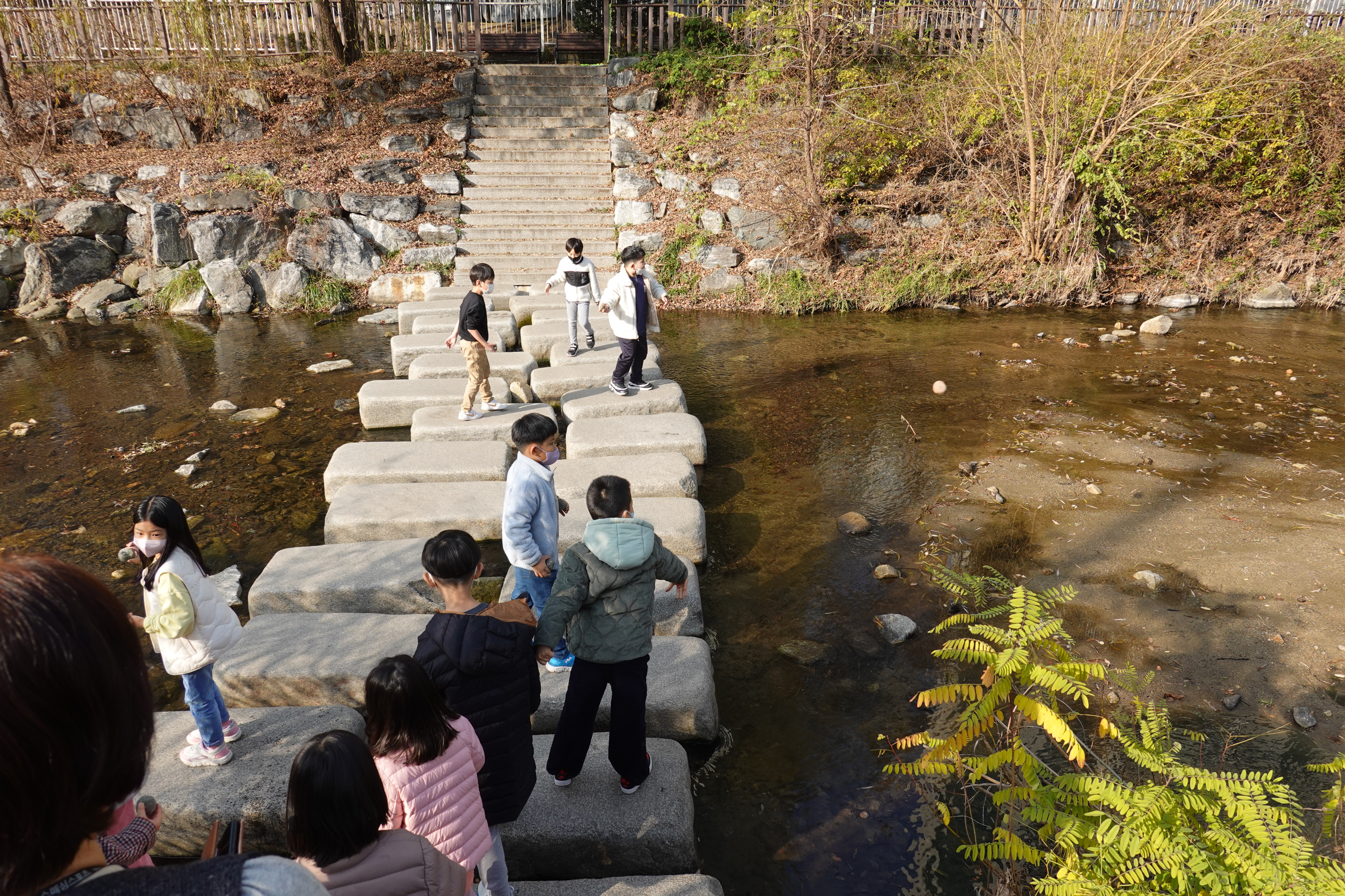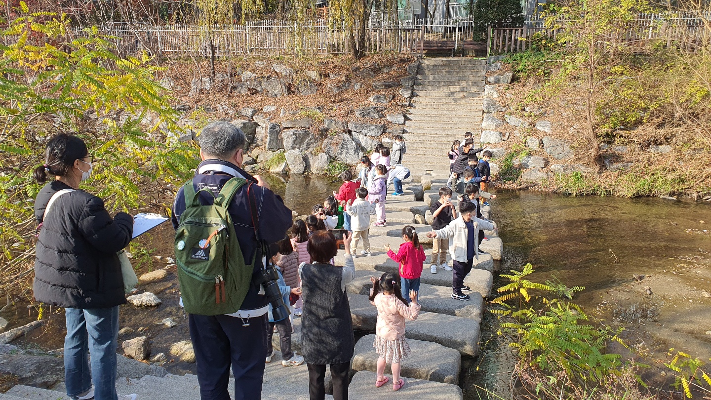 2022.11.21/ #도시기록 #삼성초교아이들 #EM흙공/ 안앙지속가능발전협의회 11월 삼막천 모니터링중. 선생님과 함께 EM흙공을 만들어 삼막천에 던지는 삼막초 아이들을 만나다. 예쁘고 신통하넹. "학교옆 하천 환경에 관심이 많으신 선생님 감사합니다."
