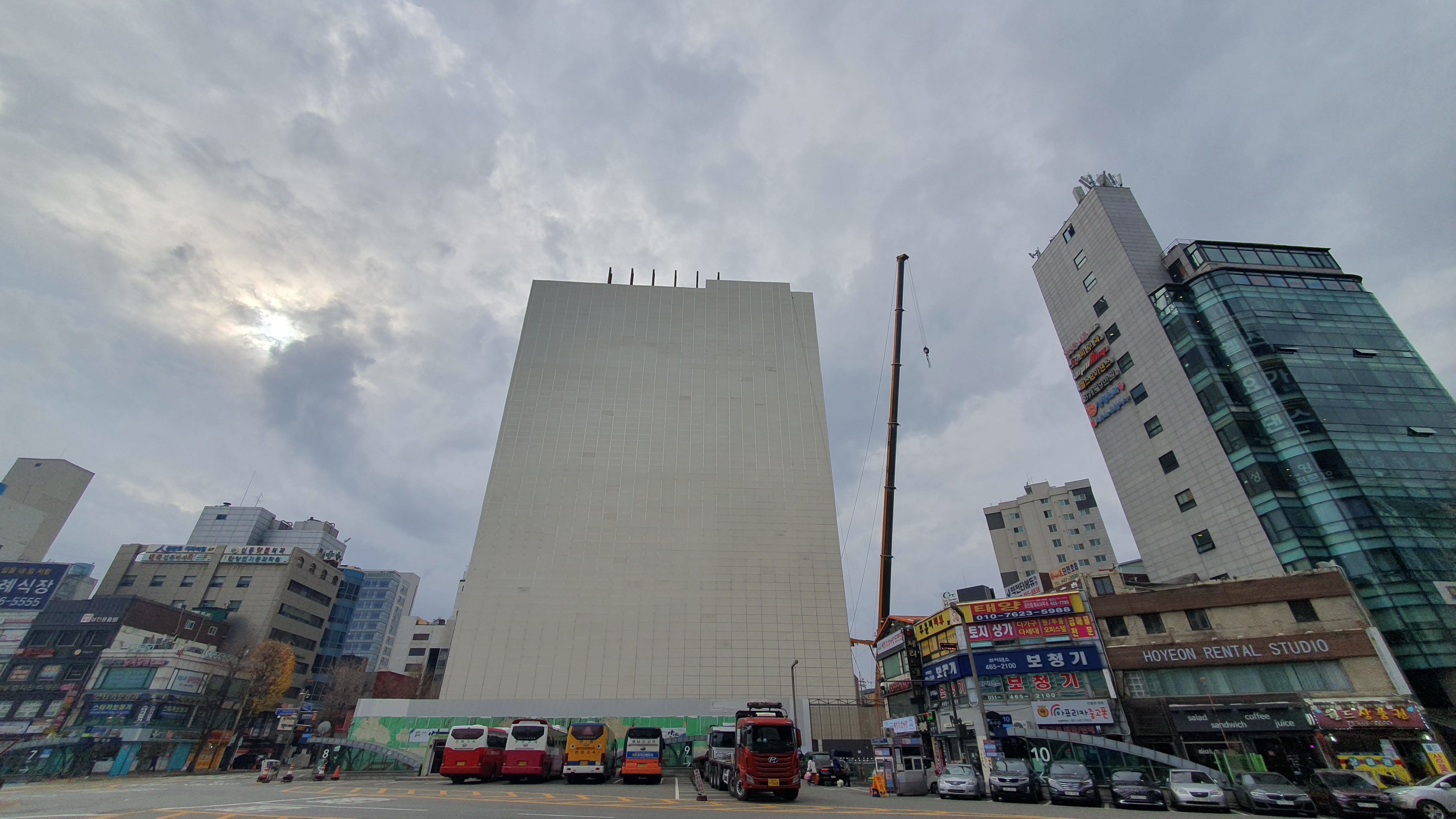 안양역 앞 흉물이었던 건축물 원스퀘어(구 현대코아) 철거 공사가 본격적으로 진행될 모양이다. 건물 전체를 비계 가림벽으로 둘러싸는 사전 철거 공사가 완료되고 본격적으로 H빔 골조 철거작업이 시작될듯 싶다.