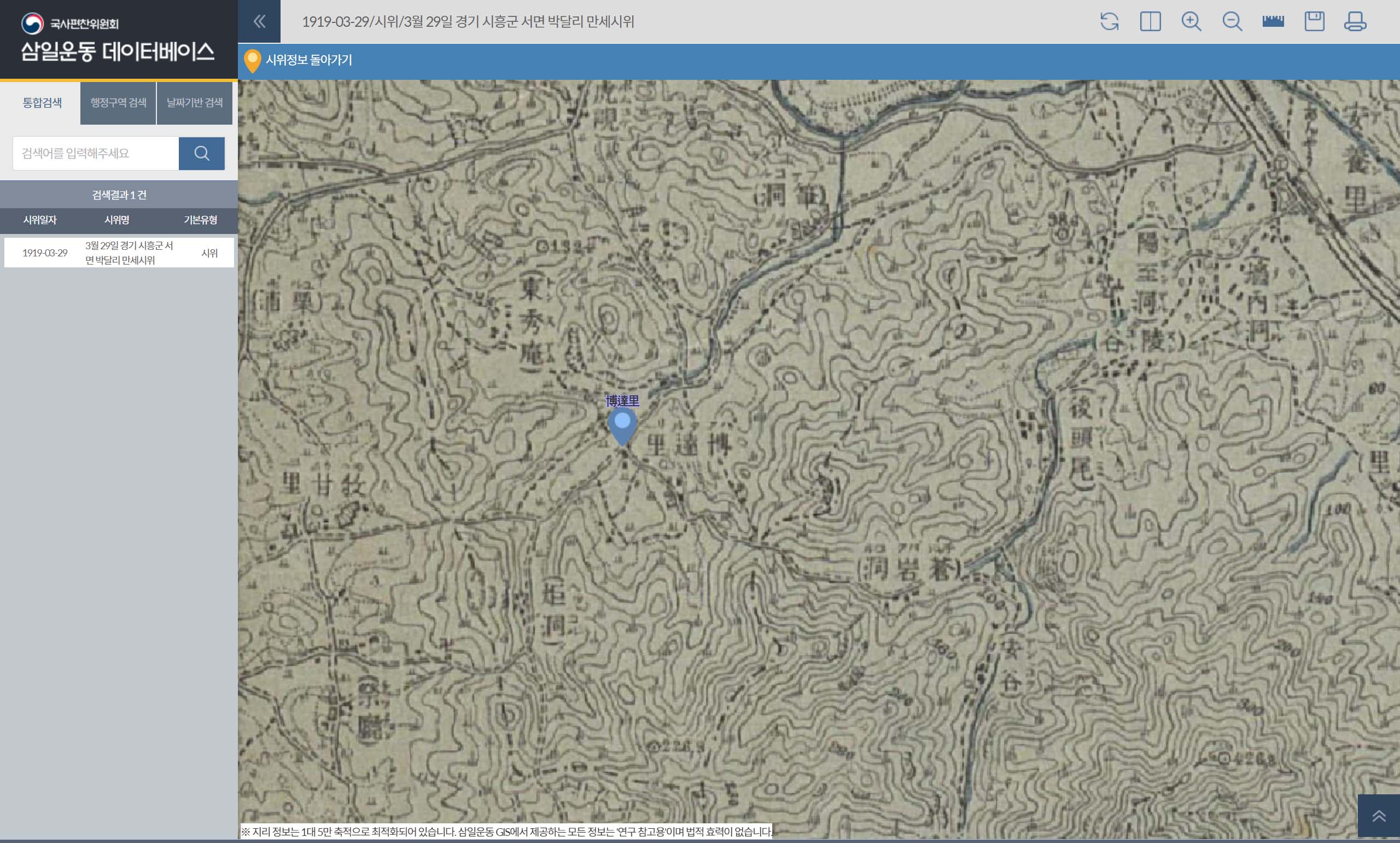 국사편찬위원회의 삼일운동 데이터베이스를 확인한 결과 1919년 3월29일 안양 박달동에서도 삼일운동 만세시위가 전개된 사실이 처음으로 밝혀졌다.
