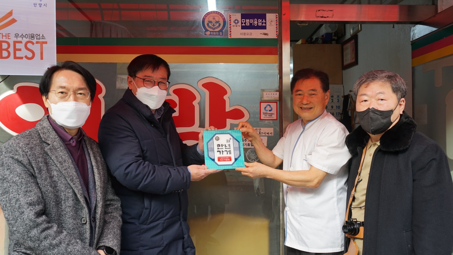 2022.12.13/ #만문누리 #만년가게 #만안구 #오래된가게/ 만안구청이 만문누리와 함께 진행하는 만년가게 선정. 2022년에는 3곳이 추가 선정돼 지난 12일 명패가 부착됐다.