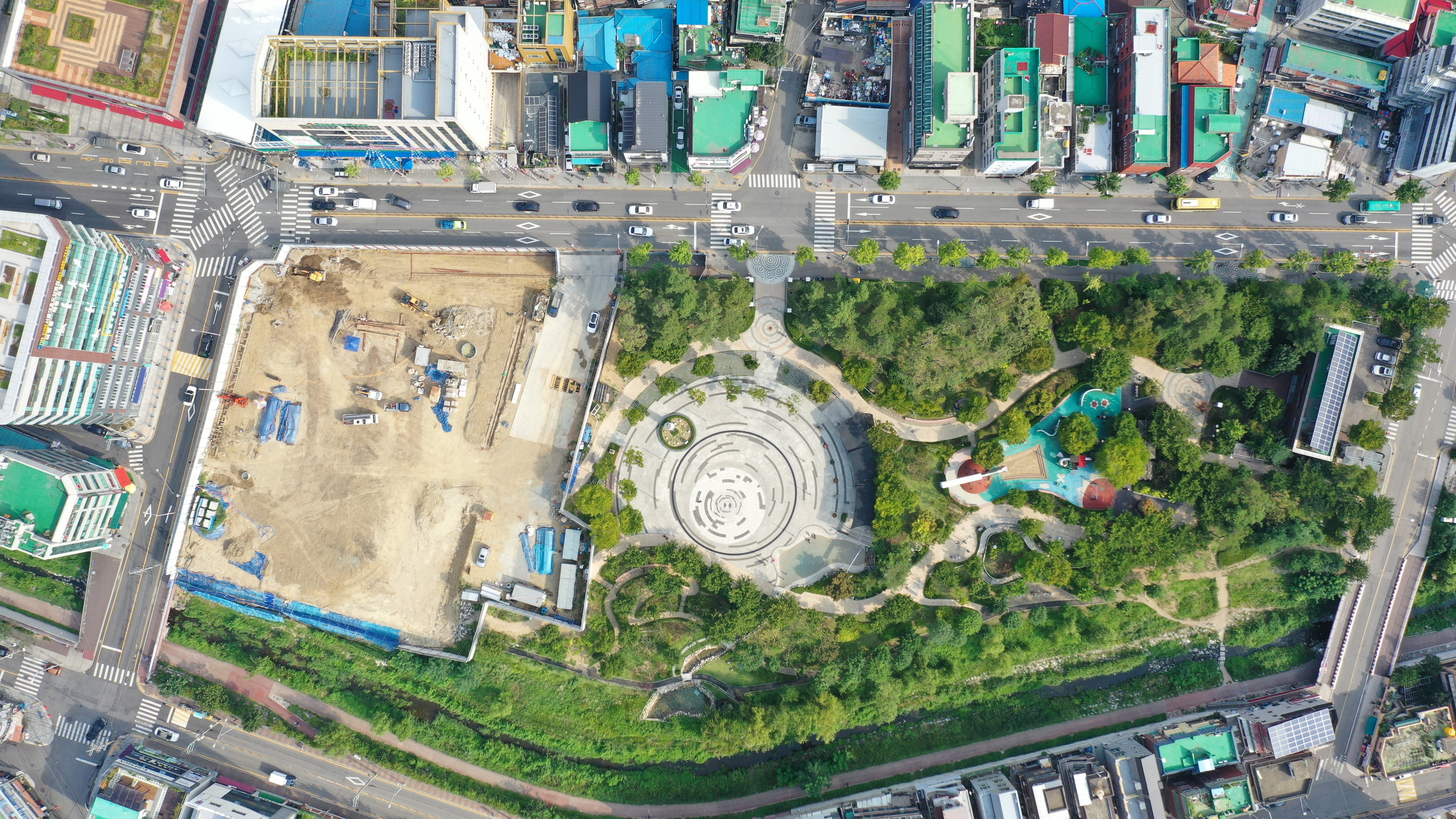 1단계로 양지4교에서 상류쪽으로 양지1교까지 구간에 교각을 세우고 상판을 얹어 주차장으로이용하던 복개 구간을 철거했습니다. 아직 남아있는 구간은 양지4교에서 만안로상의 안양역 건너 양지5교까지의 공영주차장 복개구간. 안양시는 이 구간의 복개도 철거하고 주변 4,723㎡ 면적 부지에 지하 저류조와 주차시설, 공원 등의 복합시설을 조성하는 사업을 추진중이다.