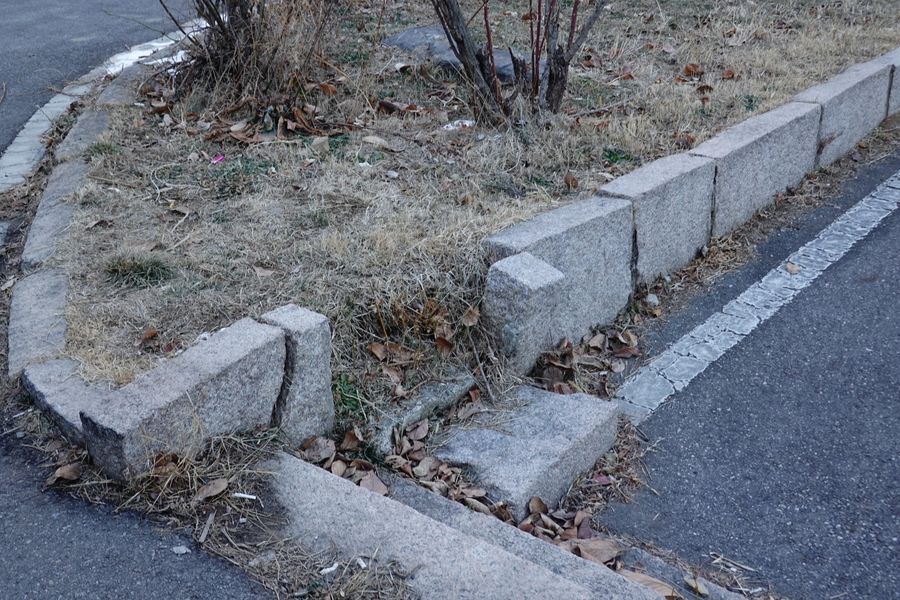 2023.01.03/ #도시기록 #안양 #경계석 #옛건물/ 안양6동에 자리했던 우리나라 최초의 동물연구소였던 안양가축연구소 신축당시인 1940년대 망치와 정으로 다듬어 조성했을 것으로 추정되는 본관 건물앞 정원의 경계석들. 연구소 역사를 보면 1909년 부산에서 수출우검역소와 1911년 우역혈청제조소가 설립돼 가축위생시험소로 통폐합된후 1942년 안양으로 이전해 왔으며 1964년 안양가축연구소, 1998년 국립수의과학검역원, 2011년 농림수산검역검사본부, 2013년 농림축산검역본부로 명칭이 바뀌었다. 2009년에는 국립수의과학검역원 100주년 기념식을 이곳에서 가졌으며 2005년 정부의 공공기관 지방이전 정책에 따라 안양을 떠나 경북 김천으로 이전했다.
