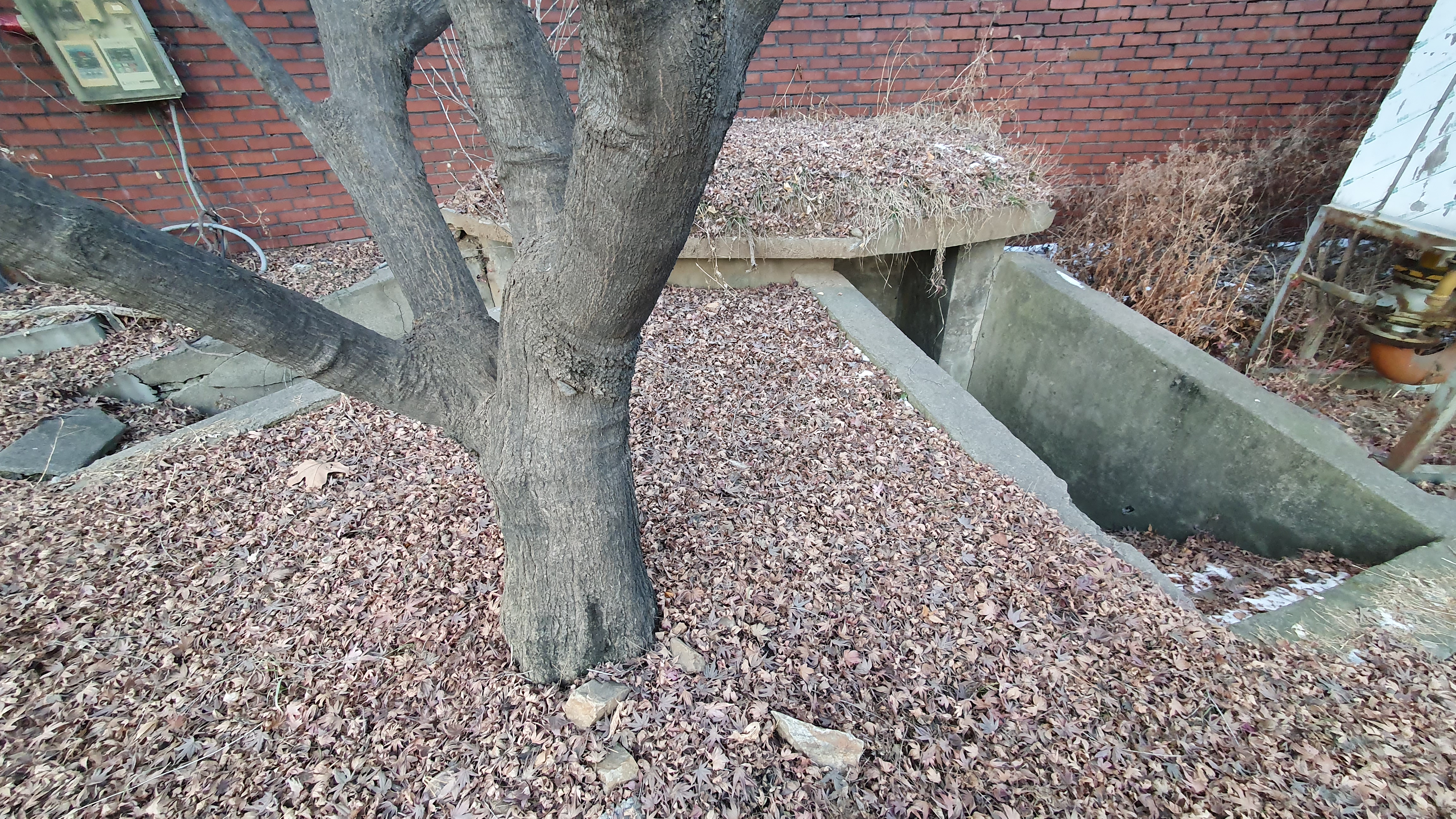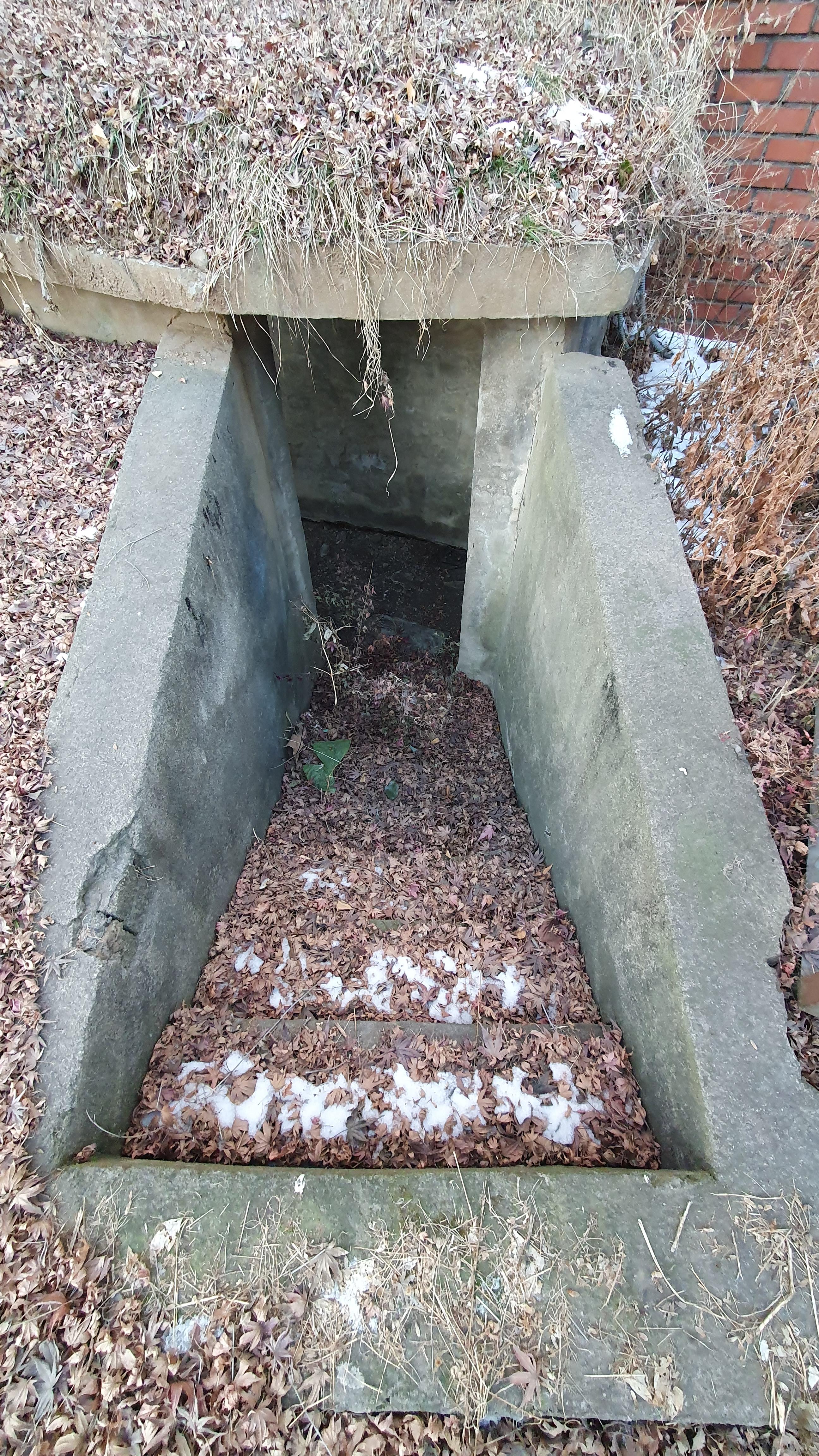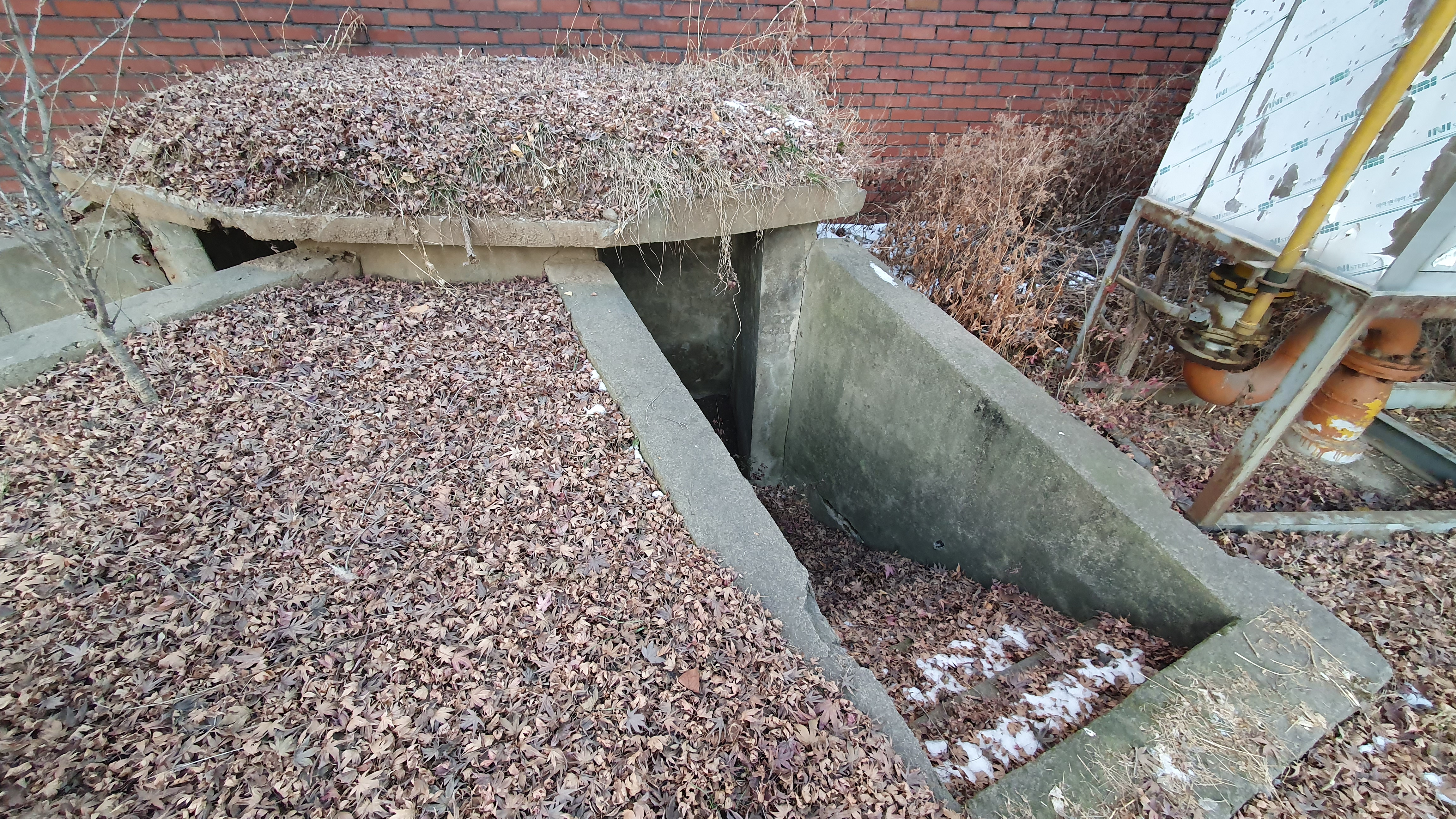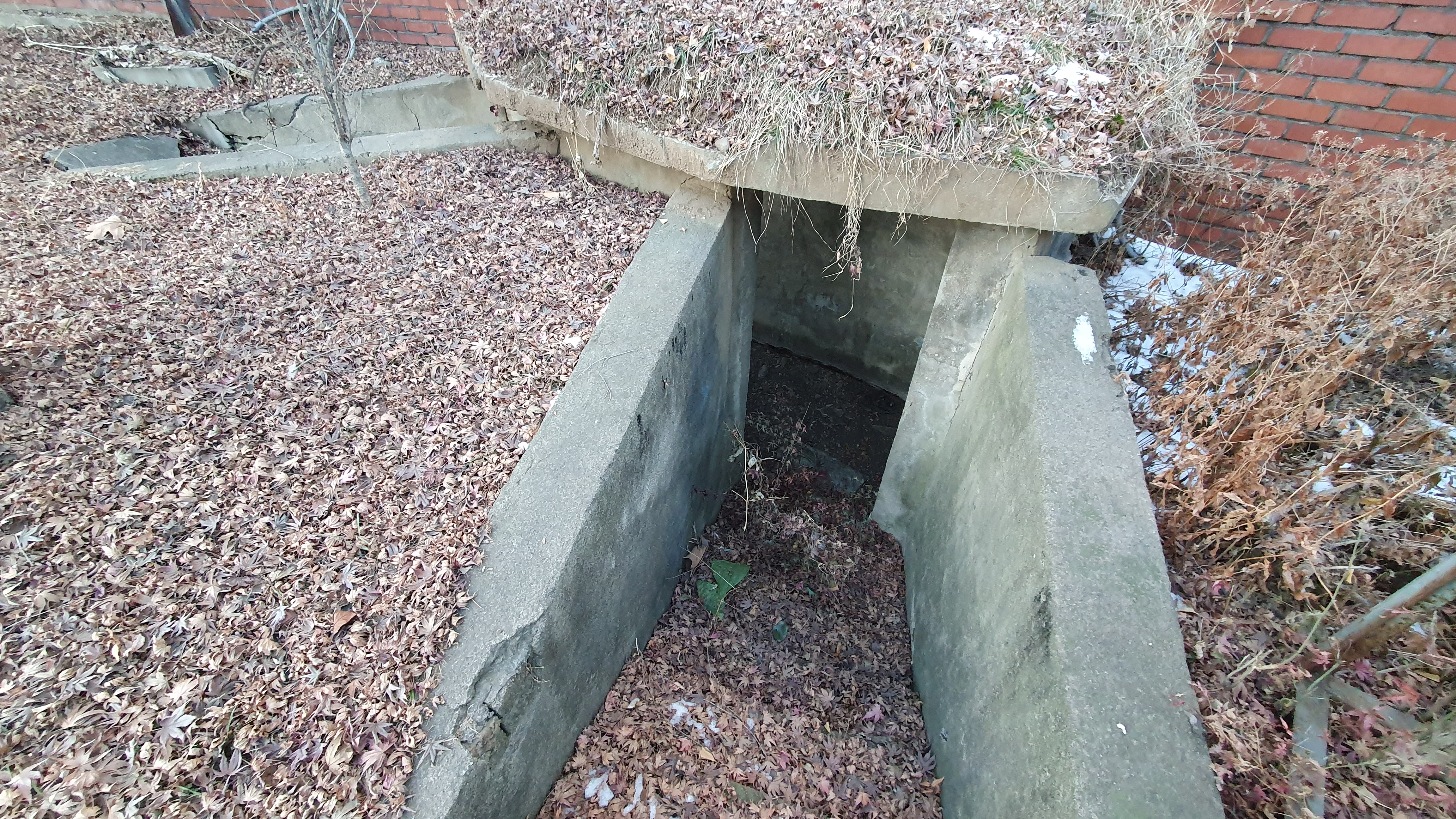 2023.01.03/ #도시기록 #안양 #구농림축산검역본부 #옛국립수의과학검역원/ 검역원의 오래된 흔적. 군사용 참호. 전시를 대비해 콘크리트로 만든 참호. 과거 공공건물에는 이같은 참호가 설치되고 담장에는 총을 쏠수 있는 구멍들이 있었다.