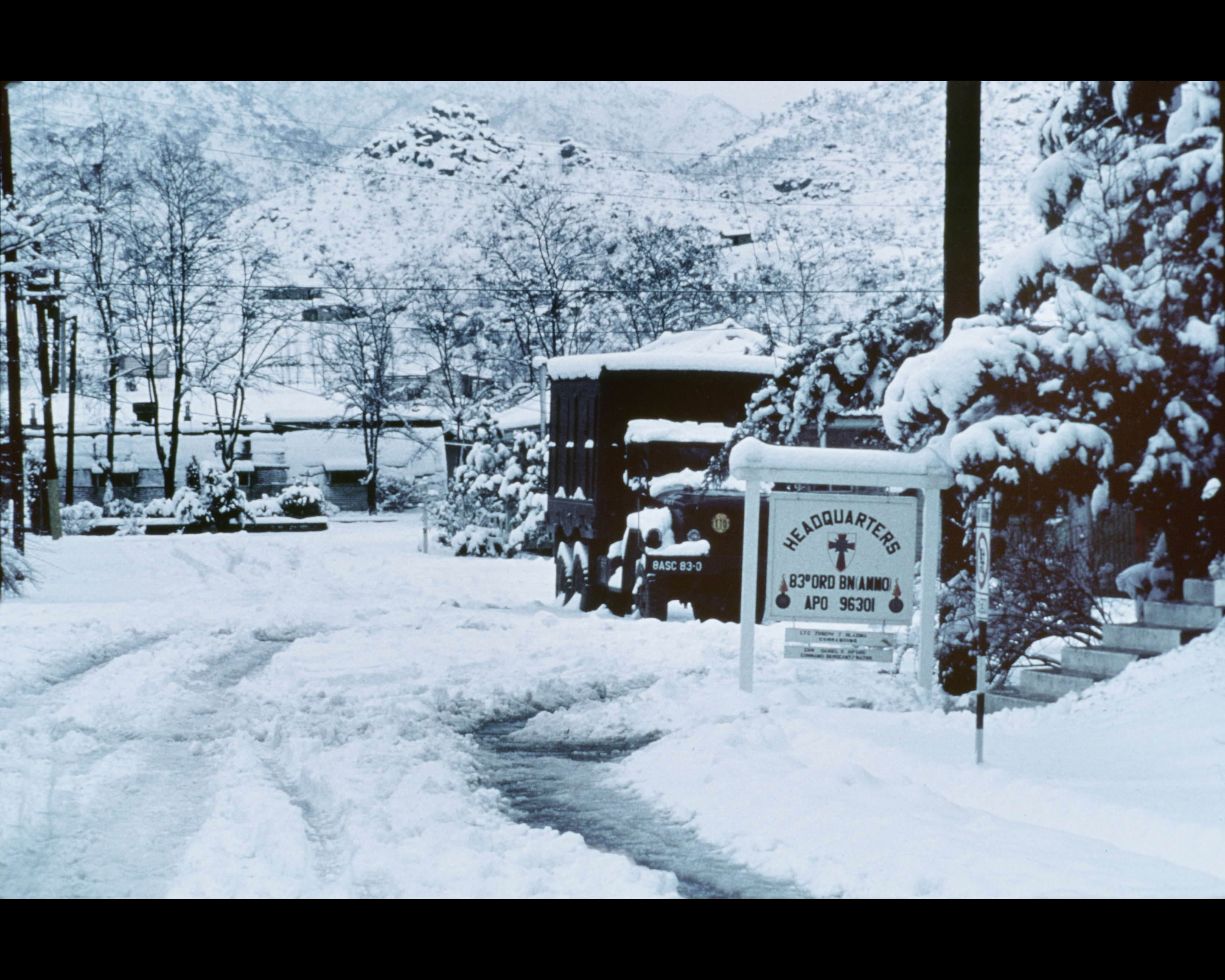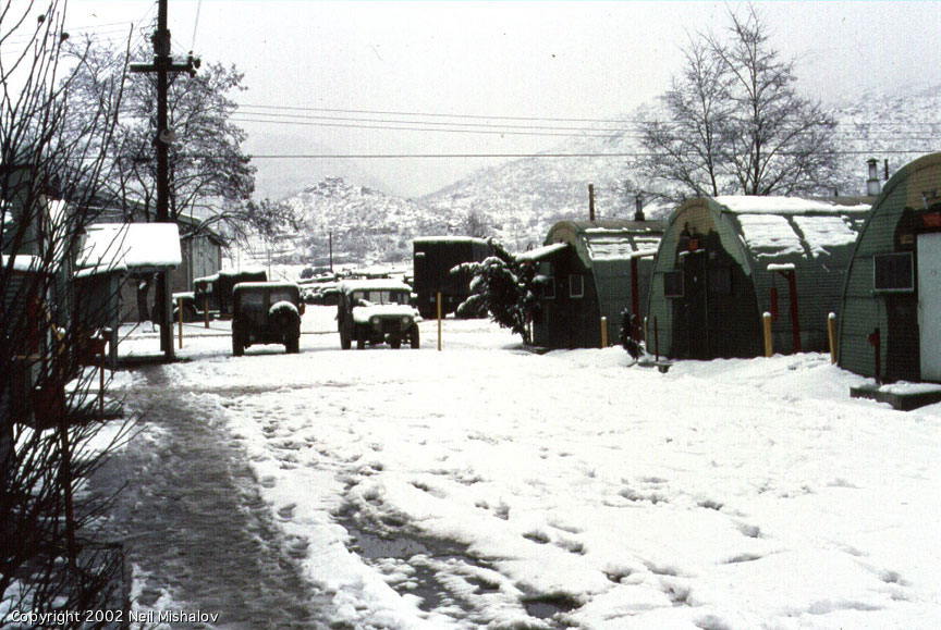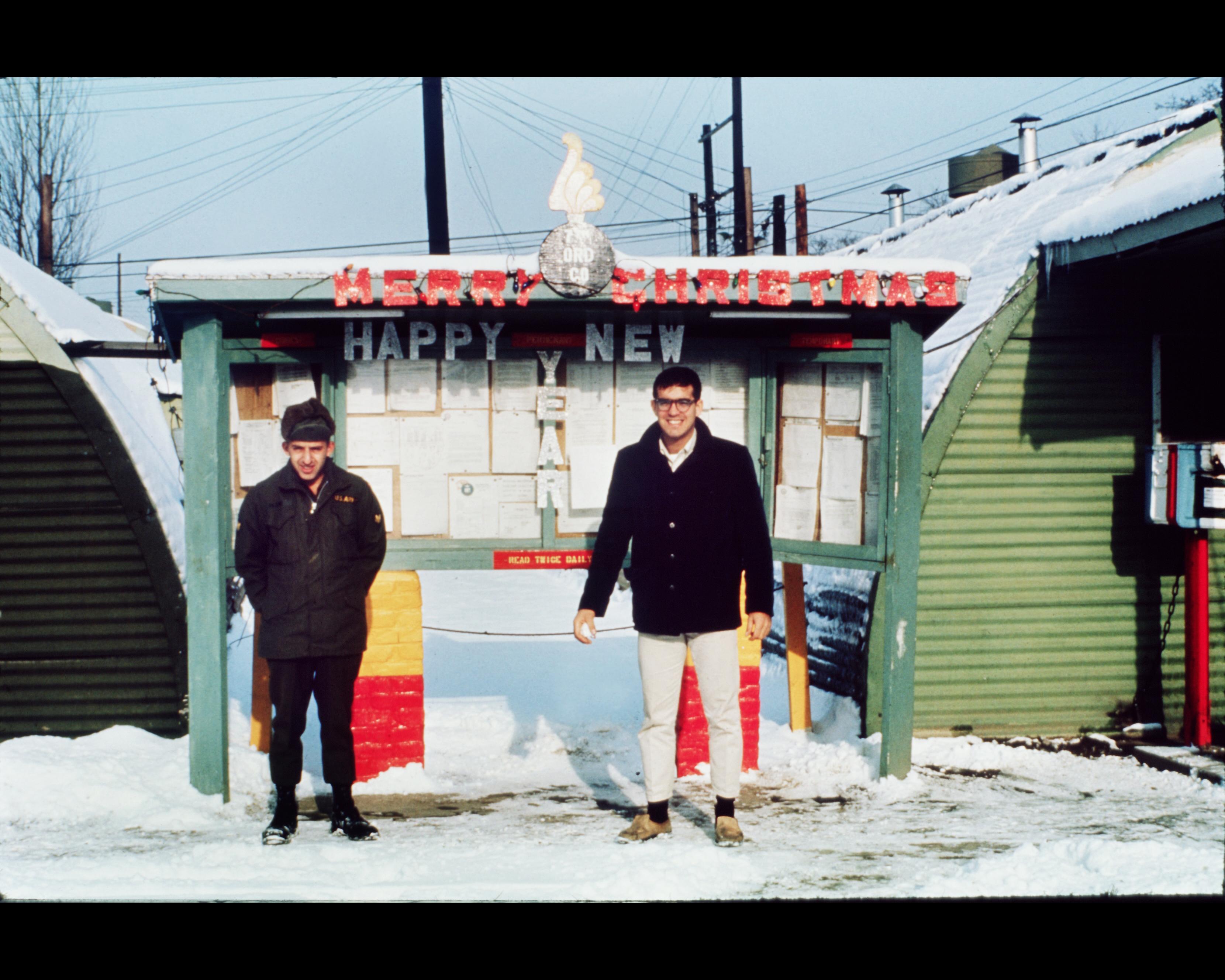 2023.01.21/ #아카이브 #안양 #석수동미군부대 #sine1969 #기록 #역사 #석수동 #닐미샬로프/ 안양시 석수동에 있던 미군부대(83병기대대)의 1969년 겨울 풍경. 부대 게시판에 새해 인사 글씨가 부착된걸 블때 1969년 1월에 찍은것으로 추정된다.