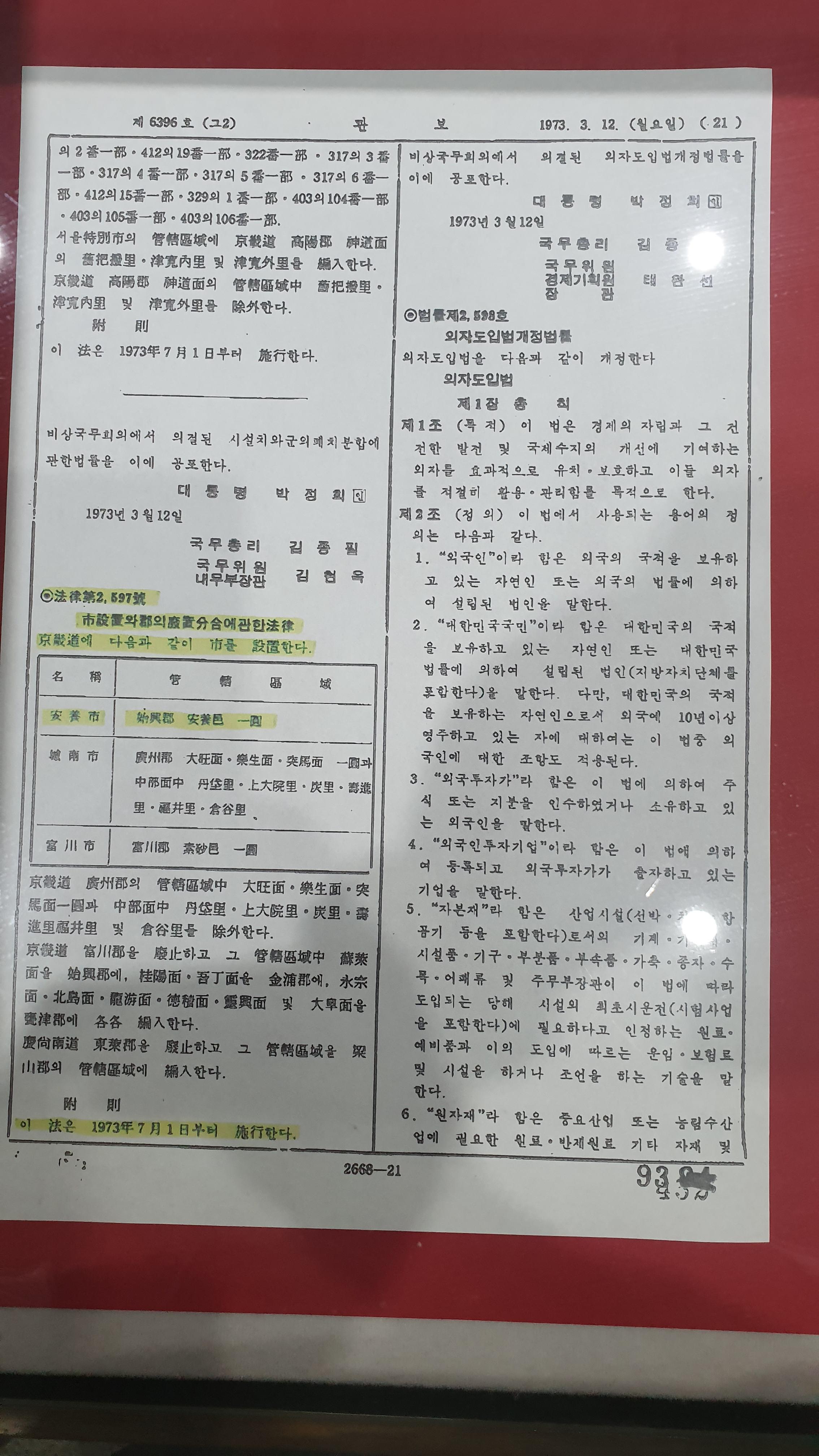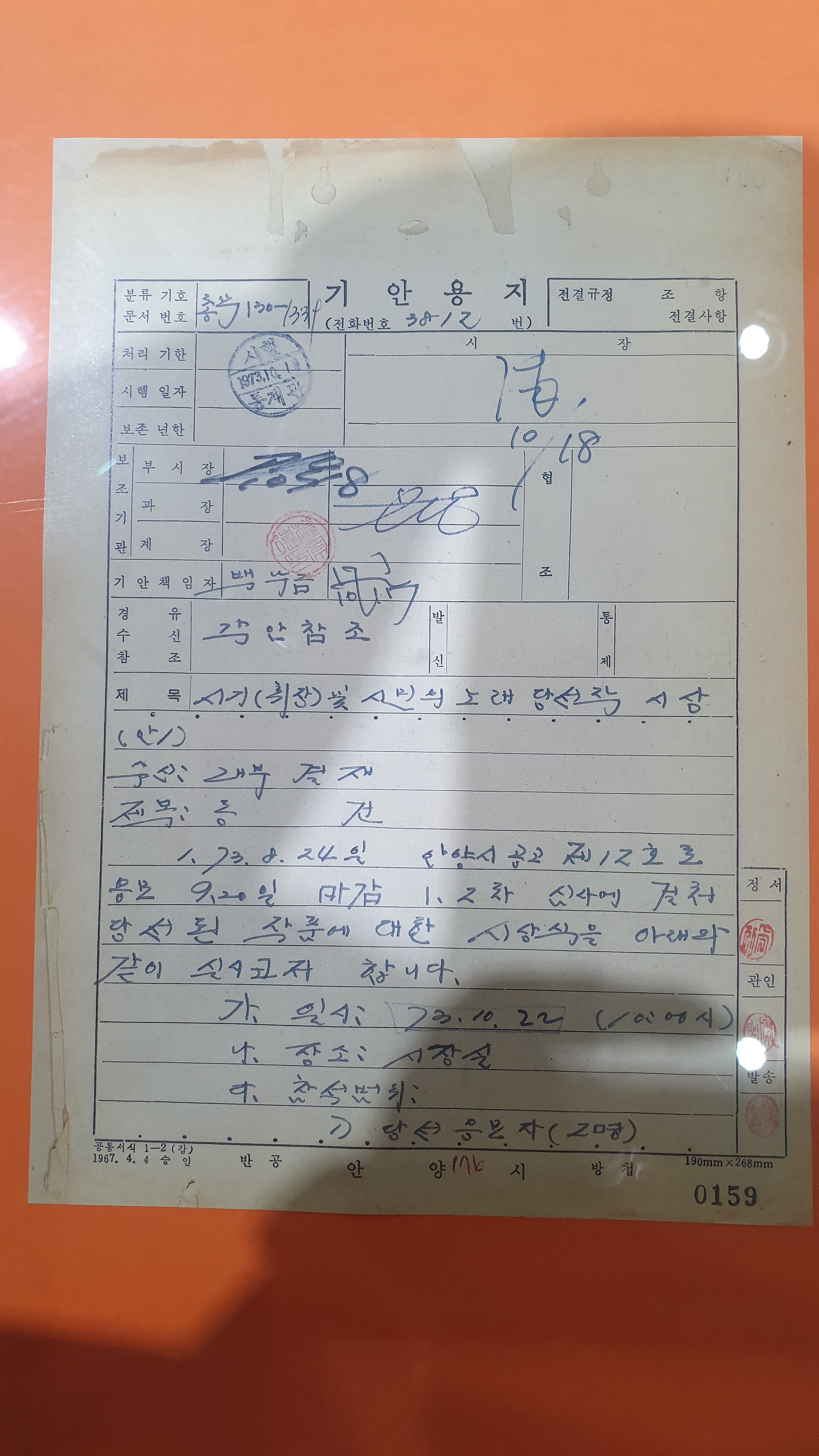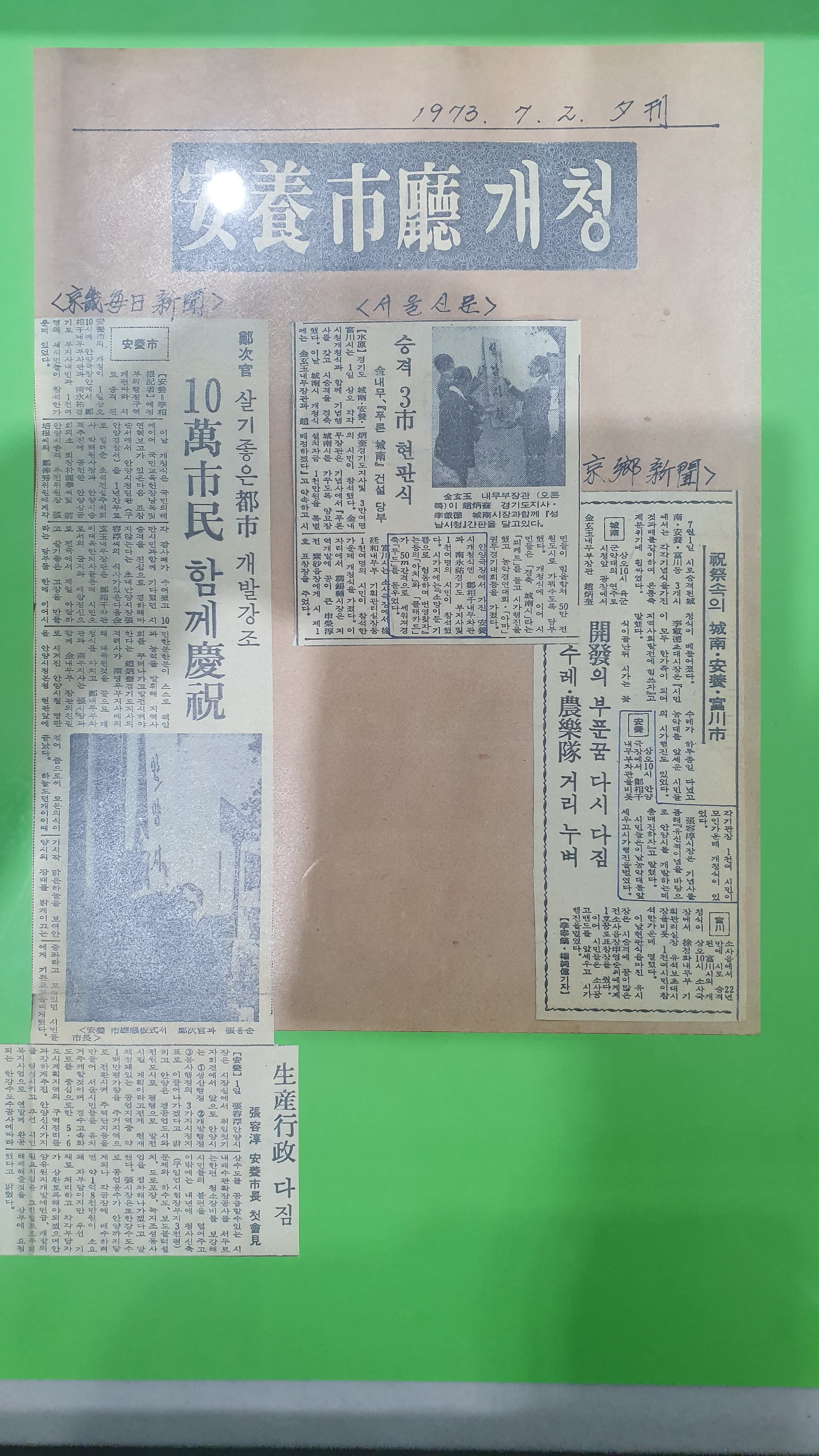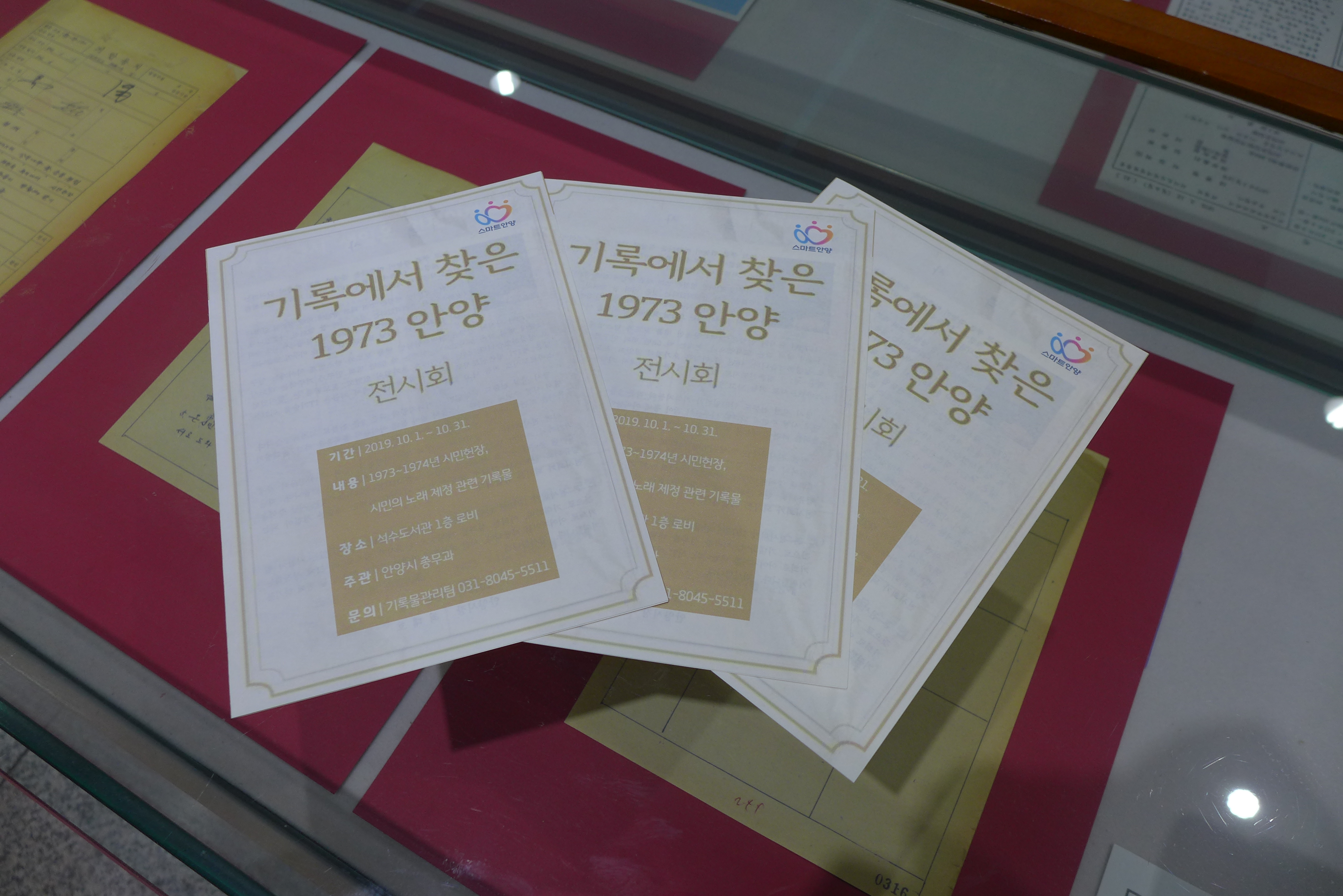 이 사진들은 2019년 안양 석수시립도서관에서 열린 "기록에서 찾은 1973 안양" 전시회때 찍은 것들로 안양시 총무과 기록관리팀에서 기획해 마련한 전시회다.