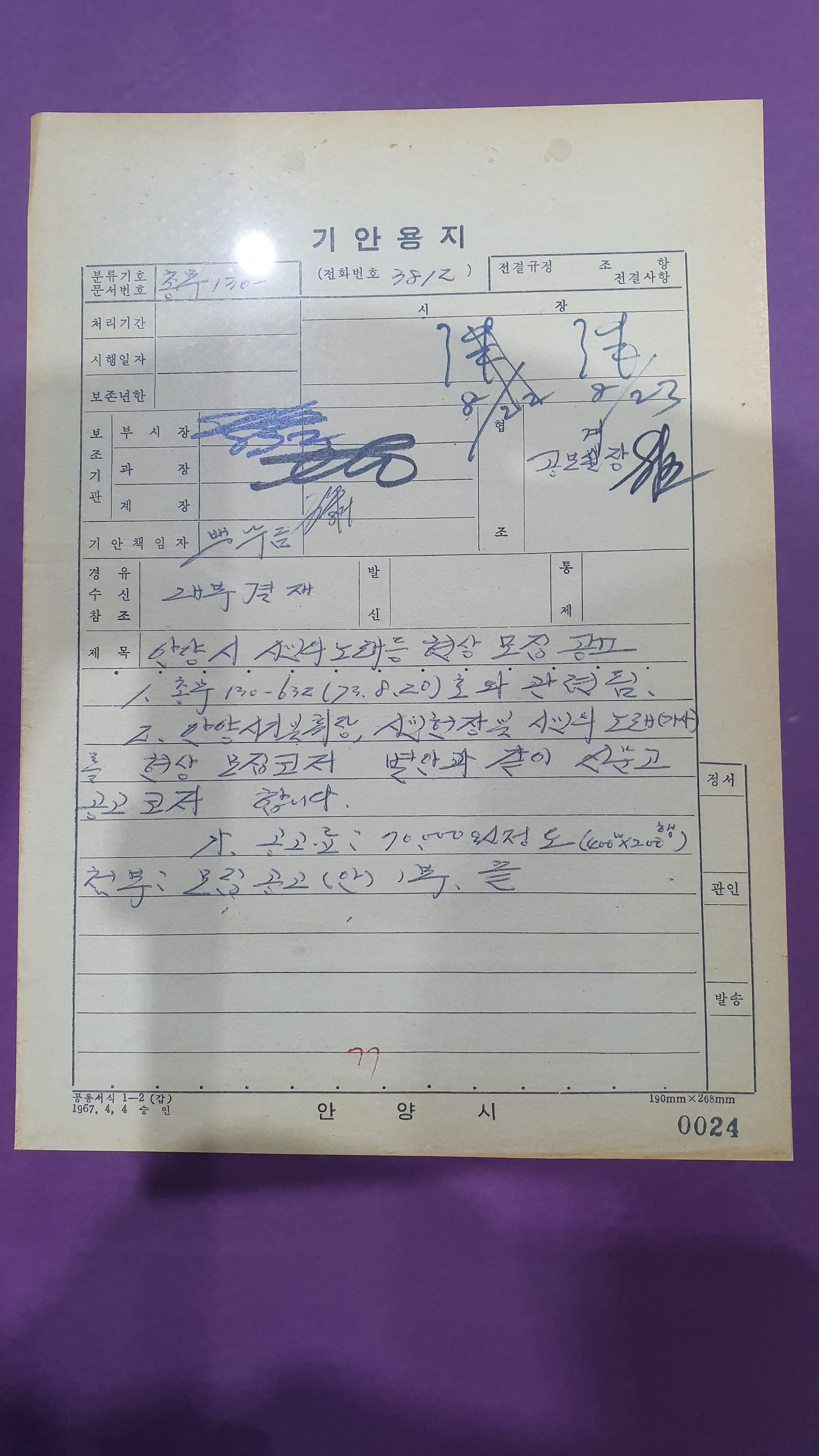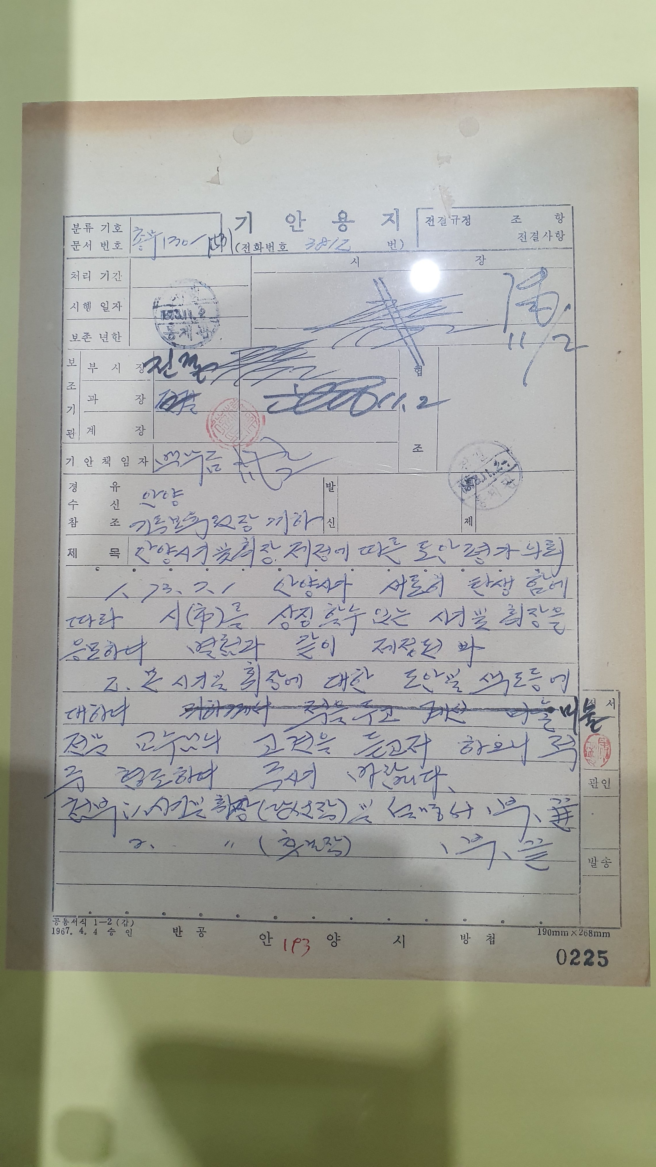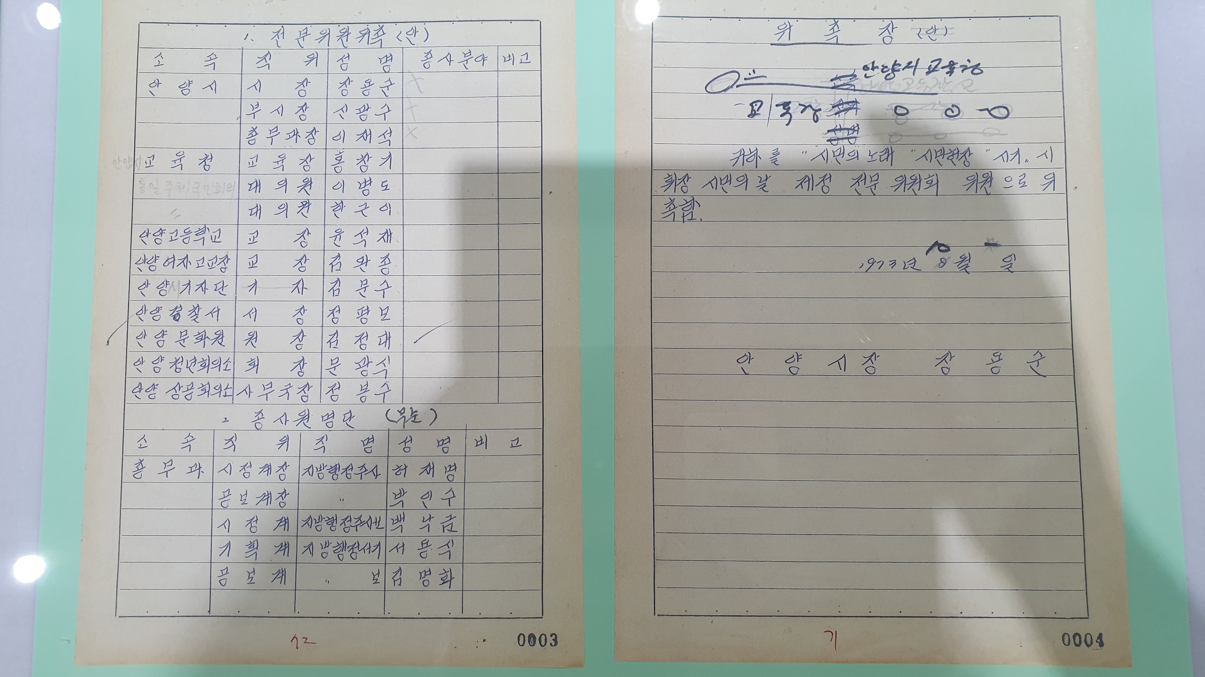또 지금은 고인이 됐거나 오래전 현직에서 물러난 초대 장용순 안양시장과 낯선 이름의 공무원들 서명 및 직인도 시선을 모았다..