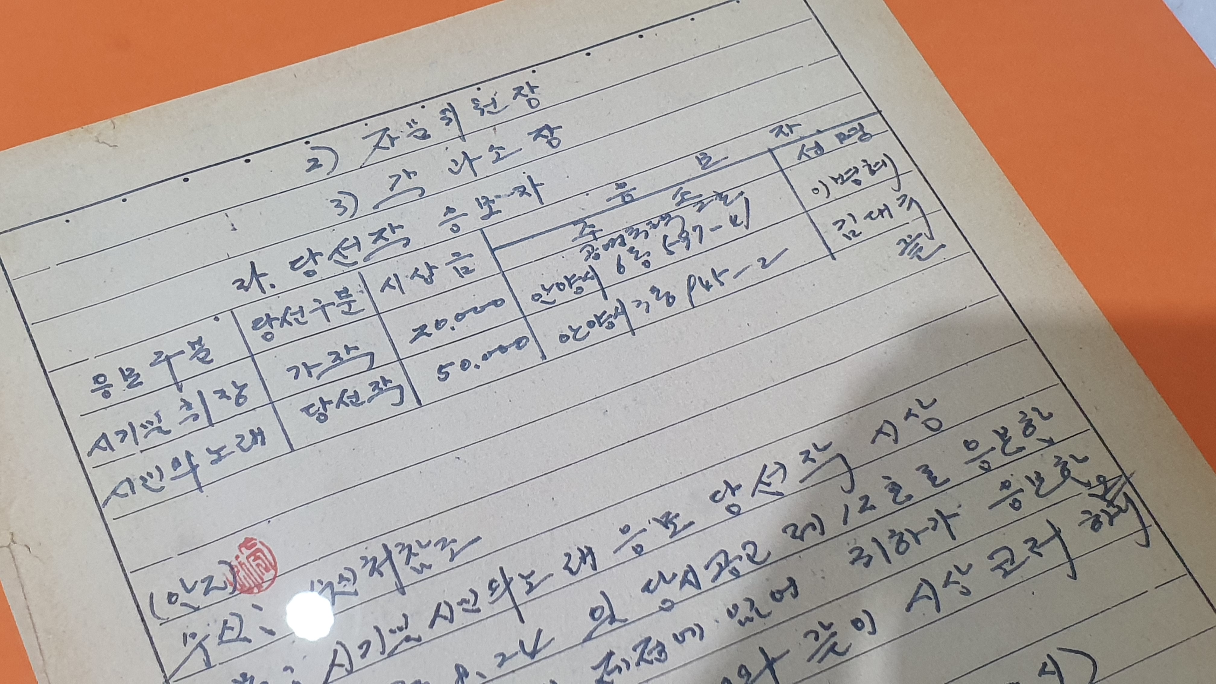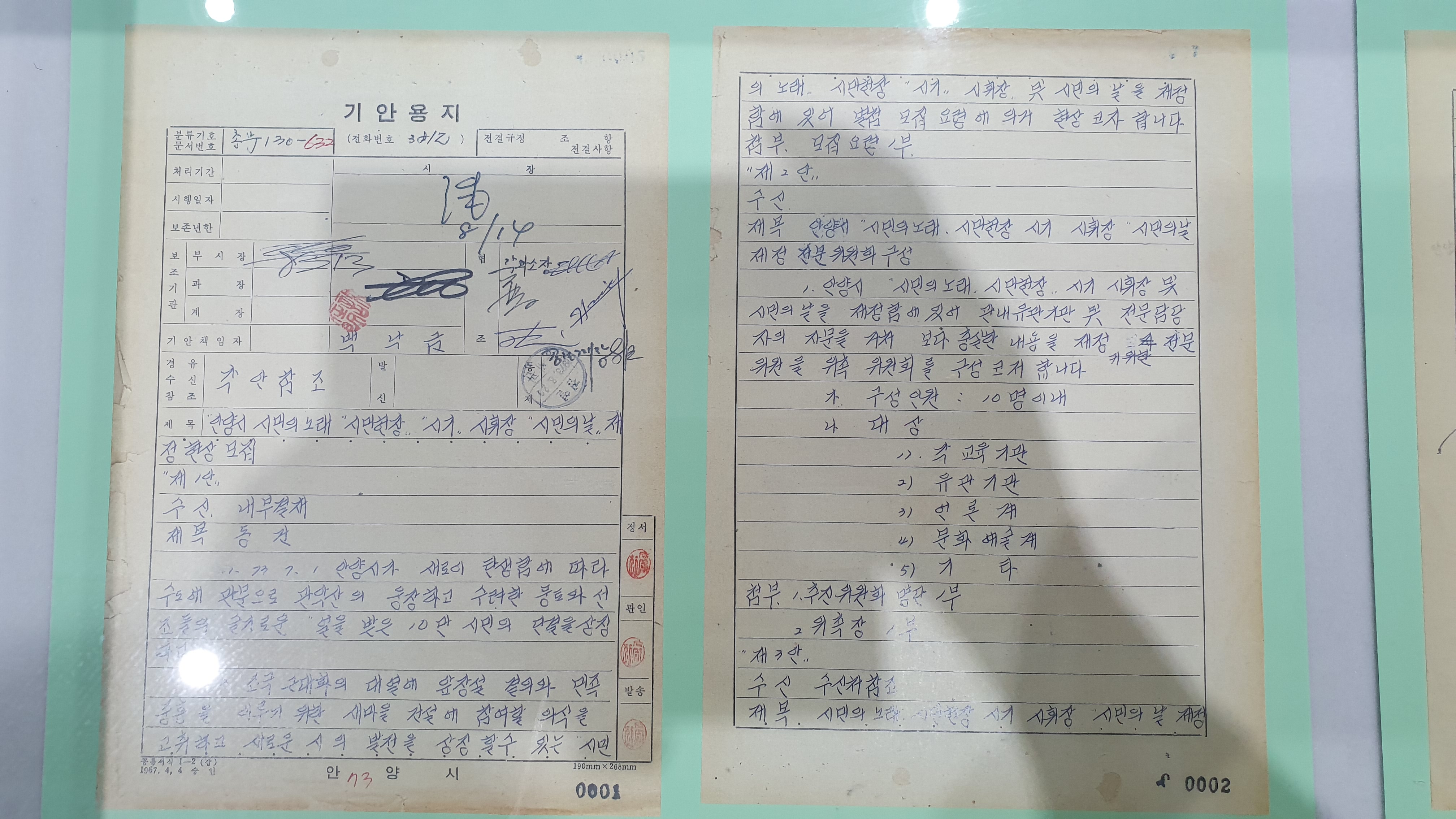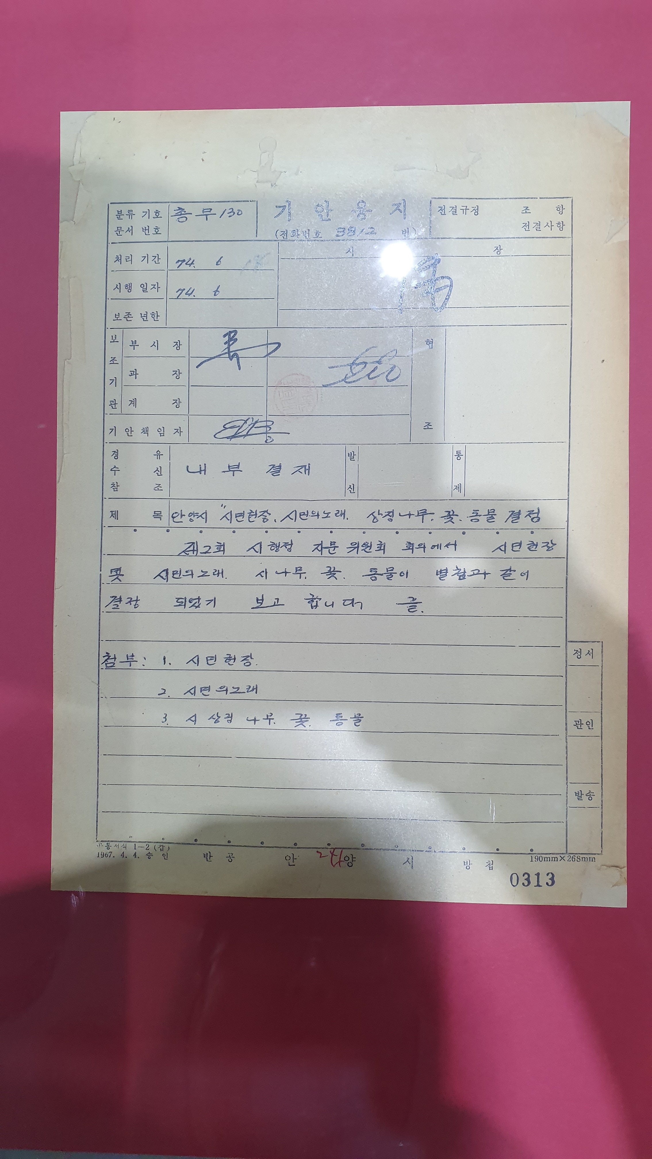 또 지금은 고인이 됐거나 오래전 현직에서 물러난 초대 장용순 안양시장과 낯선 이름의 공무원들 서명 및 직인도 시선을 모았다..