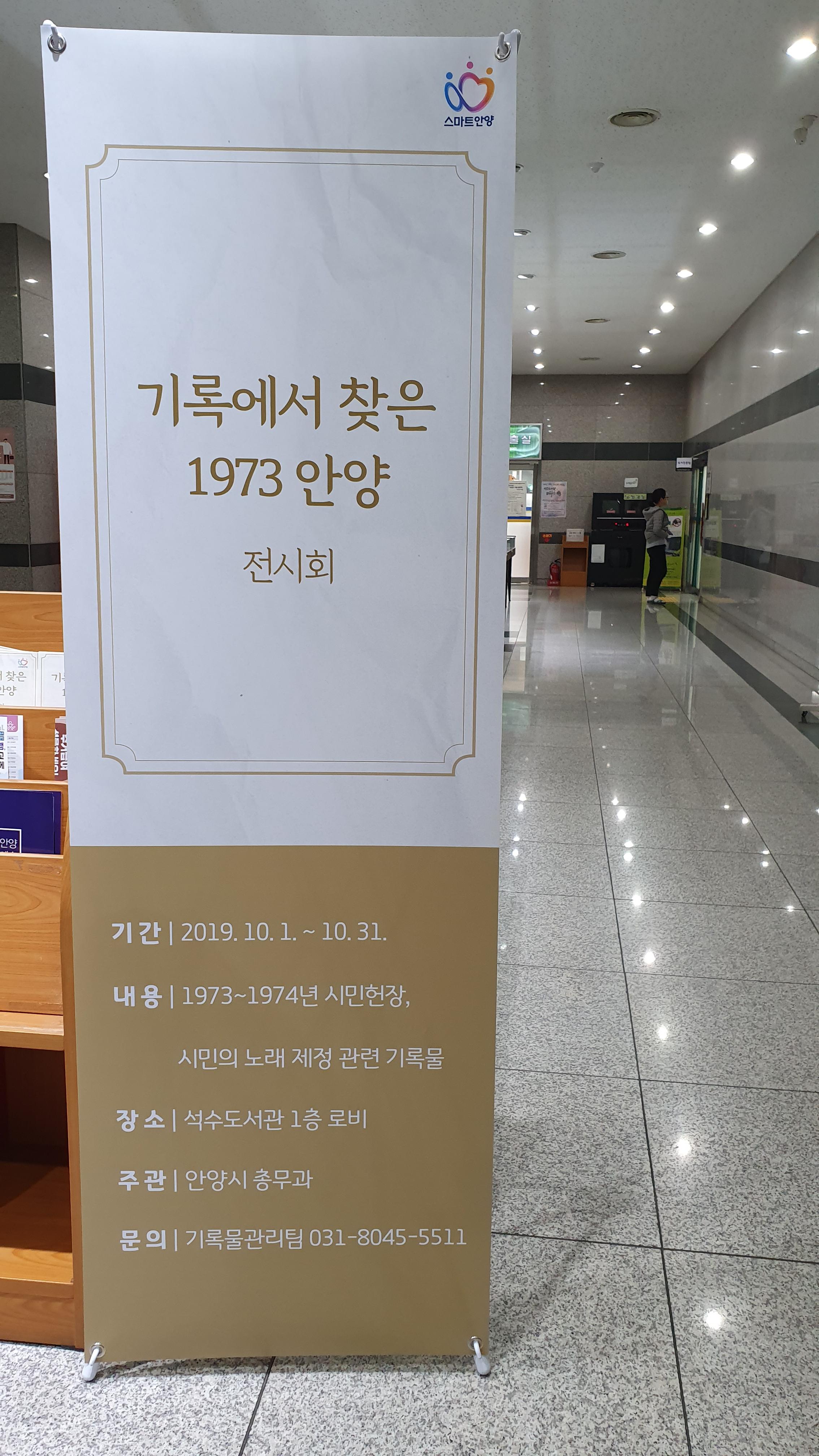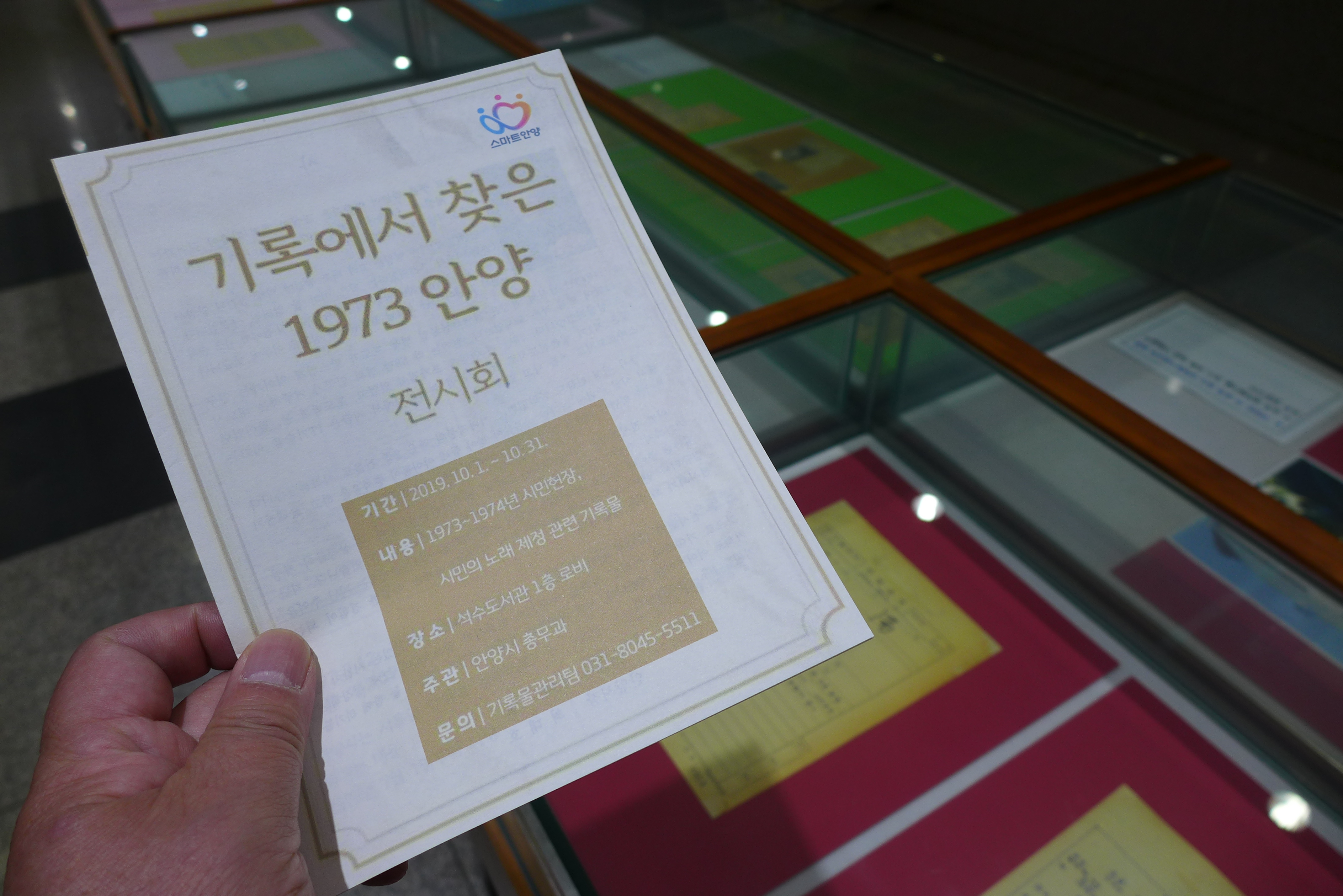 '기록에서 찾은 1973 안양’ 전시회는 시로 승격 된지 50년이 가까워지는 시점에 안양의 역사적 발자취를 재조명하고 시민에게 자긍심을 심어주고자 마련한 것으로 10월 한 달 동안 열렸는데 마치 타임머신을 타고 과거로 돌아간듯 했었다.