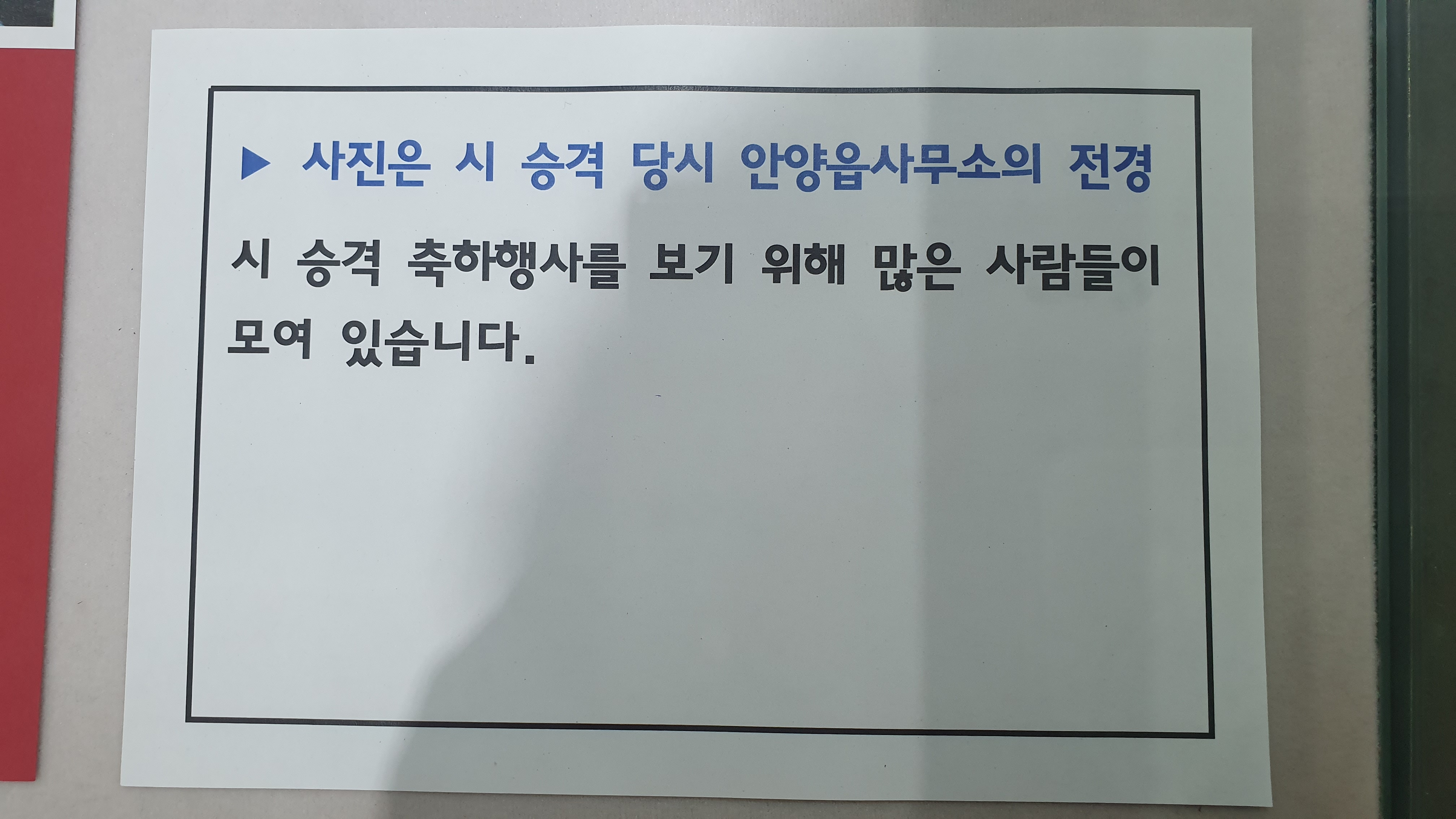 올해가 시 승격 50주년으로 안양시, 안양박물관, 시립도서관 등 어느 주체가 "안양시 승격 50주년 전시회"를 주최할지 모르겠지만 자료를 좀 더 찾고 보완해 의미있고 심도 깊은 전시회가 열렸으면 좋겠다.