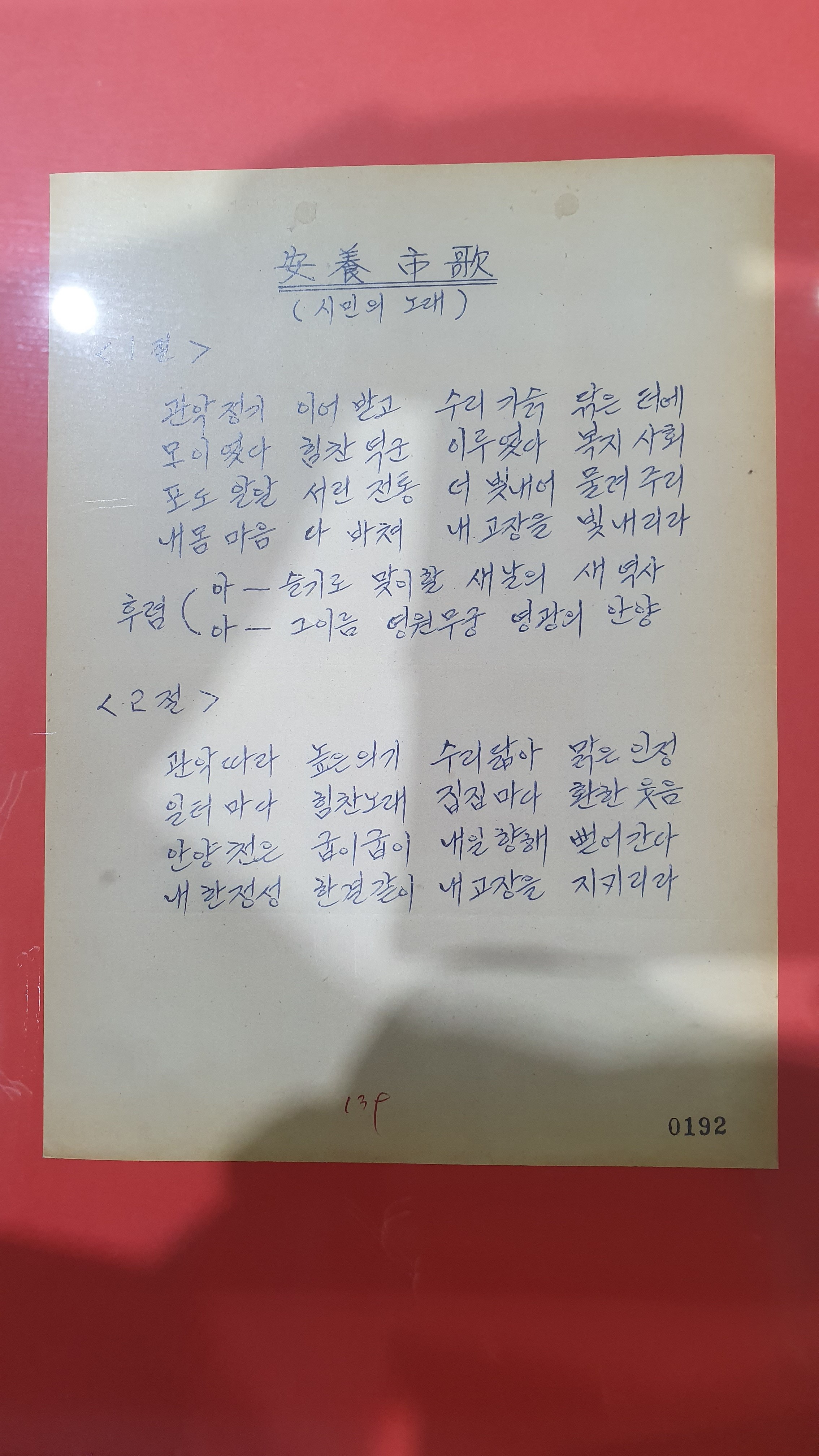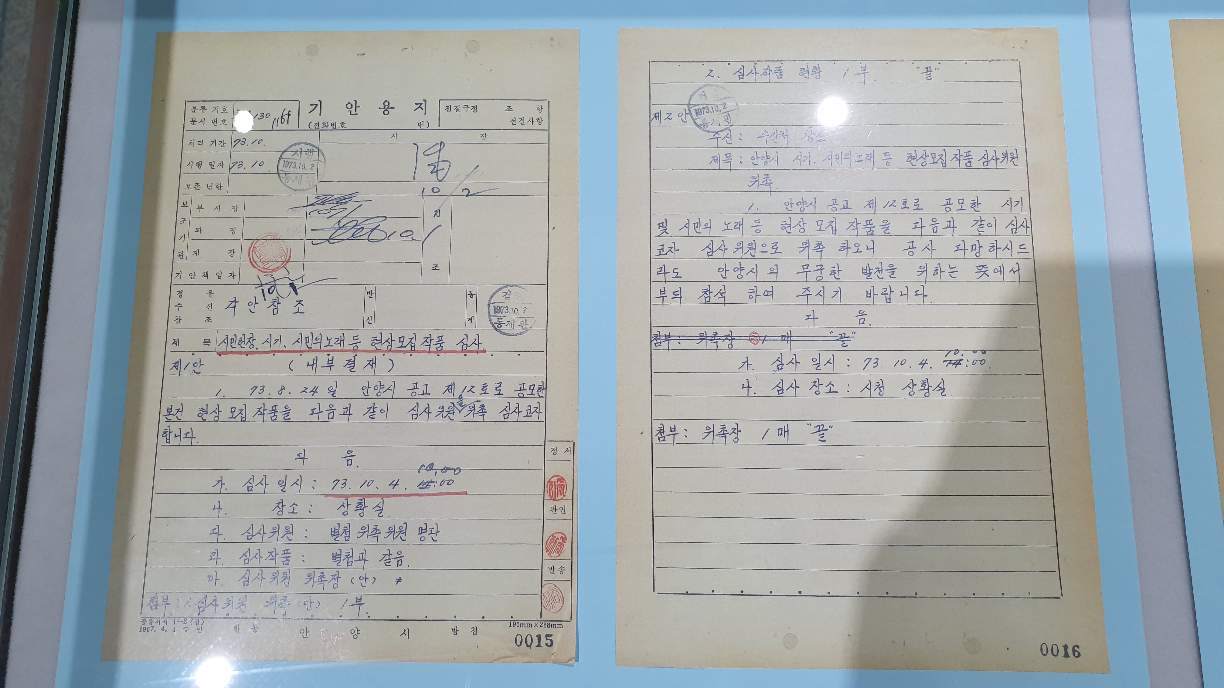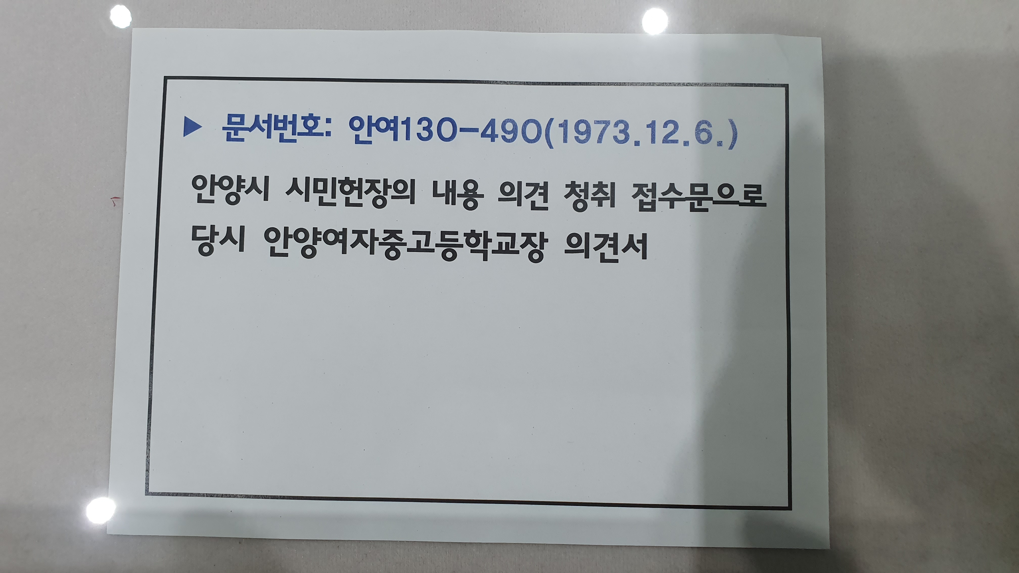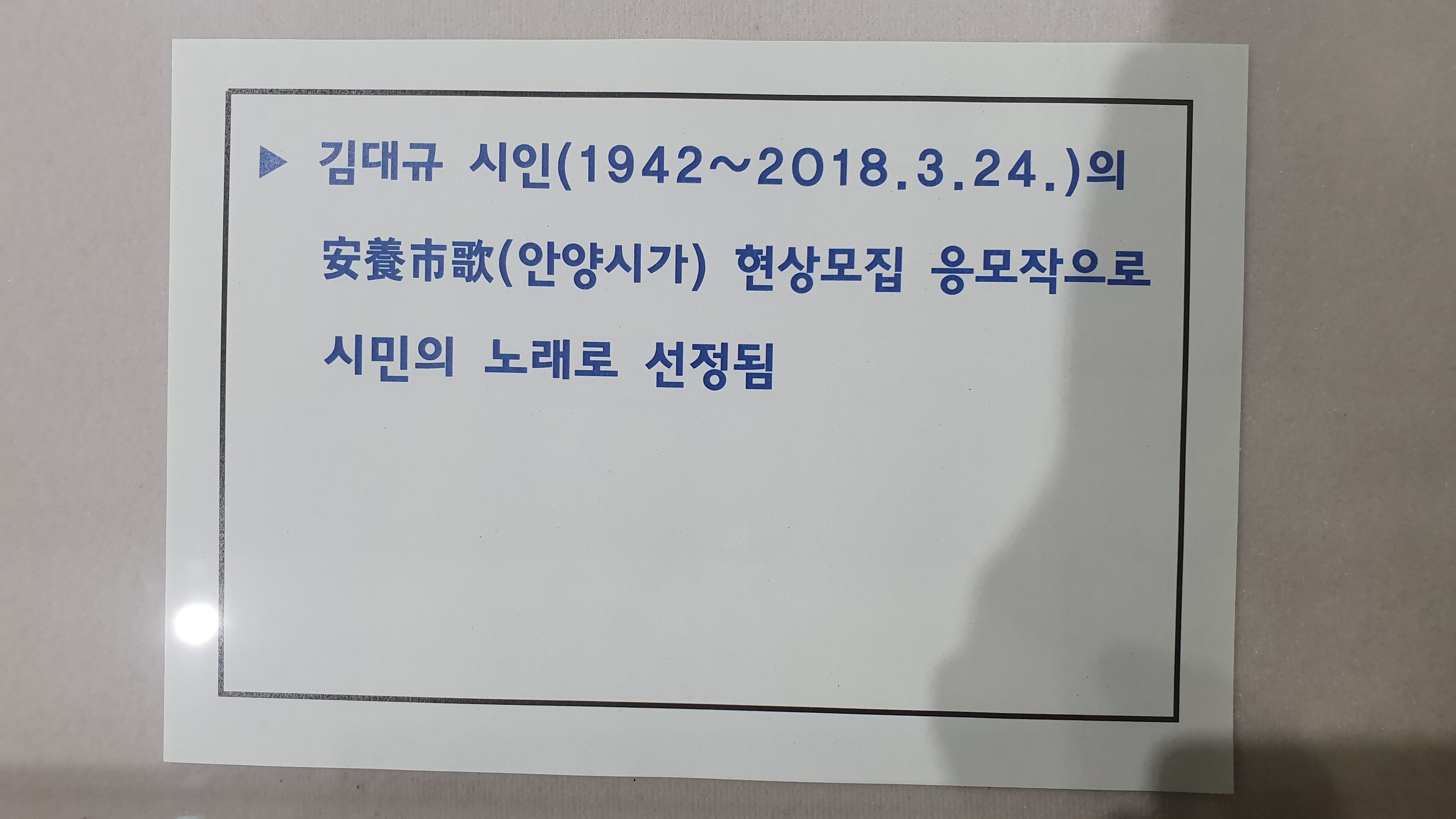 2019년 전시회에는 ‘안양시민의 노래’와 ‘안양시민헌장’ 등의 시 상징물이 제정되기까지 과정이 담긴 1973∼1974년 당시의 기록물 40여점이 선보였다.