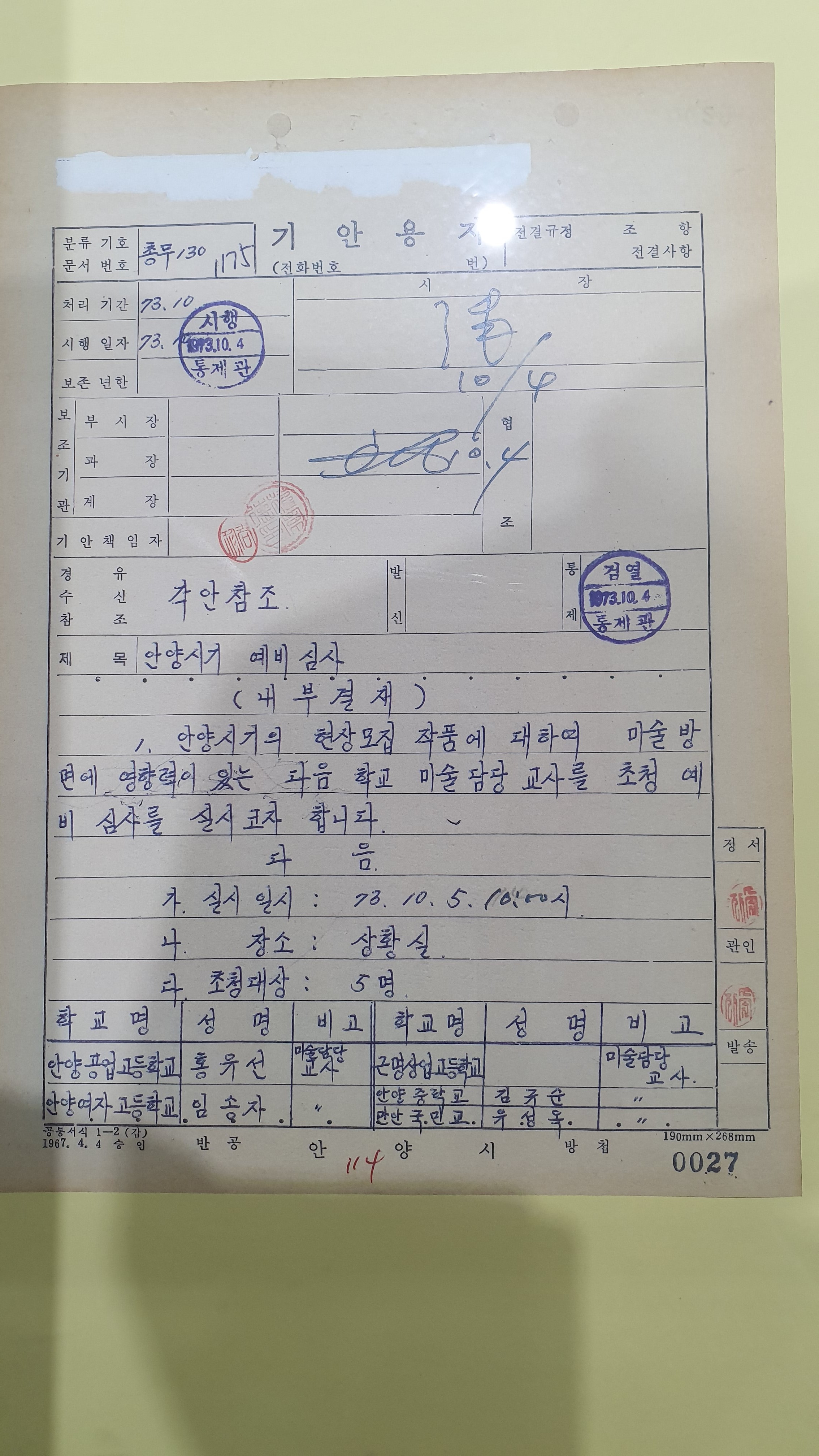 '기록에서 찾은 1973 안양’ 전시회는 시로 승격 된지 50년이 가까워지는 시점에 안양의 역사적 발자취를 재조명하고 시민에게 자긍심을 심어주고자 마련한 것으로 10월 한 달 동안 열렸는데 마치 타임머신을 타고 과거로 돌아간듯 했었다.