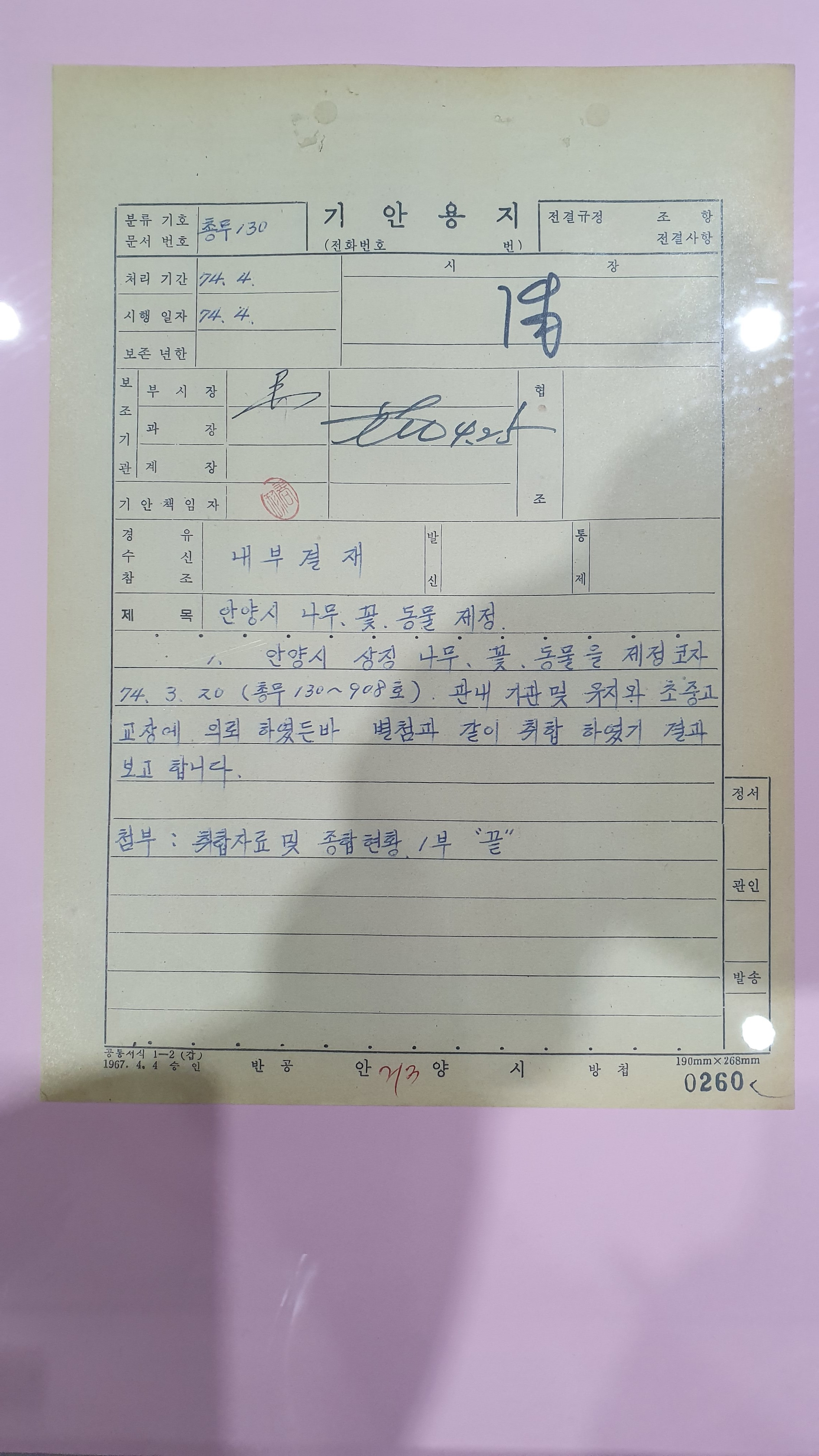 또 지금은 고인이 됐거나 오래전 현직에서 물러난 초대 장용순 안양시장과 낯선 이름의 공무원들 서명 및 직인도 시선을 모았다..