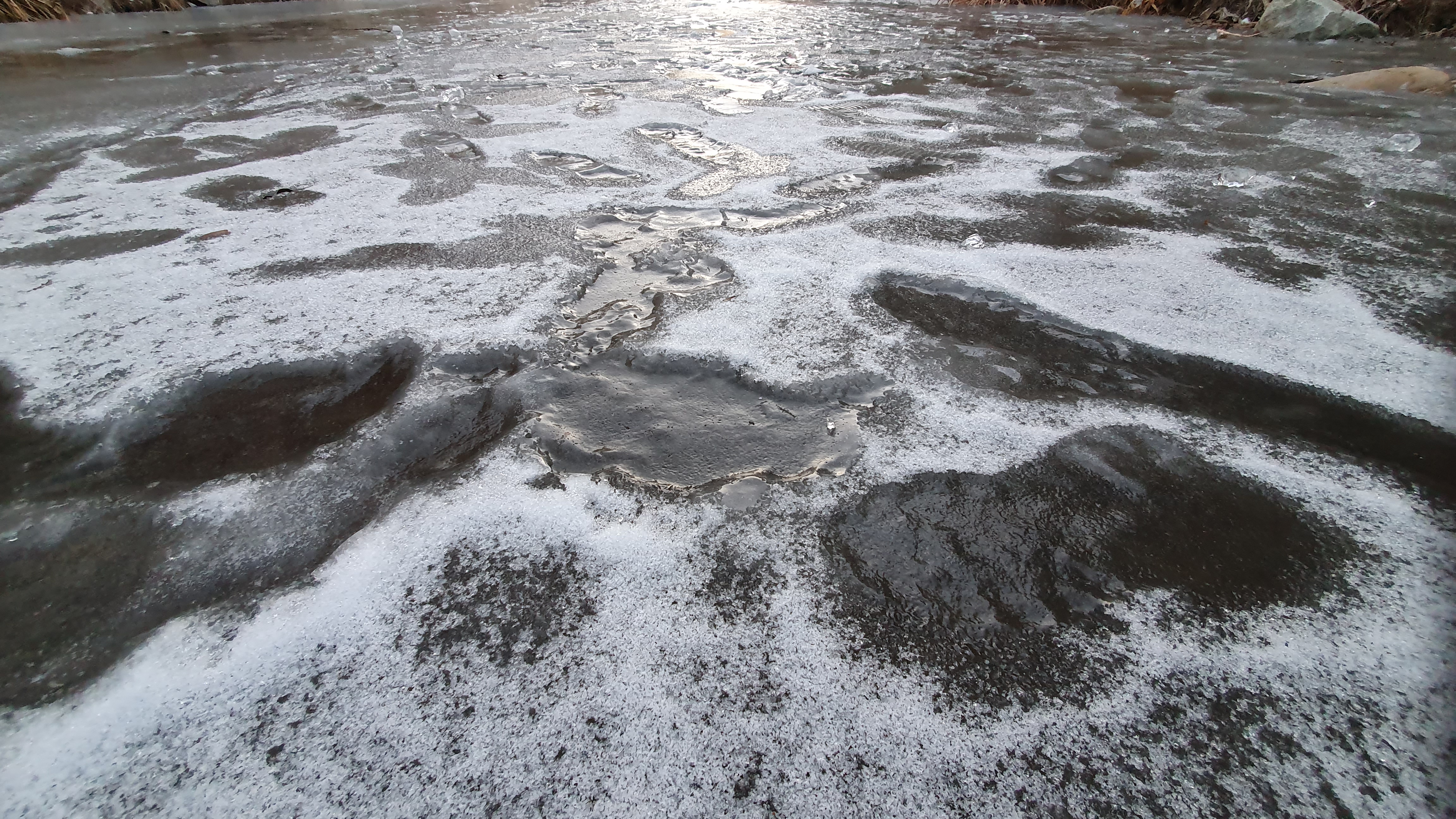 2021.01.30/ #도시기록 #수암천 #겨울풍경/ 날이 춥긴 추운 모양이다. 양지4교 다리 아래 하천이 꽁꽁 얼었다.