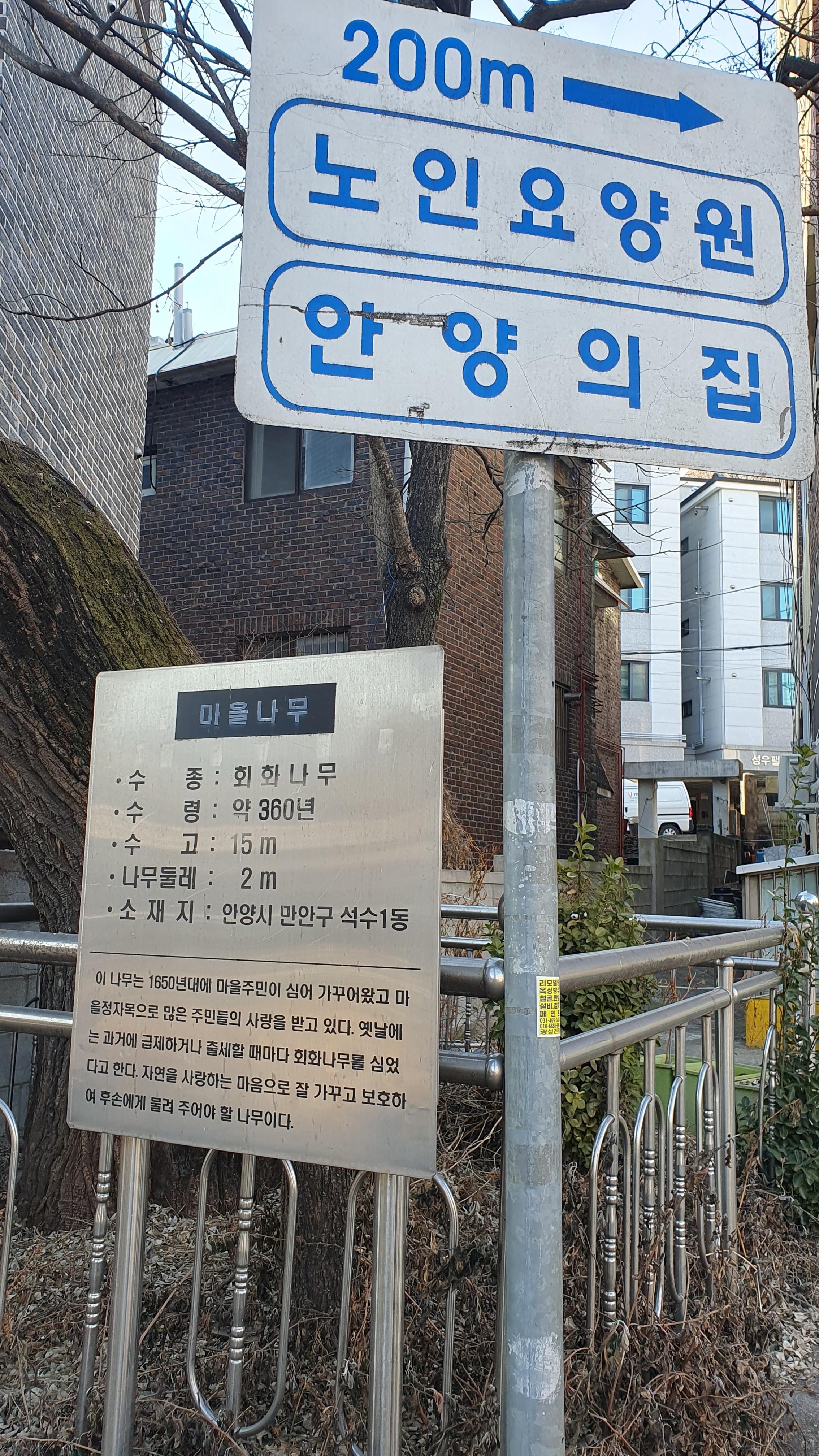 동네 주민들은 오래전부터 안양시가 보호수로 지정해 보호 및 관리대책을 마련했으면 싶다고 하나 아직은 그냥 노거수다.
