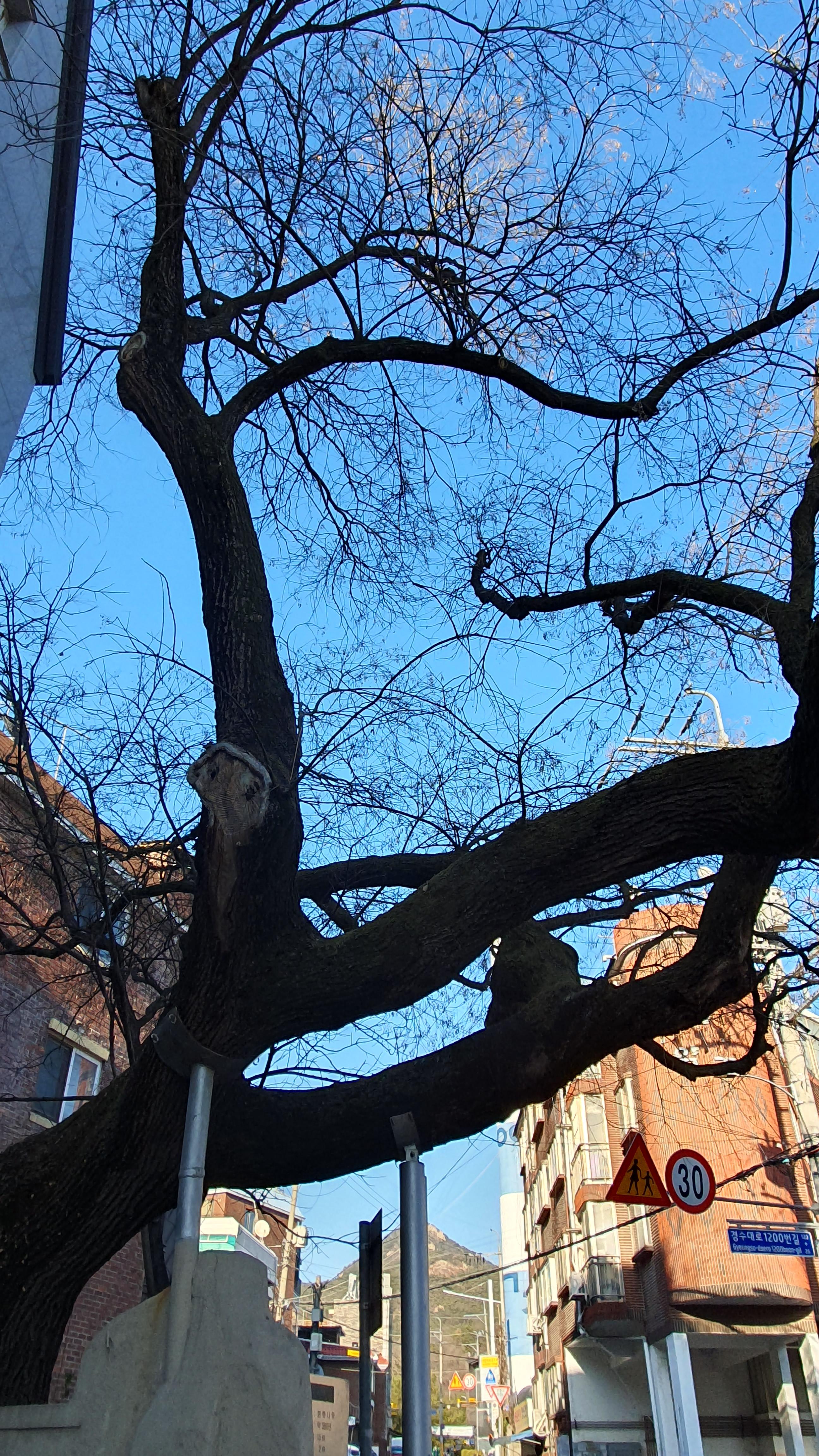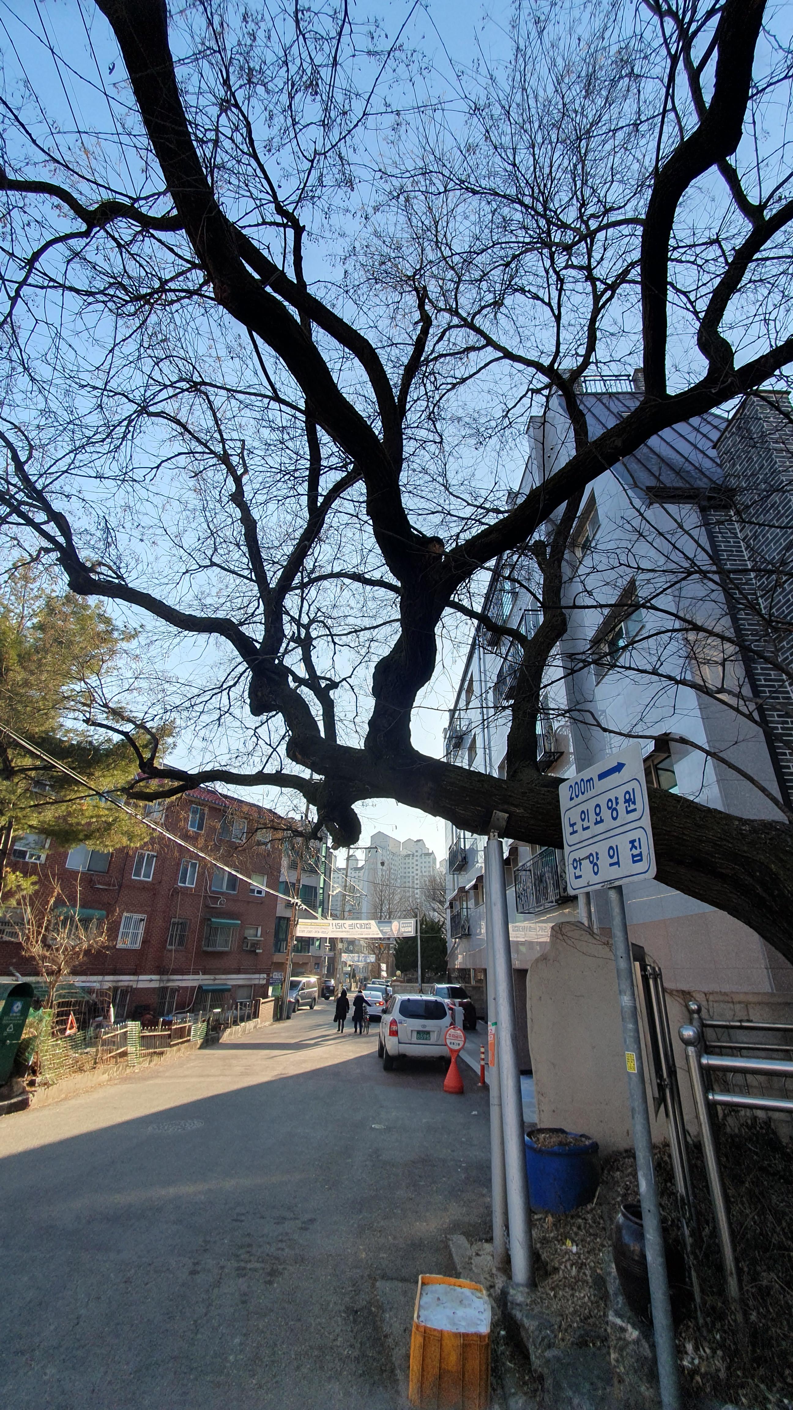2023.02.03/ #안양 #회화나무 #동네 #골목 #보물 #미래유산 #안양예술공원 / 안양시 만안구 석수1동 안양박물관 후문앞에 자리한 회화나무. 회화나무는 옛날에 과거에 급제하거나 출세할 때 마다 심었다고 하여 선비나무, 학자나무로 불리우며 주로 궁궐(관가)이나, 서원 주변에 식재하어 장소의 품격을 높이 우러러 보는 상징으로 심었다.