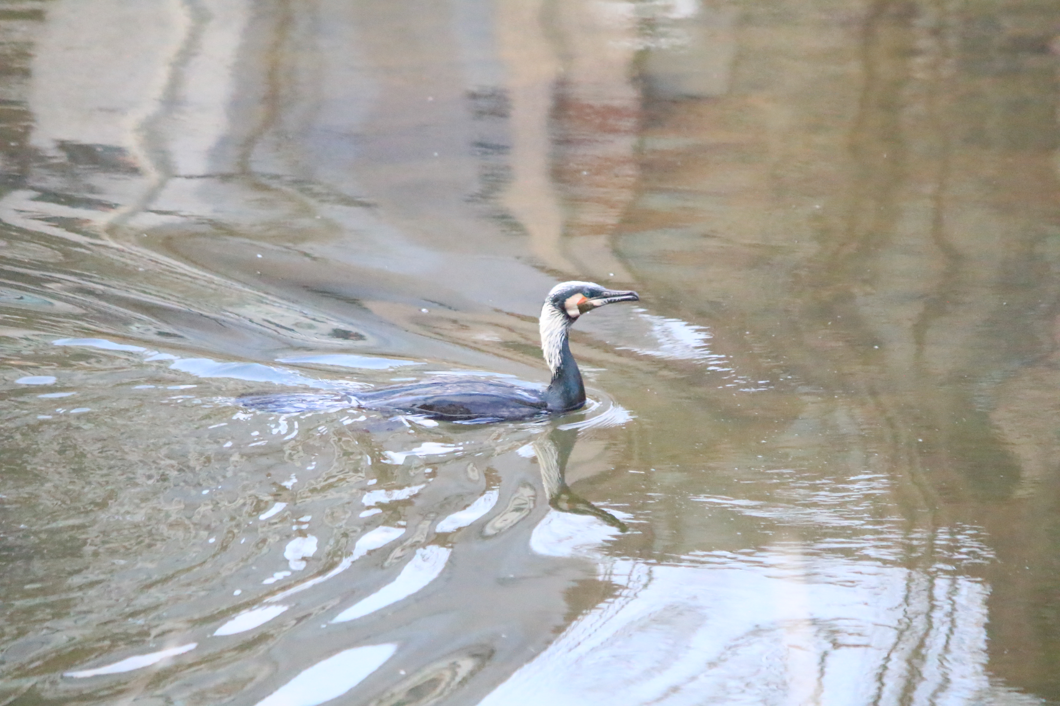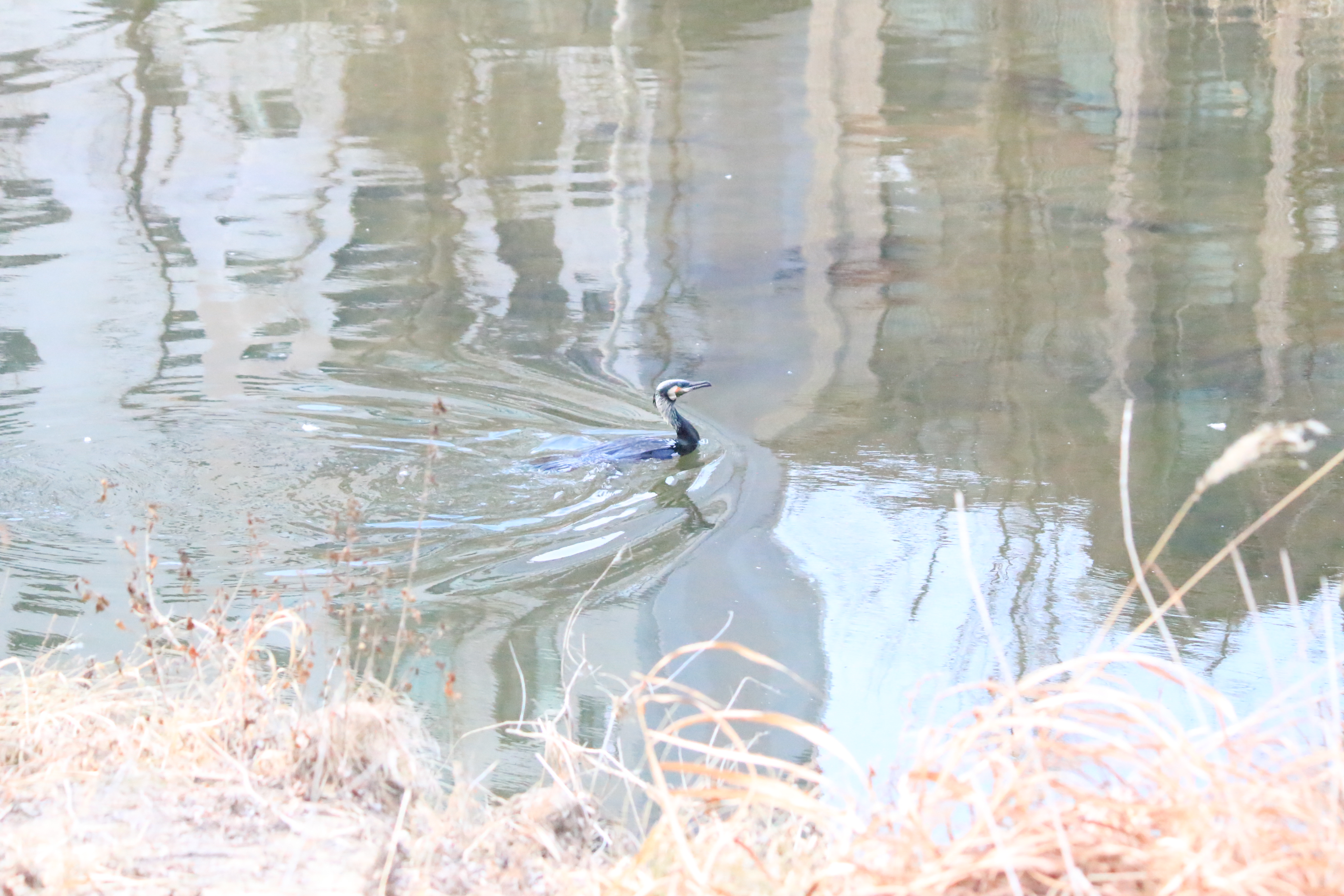 2023.02.05/ #도시기록 #민물가마우지 #학의천/ 학의천 수량이 머많이 줄어들어 대형 어중이 된 잉어들이 물이 깊은곳을 찾아가 예전에 노닐 곳에서 보기가 힘들다. 물속으로 잠수해서 사냥하는 하천의 포식자 민물가마우지 한마리가 수심이 비교적 깊은 수촌교 옆 하천에서 물고기사냥이 한창이다.