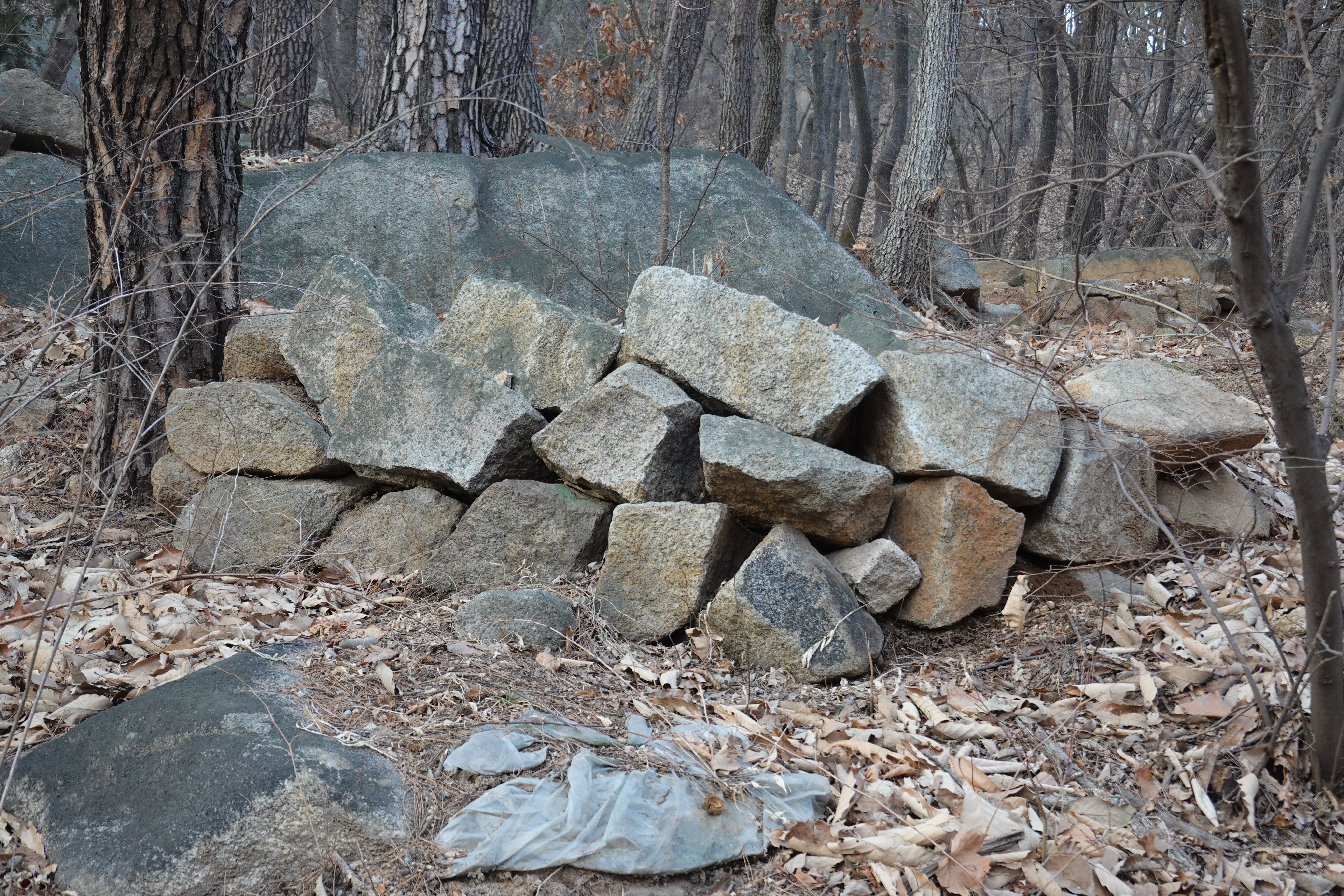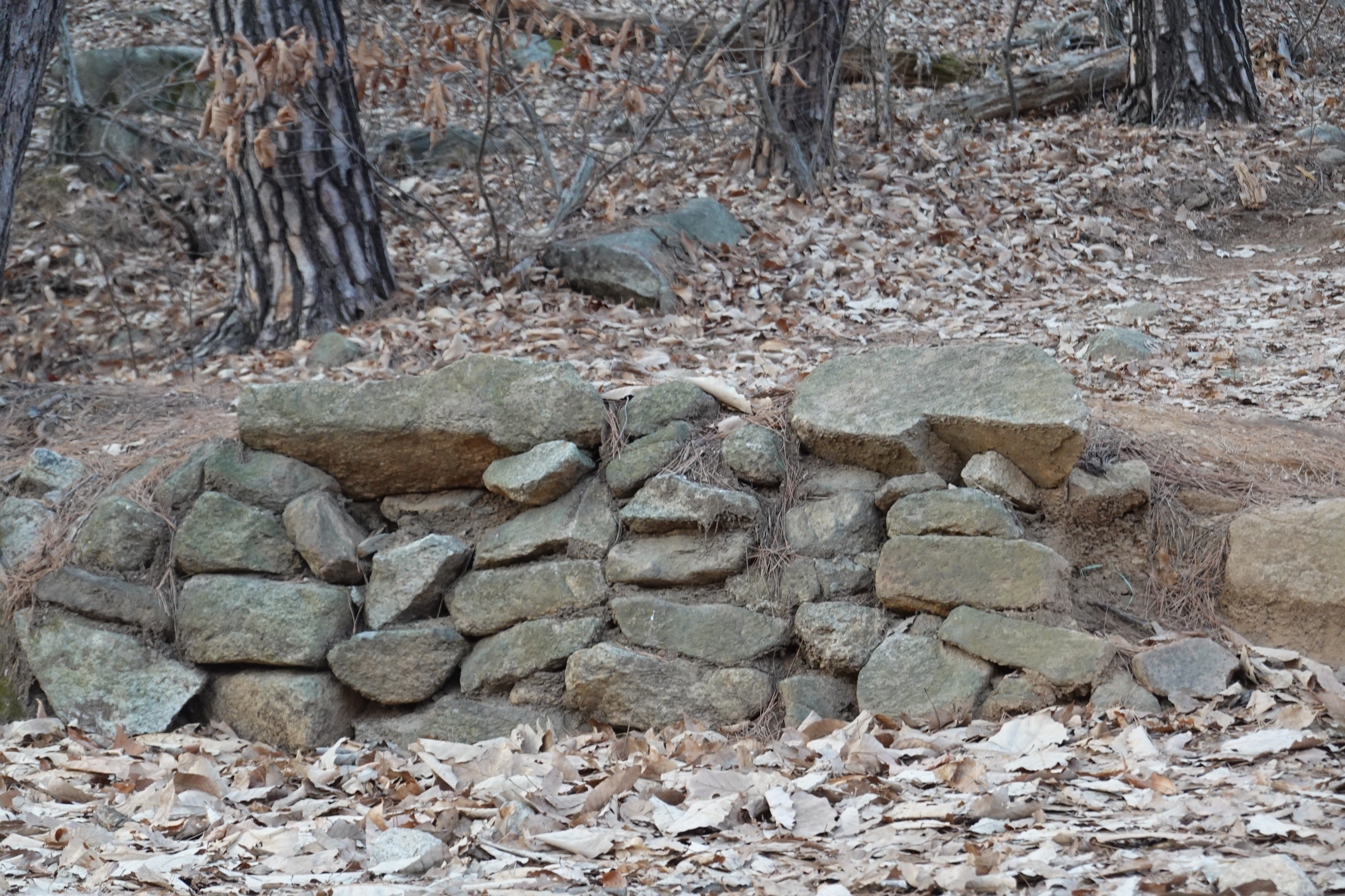 2023.02.08/ #도시기록 #안양예술공원 #집터 #흔적/ 안양사 가는길 초입 좌측 도로변 야산에서 만난 집터 또는 암자 흔적들. 겨울이 되니 봄부터 가을까지 계절에 녹음과 수풀에 가려져 보이지 않던 것들이 보인다,
