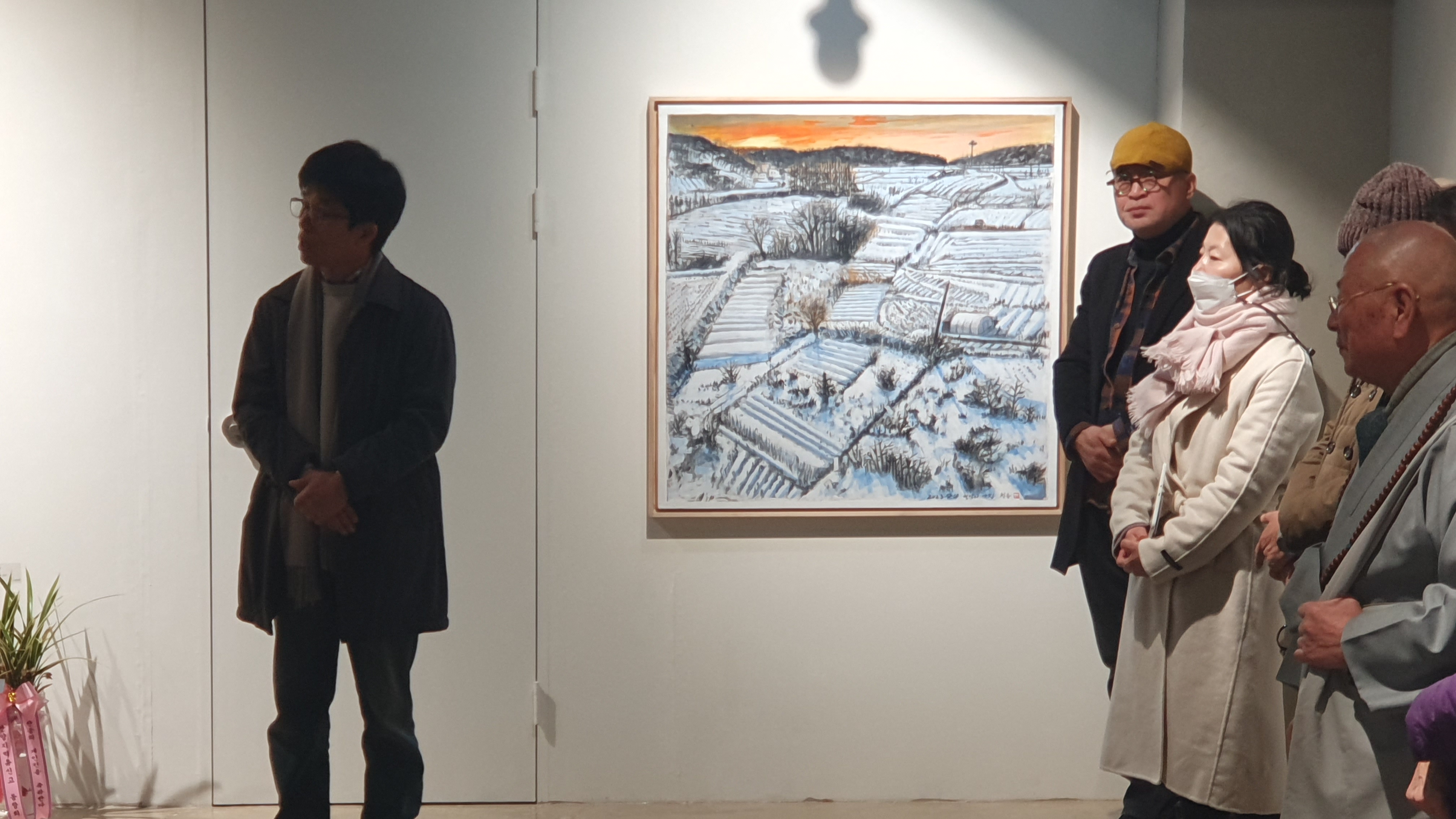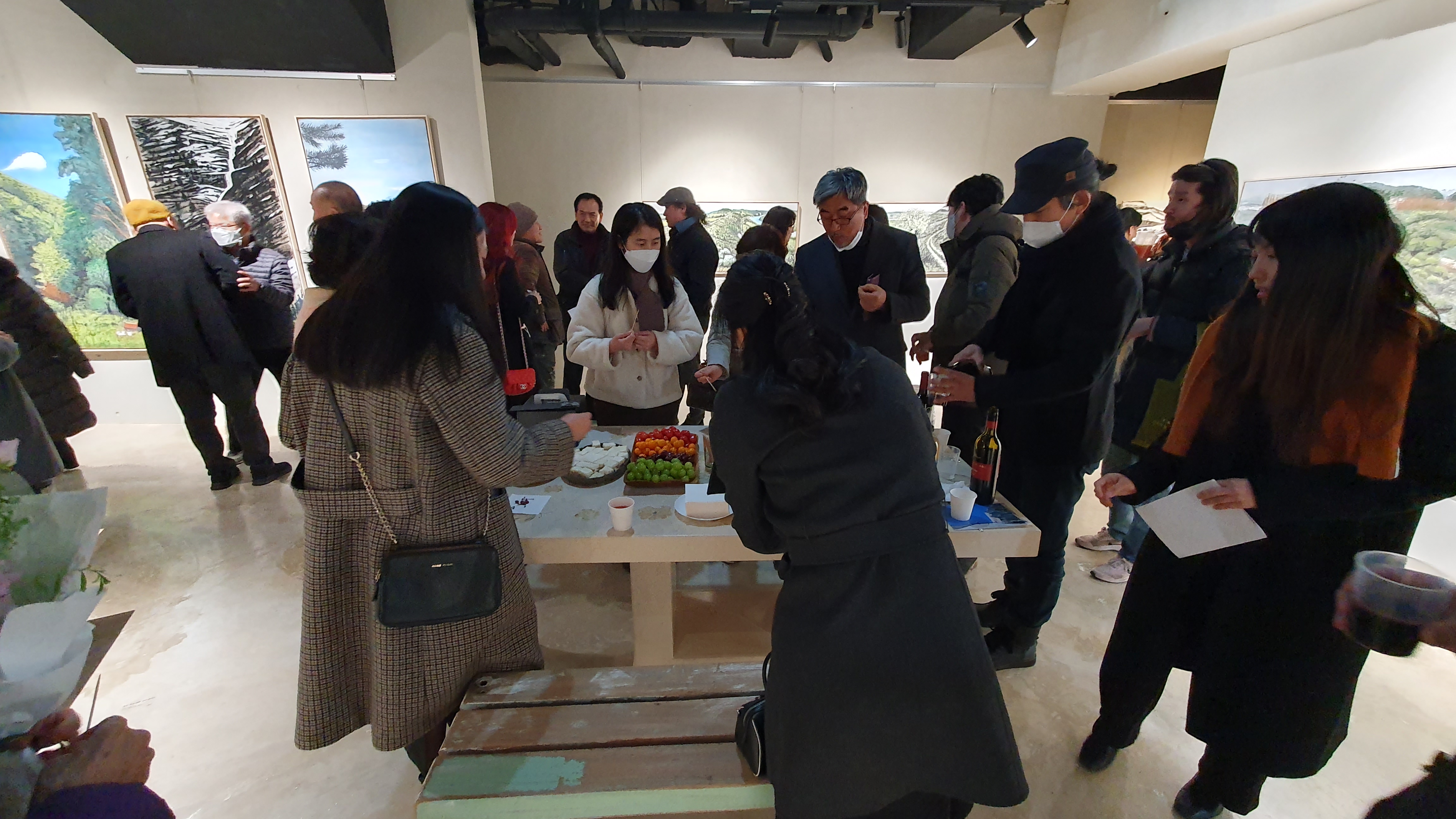 지난 8일 안양예술공원 안양사 가는길 초입에 새로문을 연 전시공간 ‘두나무아트큐브’에는 박찬응 작가의 첫 전시회를 축하해 주기 위해 멀리는 프랑스 노르망디에서 온 박친응의 벗이된어느 가족을 비롯 가족, 친구, 지인, 독자 등 80여명이 모여 흡사 잔칫날 같은 분위기속에서 축하물결이 이어졌다. 개인적으로 80년대 근로자회관총무로 활동할 때 만났던 우리그림 회원이었던 홍대봉스님, 권윤덕 작가, 이억배 작가도 근 20여년만에 만나고 코로나르 수년동안 보지 못했던 이들도 볼 수 있었다,.만남을 이어준 박찬응 아우님 고마우이. 첫 작품 전시회 큰맘으로 축하하면서.