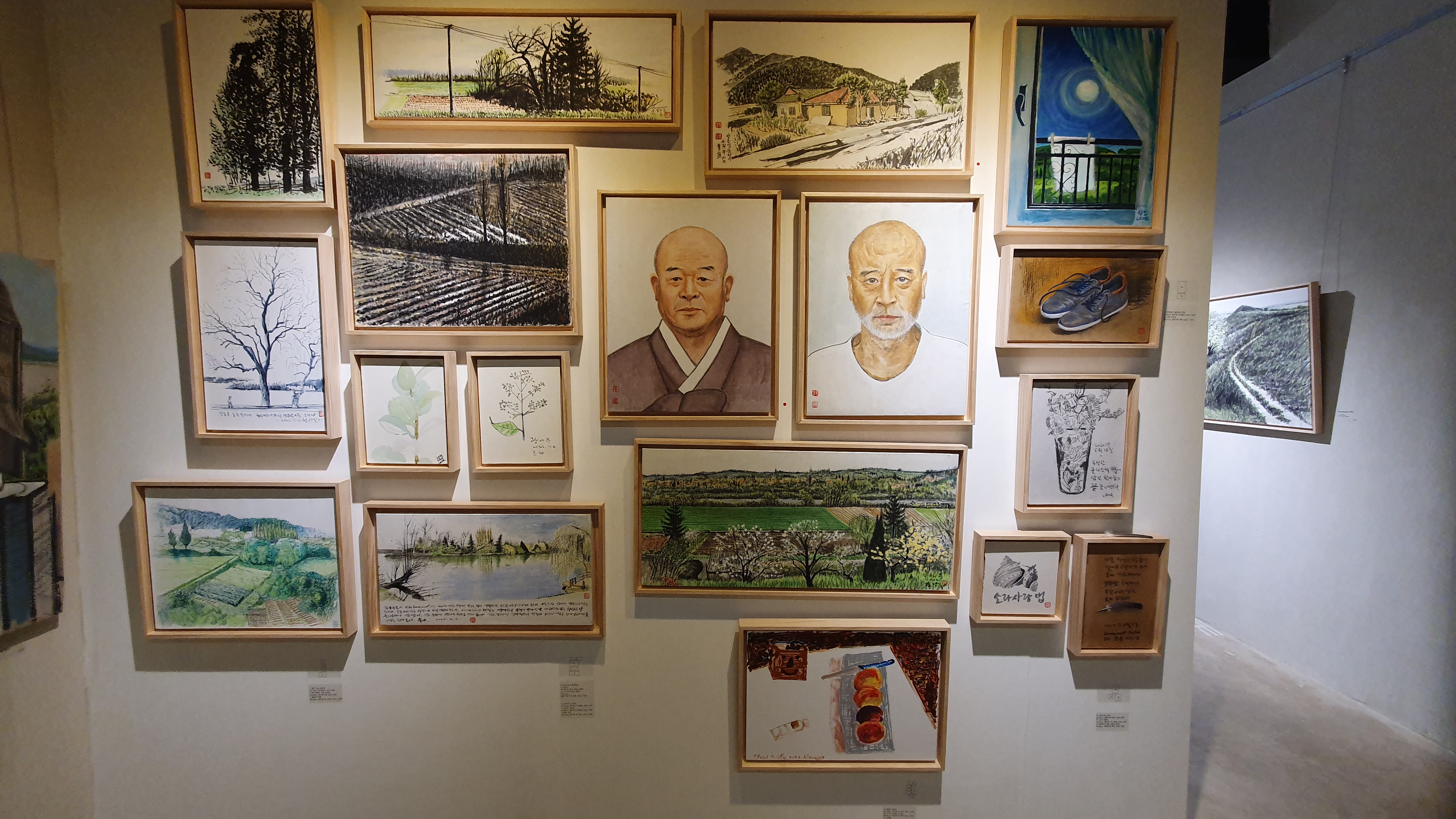 2020년 무렵 아들이 사는 프랑스 노르망디 해안가와 절벽에서 오랫동안 붓을 놓았던 그림을 그,리더니 왕송후수와 물덤방이 있는 본인이 사는 의왕 왕송호수 주변의 산과 들을 그리고 안양군포의왕 중심은 어디일까 관악산과삼성산.수리산과모락산으로 둘러싸이고 안양천을 비롯 학의천,수암천, 삼성천,삼막천,산본천 등 지천들이 흐르는 안양군포의왕 산수지도를 그리는 등 창작의 세계로 빠져들더니 한국과 프랑스를 오가며 그린 그림으로 그의 셍애 첫 작품전시회 ‘표류이야기’를 개최했다. 마을과 도시를 캔버스 삼아 작업하던 그가 이제는 자신만의 화폭에서 표류를 시작한 것이다.