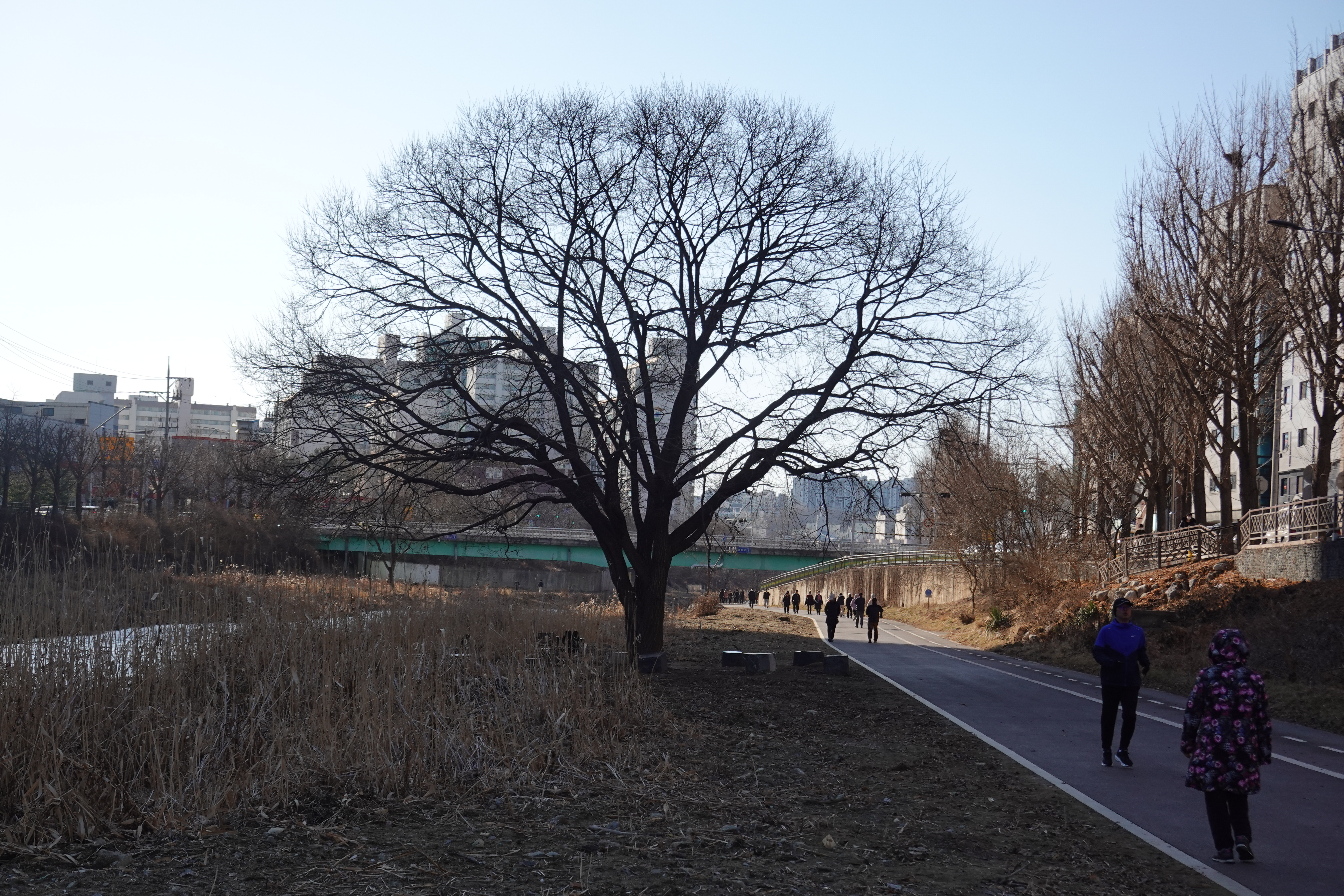 2023.02.19/ #도시기록 #학의천 #명물 #왕버드나무/ 대한교와 동안교 중간쯤에 놓여진 평촌더샵 세월교 옆에서 볼 수 있는 멋진 왕버드나무. 학의천에서 으뜸으로 꼽는 최고 명물이지 않을까 싶다. 가지 끝자락에 봄기운이 느껴진다.