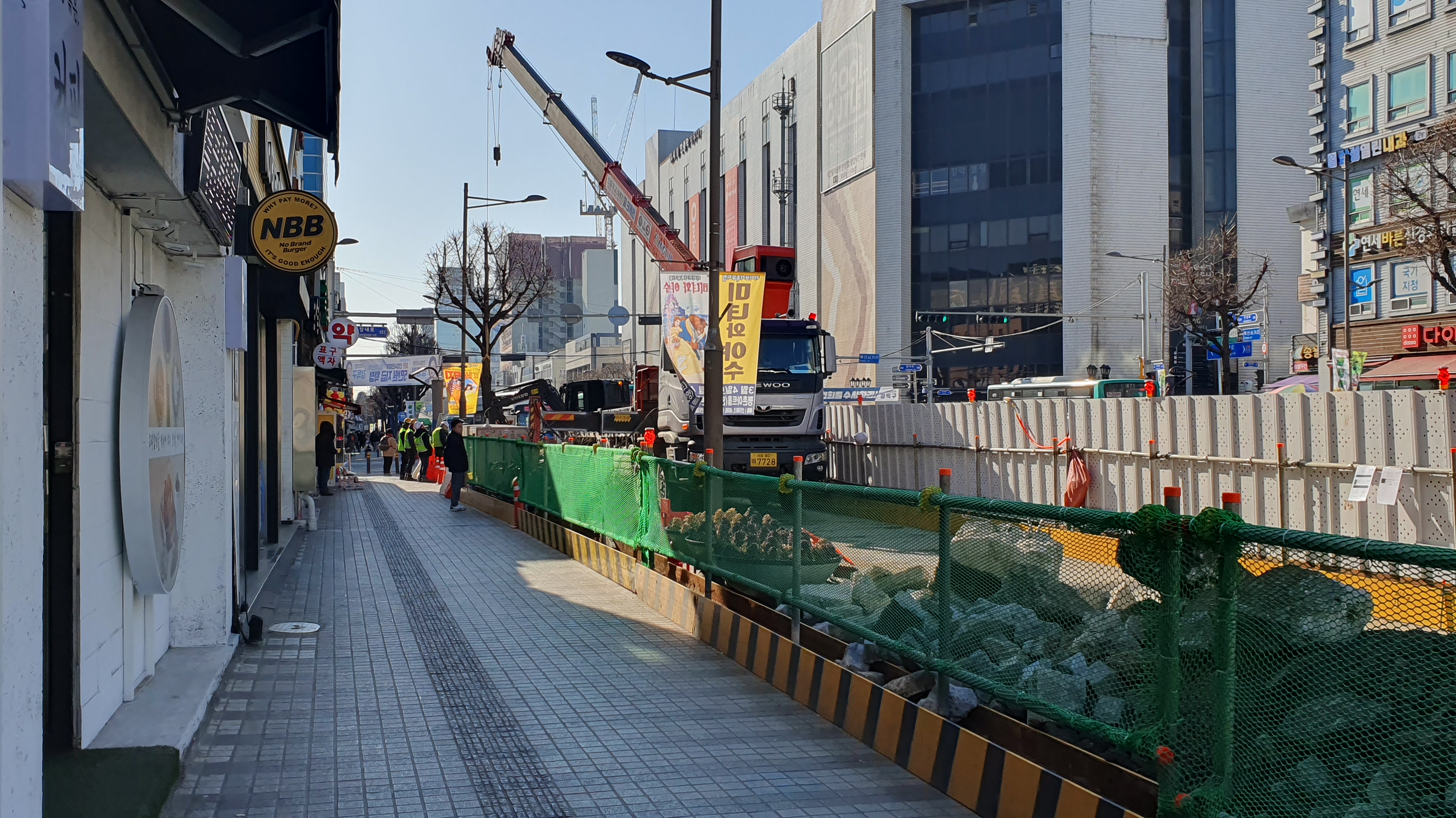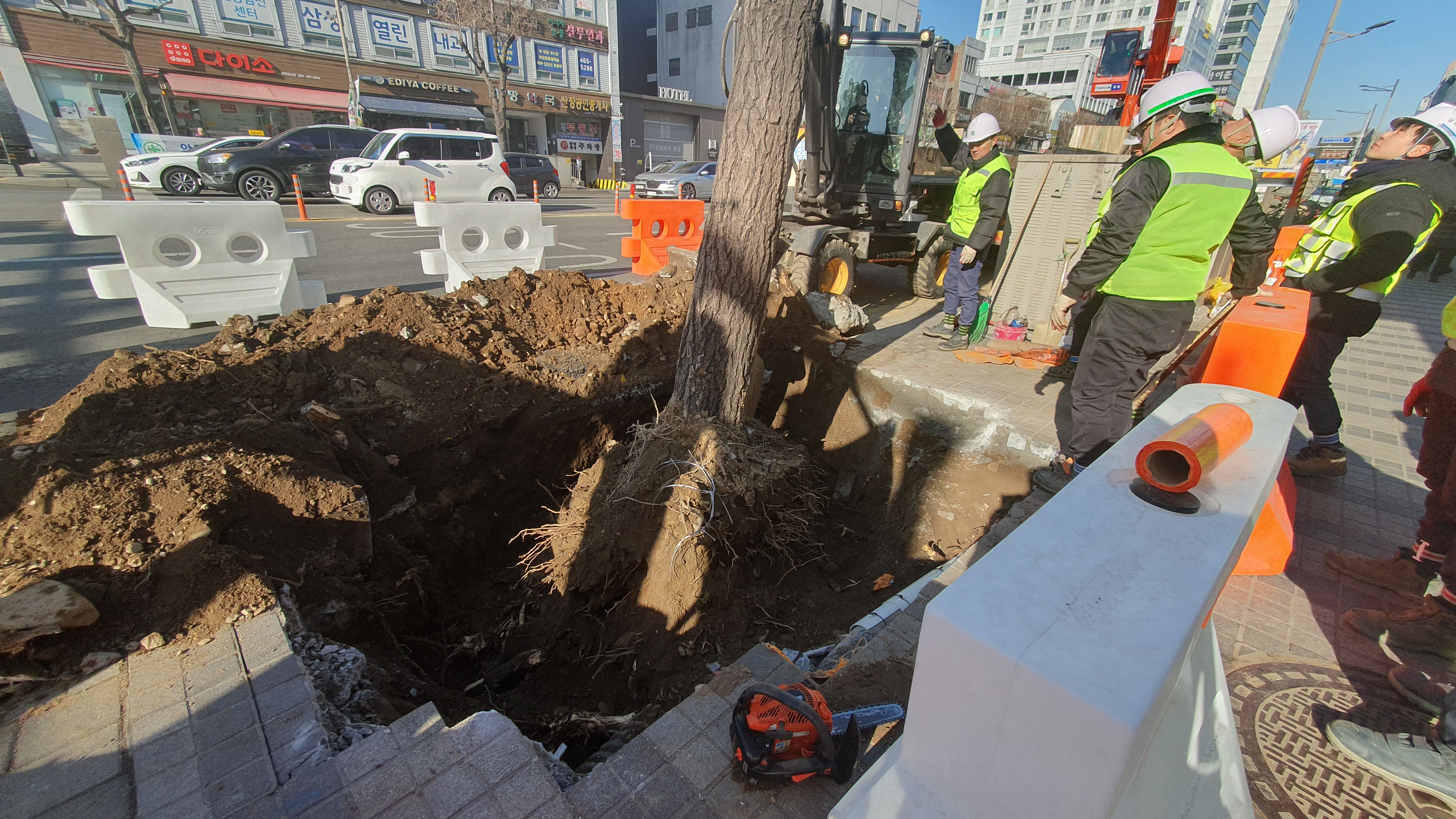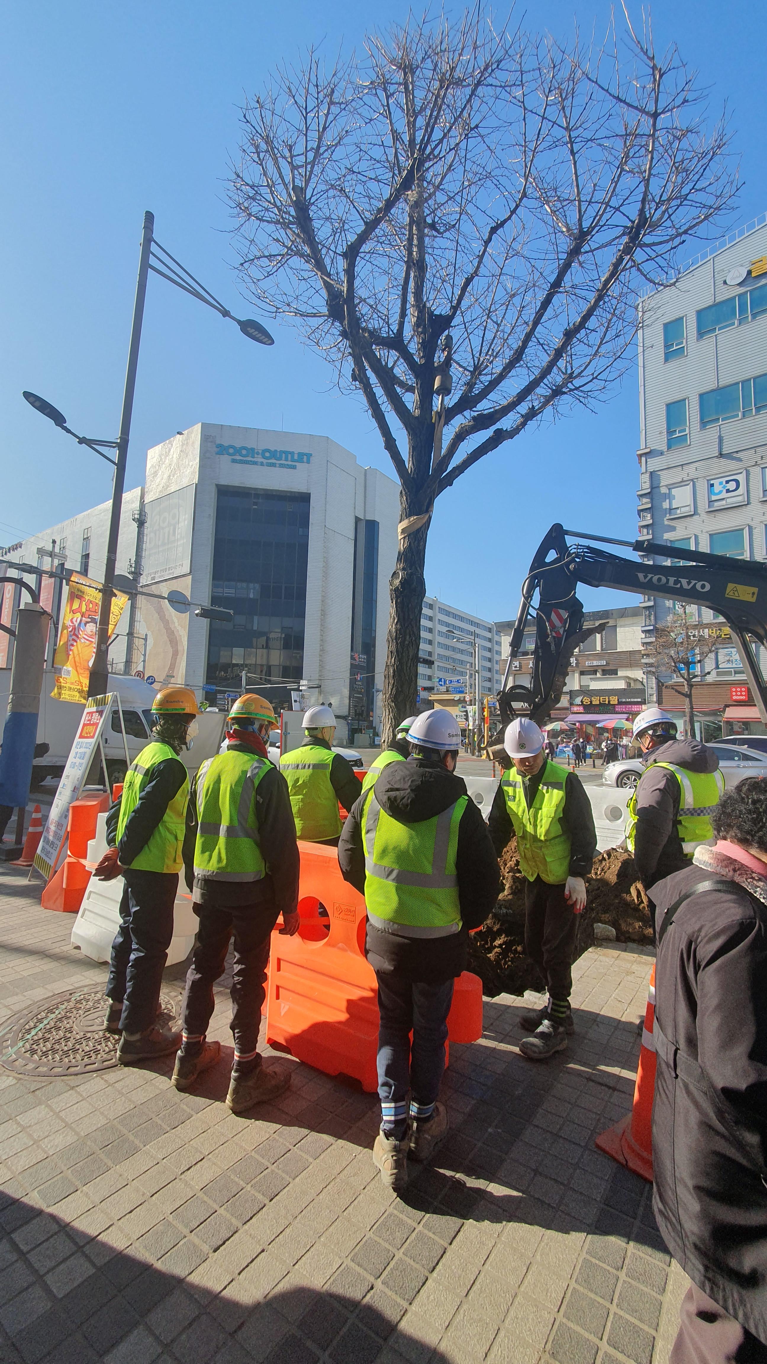 2023.02.21/ #도시기록 #안양 #만안구 #안양일번가 #지하철/ 월곶-판교 복선전철 공사가 본격화되면서 버스정류장이 이전되고 공사장 주변에 심어진 가로수를 이식하기 위한 공사가 실시되는 등 안양 만안구 원도심이 어수선하다. 안양일번가 입구에서 월곶-판교 복선전철 6공구 공사가 시작되면서 신한은행앞에 있던 서울시내 버스및 창박골행 안양버스 숭하차 버스정류장을 2001아울렛 맞은편 수협 안양지점 앞으로 이전하고 도로변 가로수인 은행나무를 이식하기 위한 작업도 한창이다.