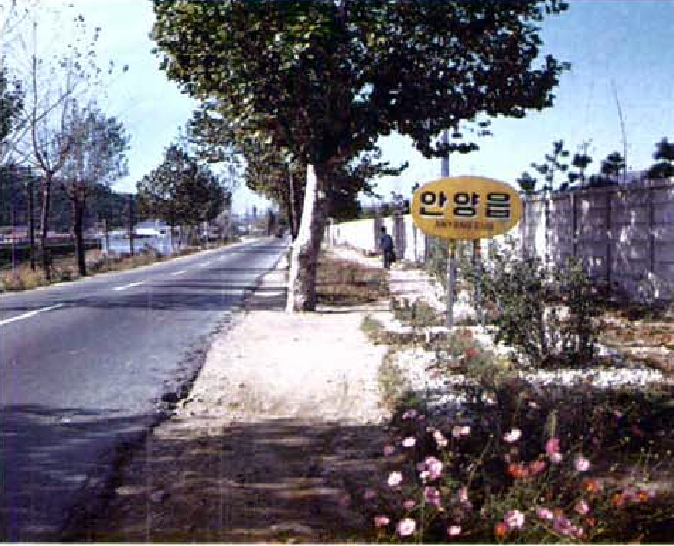 2023년은 안앙시가 1973년 읍에서 시로 승격한지 50주년이 되는해로 만문누리 차원에서 관련 자료들을 발굴하고 있다. 오늘 올리는 이 옛사진은 1971년 안양읍 당시 안양과 수원을 잇던 1번국도(옛 시흥대로. 현 만안로)의 안양읍의 남쪽 끝 경계이다.. 사진속 당시 1번국도는 2차선이었으며 안양읍이라 쓴 표지판 옆 담벼락은 당시 LG전선 안양공장이다.