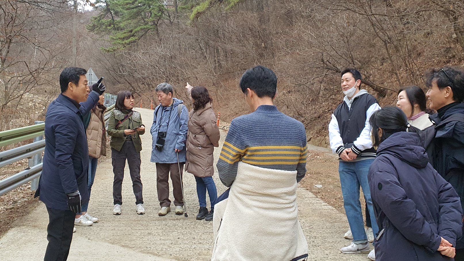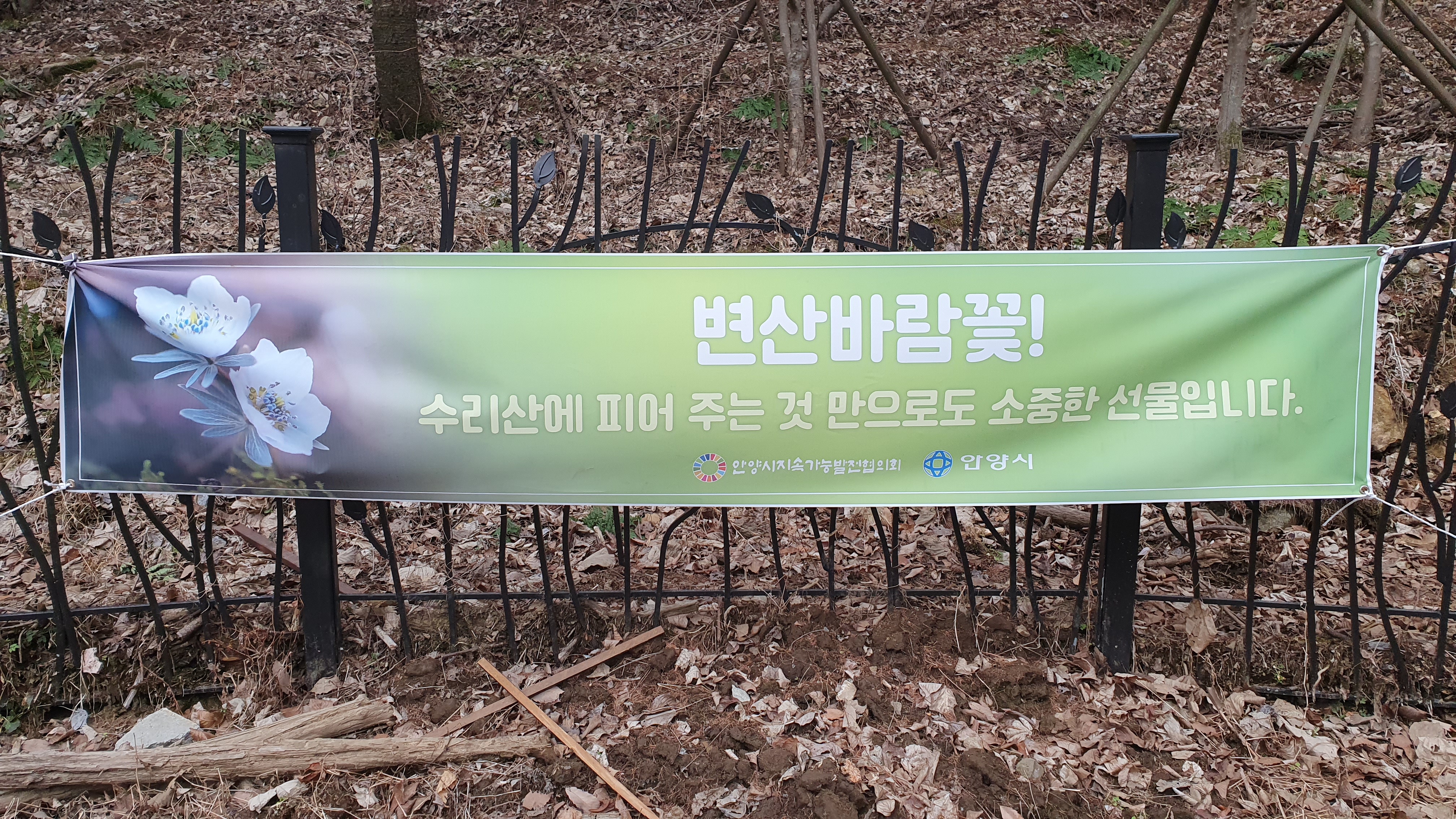 2023.03.15/ #도시기록 #안양 #수리산 #변산바람꽃/ 변산바람꽃 최북단지 수리산 자생지(공군부대 가는길 초입) 실태조사길에 만난 변산바람꽃. 안양시 환경정책과(홍승일 과장과 직원들)와 안양시지속가능발전협의회 생태전환위원회(정종호 위원장과 위원들) 2팀이 변산 아씨들을 만나러 각각 현장에 가다.
