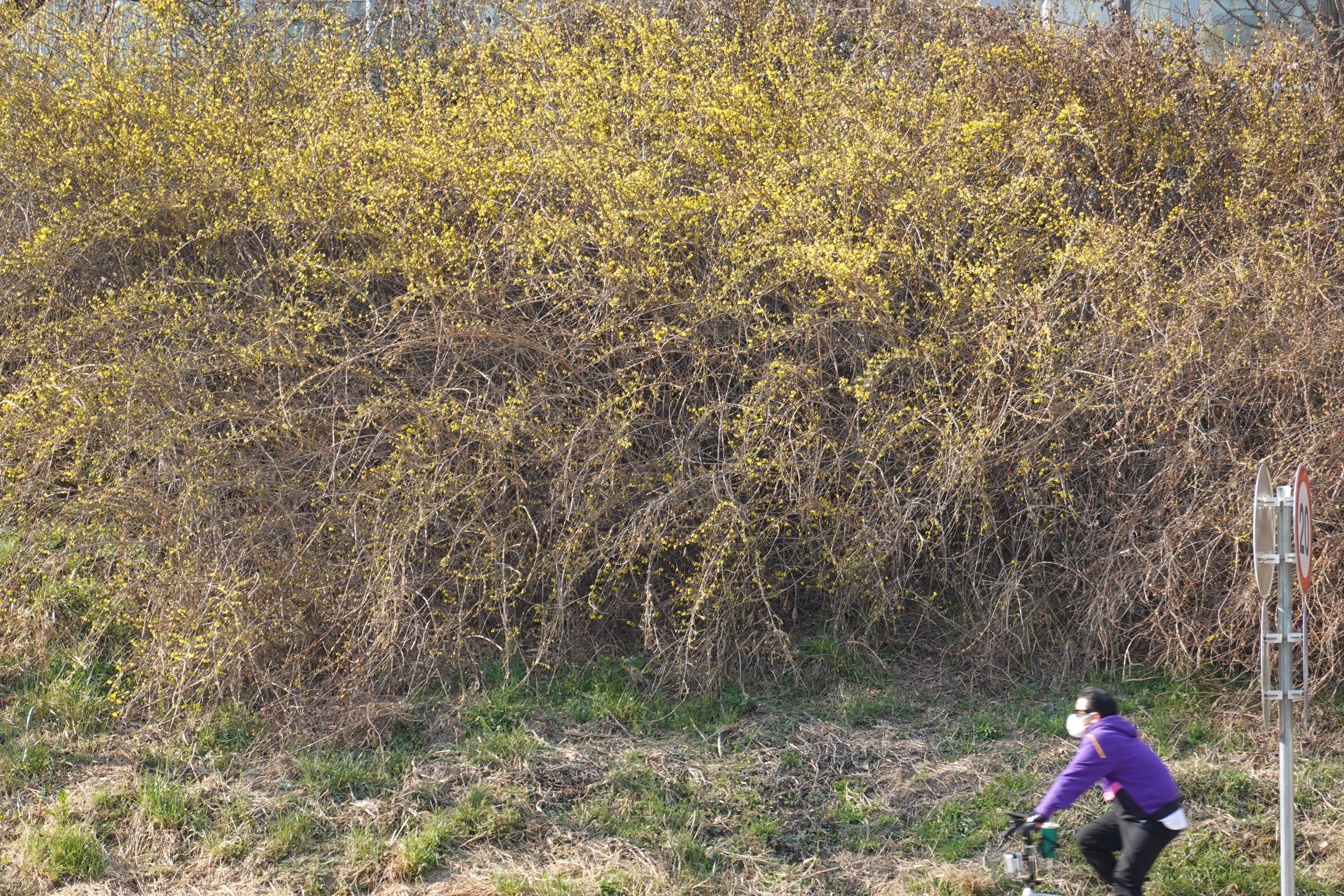 2023.03.19/ #도시기록 #개나리 #안양천/ 봄기운이 물씬 풍기는 오늘 안양천과 학의천변 둔치 곳곳에 안양시를 싱징하는 대표꽃(시화)인 노오란 '개나리'가 만개하기 시작했습니다. 노란 얼굴을 내미는 모습들을 보니 2023년 안양 개화 시기는 다음 주말(24-25일)이 아닐까 싶습니다.