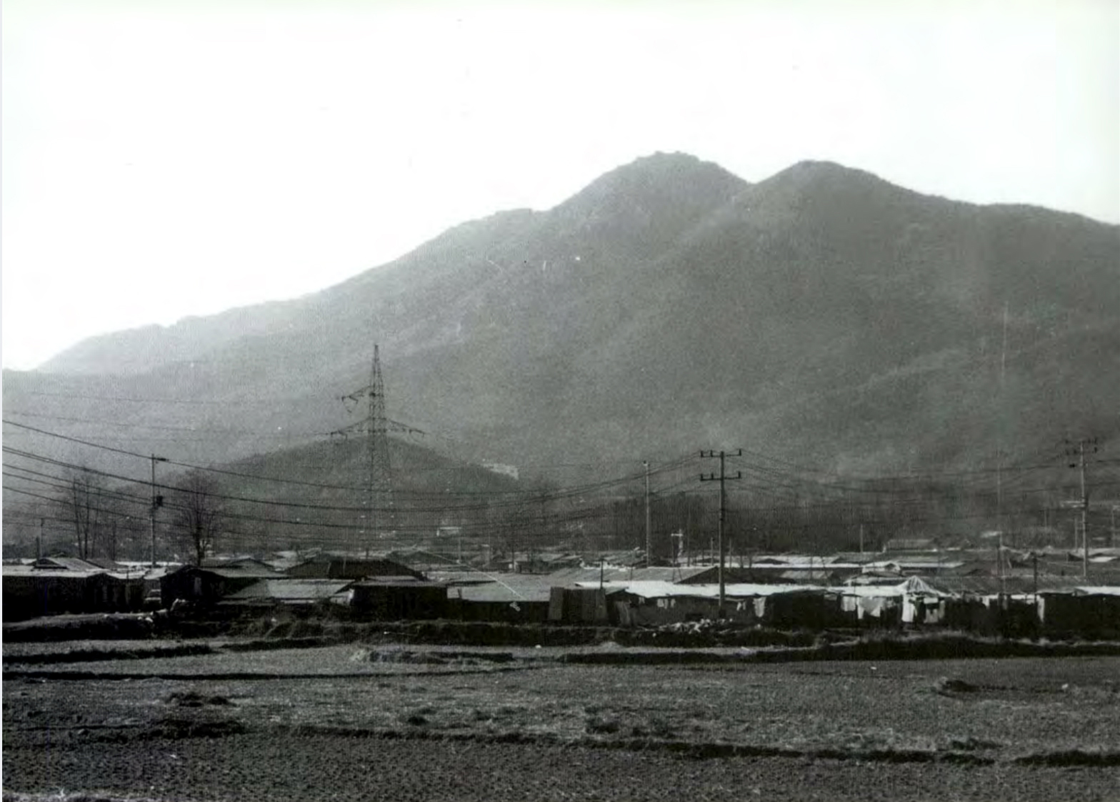 군포 산본신도시 개발 이전의 1970년대 궁내동과 광정동 일대의 엣 모습으로 보인다.