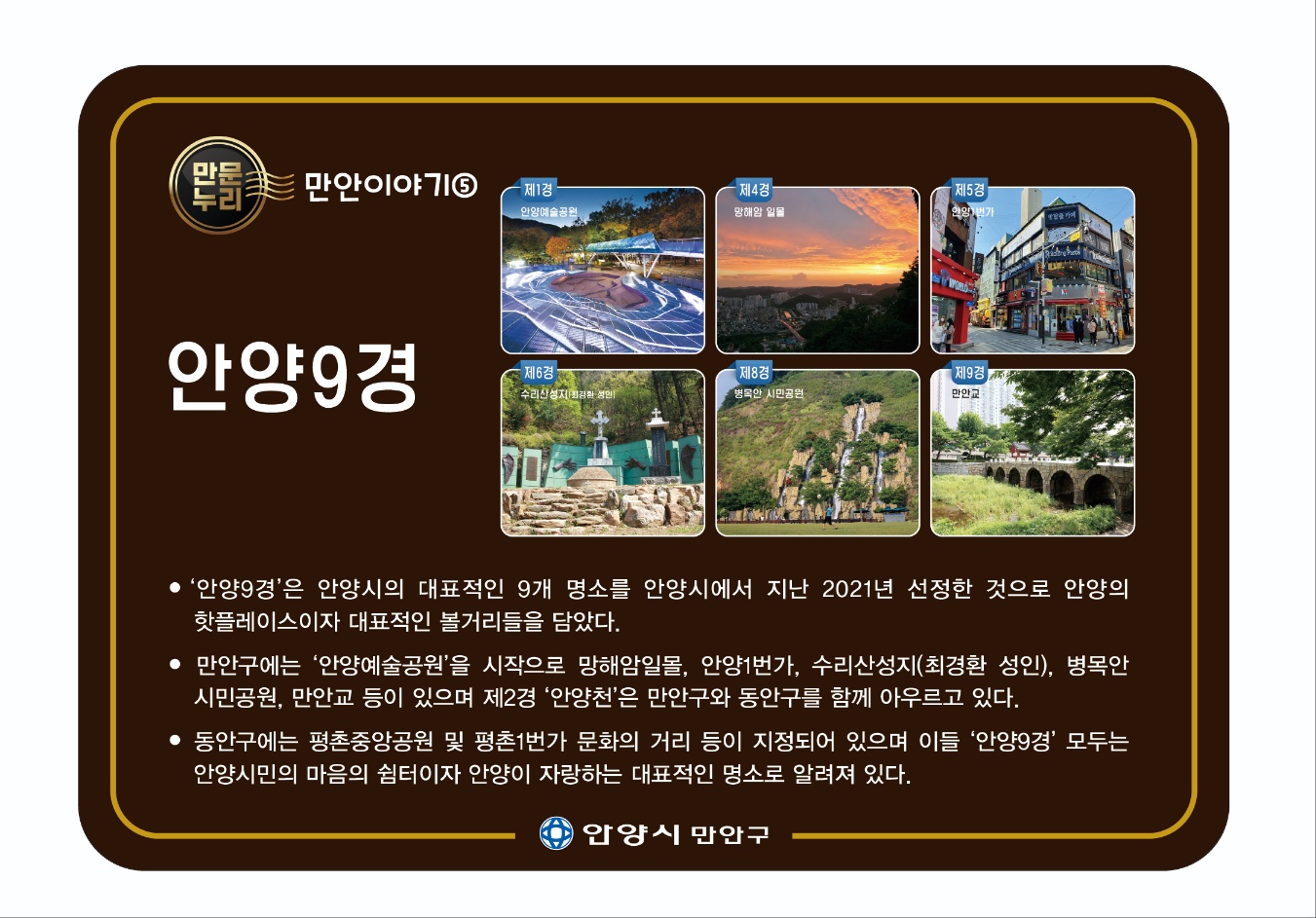 한편 만안구는 지난해 만문누리를 통해 민간협의체 구성, 만안이야기 표지판 설치, 오래된 만년가게 선정 등의 사업을 추진했으며, 올해에도 만안 문화유산 관광지도 편찬, 옛 지명 유래 및 마을 고유 이야기 동판 설치 등의 사업을 전개할 계획이다.