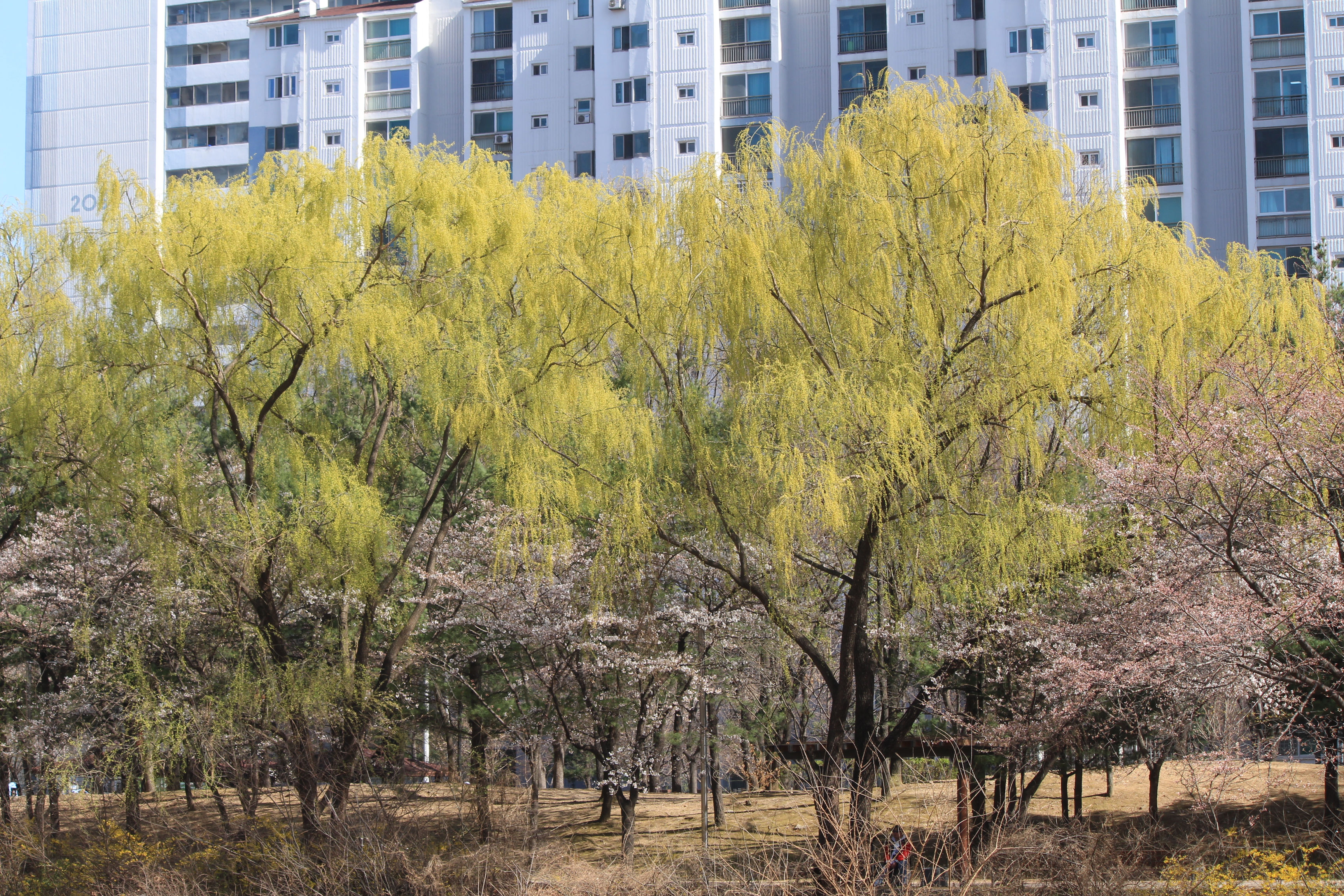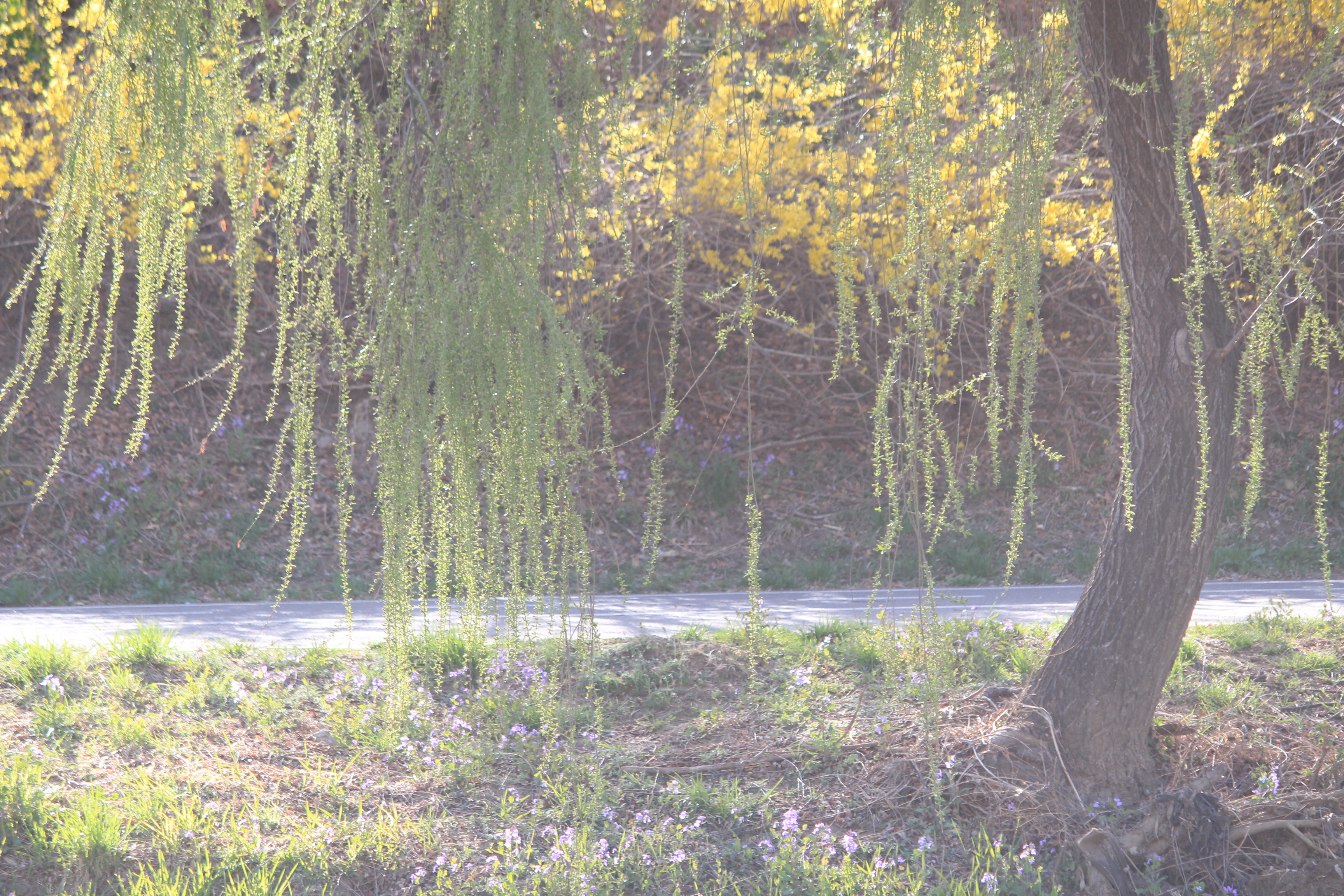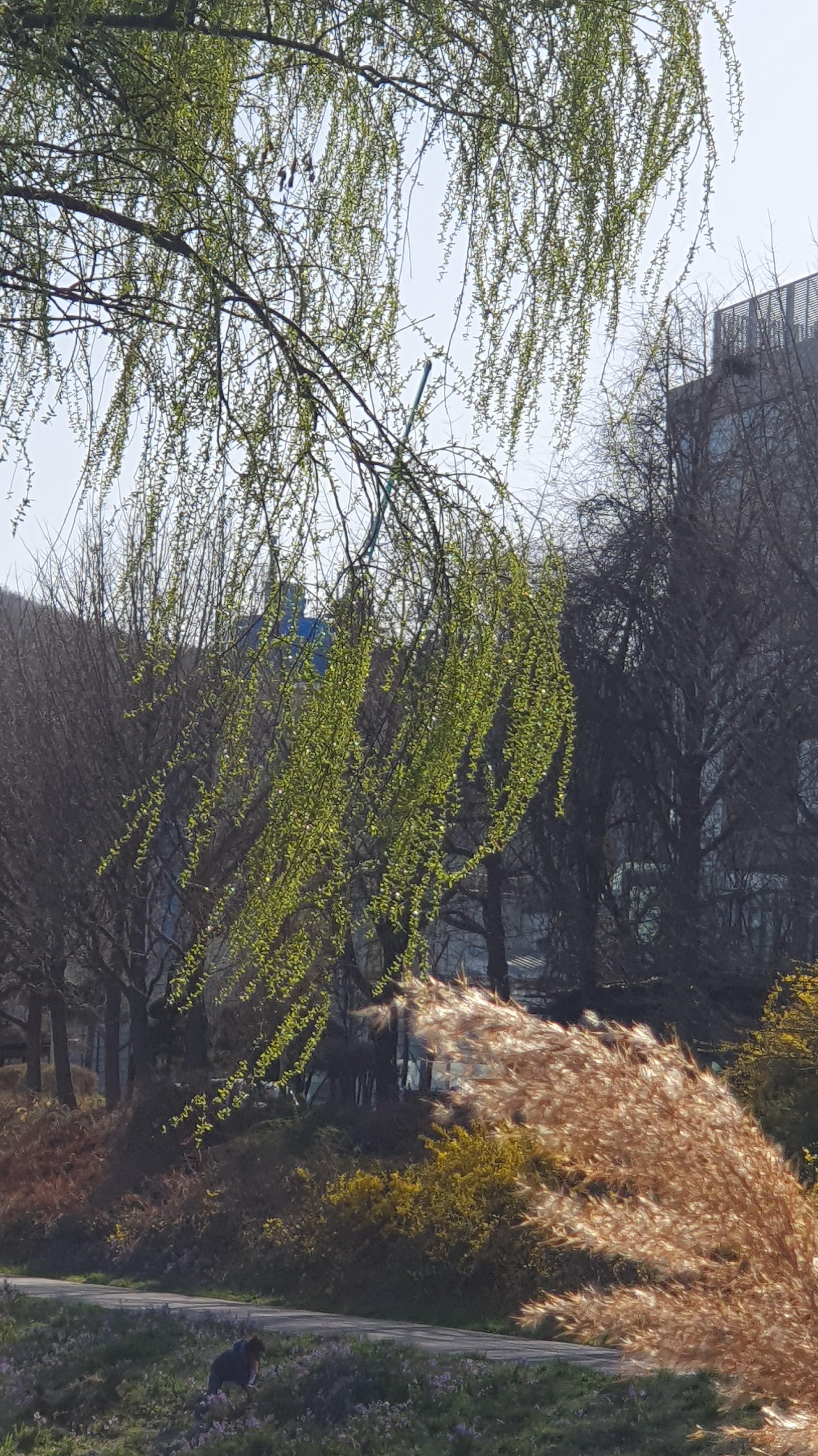 2023.03.26/ #도시기록 #연두빛 #봄봄봄 #학운공원 #안양천/ 봄의 빛깔중 가장 아름다운 연두빛 물결. 여름철 비가 많이 올 경우 부유물이 걸린다는 이유(치수대책)와 건설교통부 하천관리기준을 근거로 수년전부터 안양천과 학의천의 버드나무, 뽕나무 등 오랜기간 잘 자라온 나무들은 물론 천변의 잡초까지 대부분 베어 버려 동식물은 커녕 곤충도 보기 어려운 그야말로 황폐해진 하천이 되고 말았다. 이젠 천변에서 연두빛 나무의 아름다움도 찾아보기 어려운 봄이 되고 말았다.