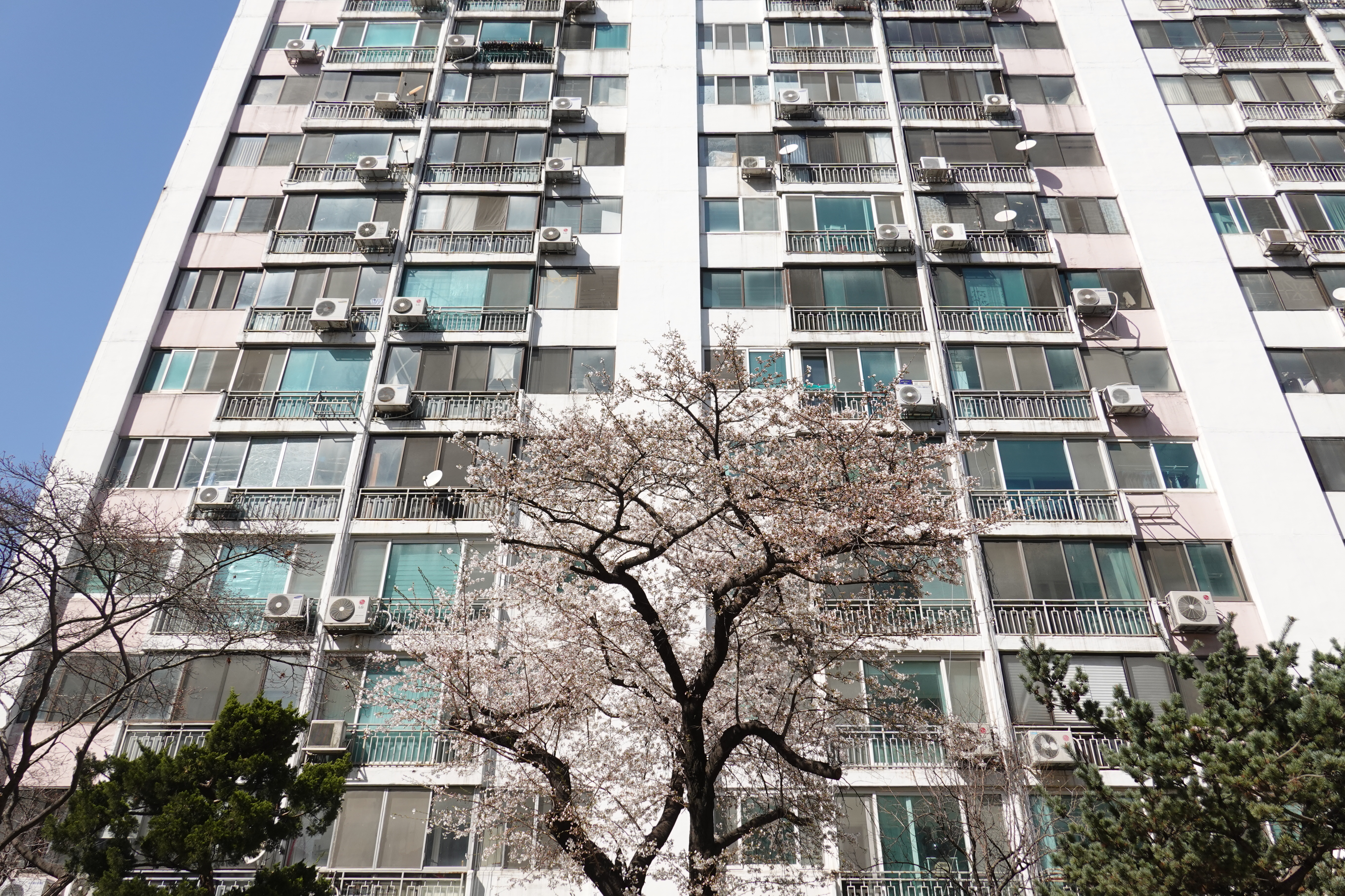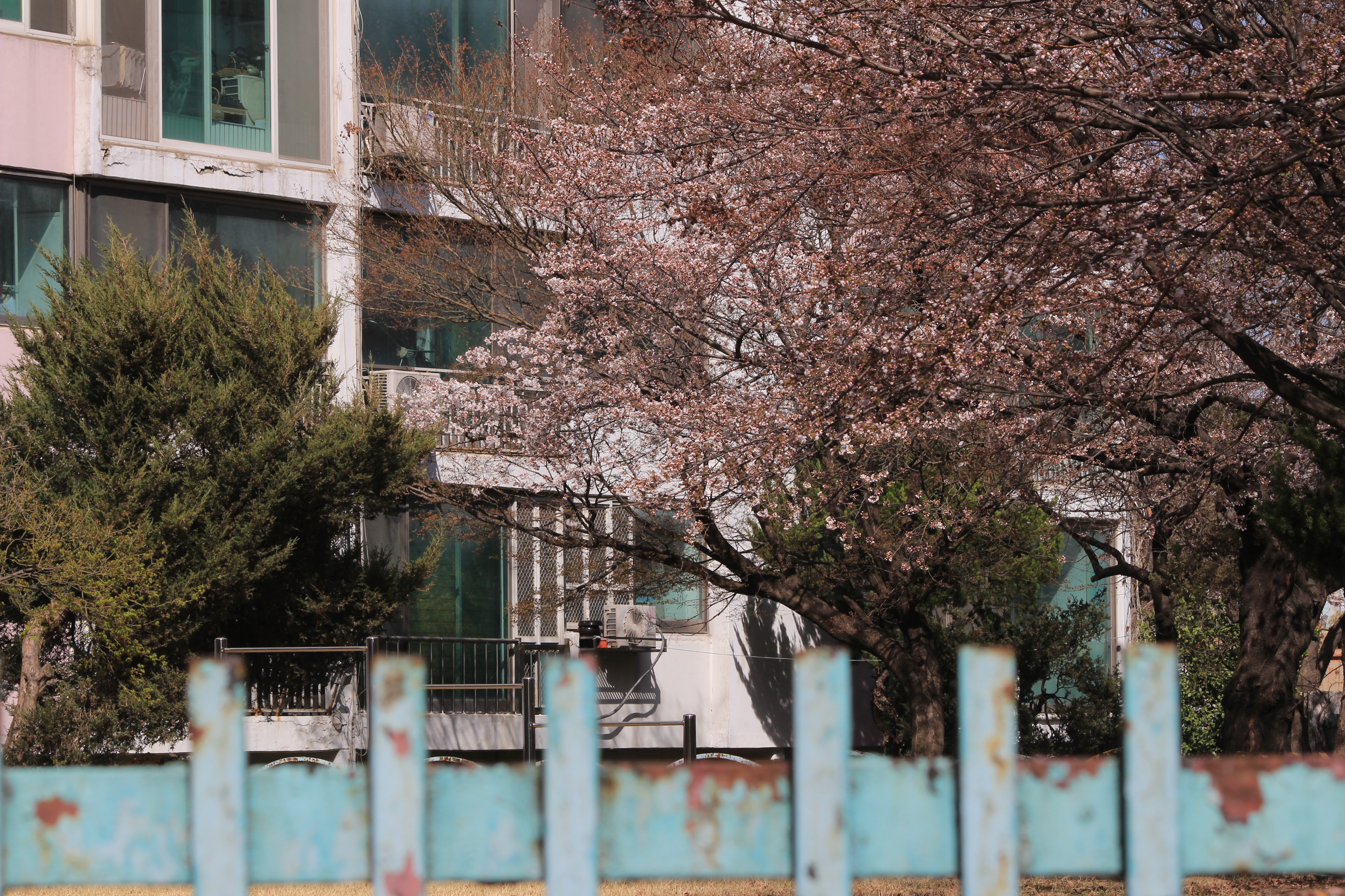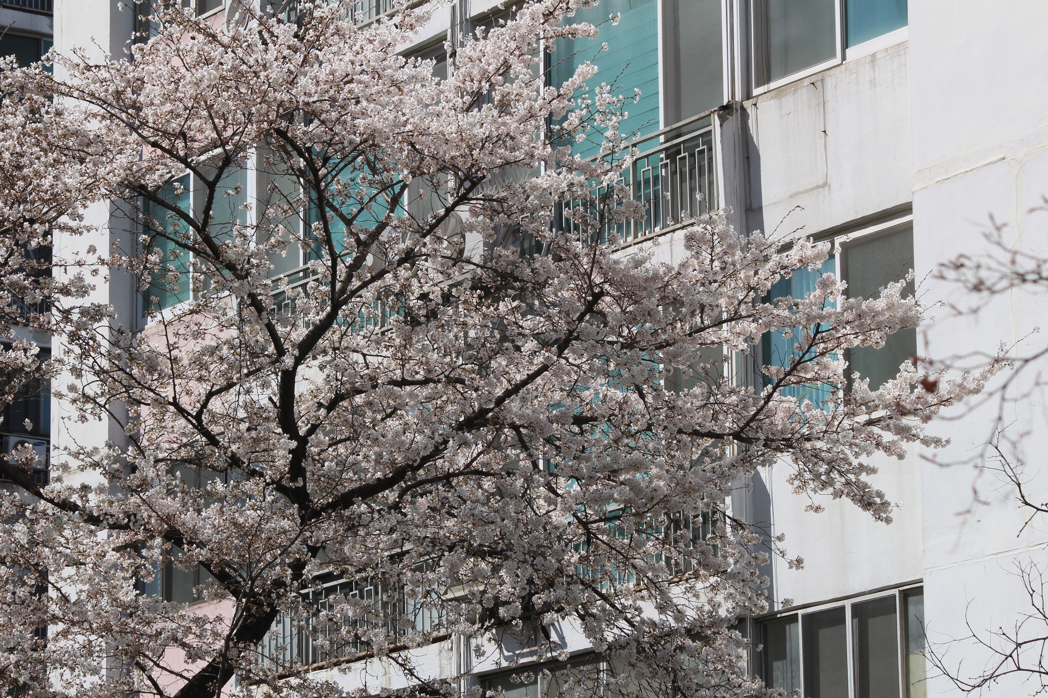 2023.03.26/ #도시기록 #미룡아파트 #벚꽃/ 안양 비산동 미룡아파트에 벚꽃이 피었다. 안양에서 벚꽂이 아름다운곳중 한곳으로 꽃이 만개하면 단지가 온통 하얀 꽃으로 덮여 이웃 주민들의 부러움을 사기도 했으며 가까운 지인들과 이웃 주민들을 초대해 동네 잔치를 열기도했다. 그런데 재개발을 앞두고 2년여전 단지내 나무들의 가지를 강전전으로 베어버리는 횡포가 있은후 아름답던 나무들의 몰꼴이 처참한 형태로 바뀌고 말았다.