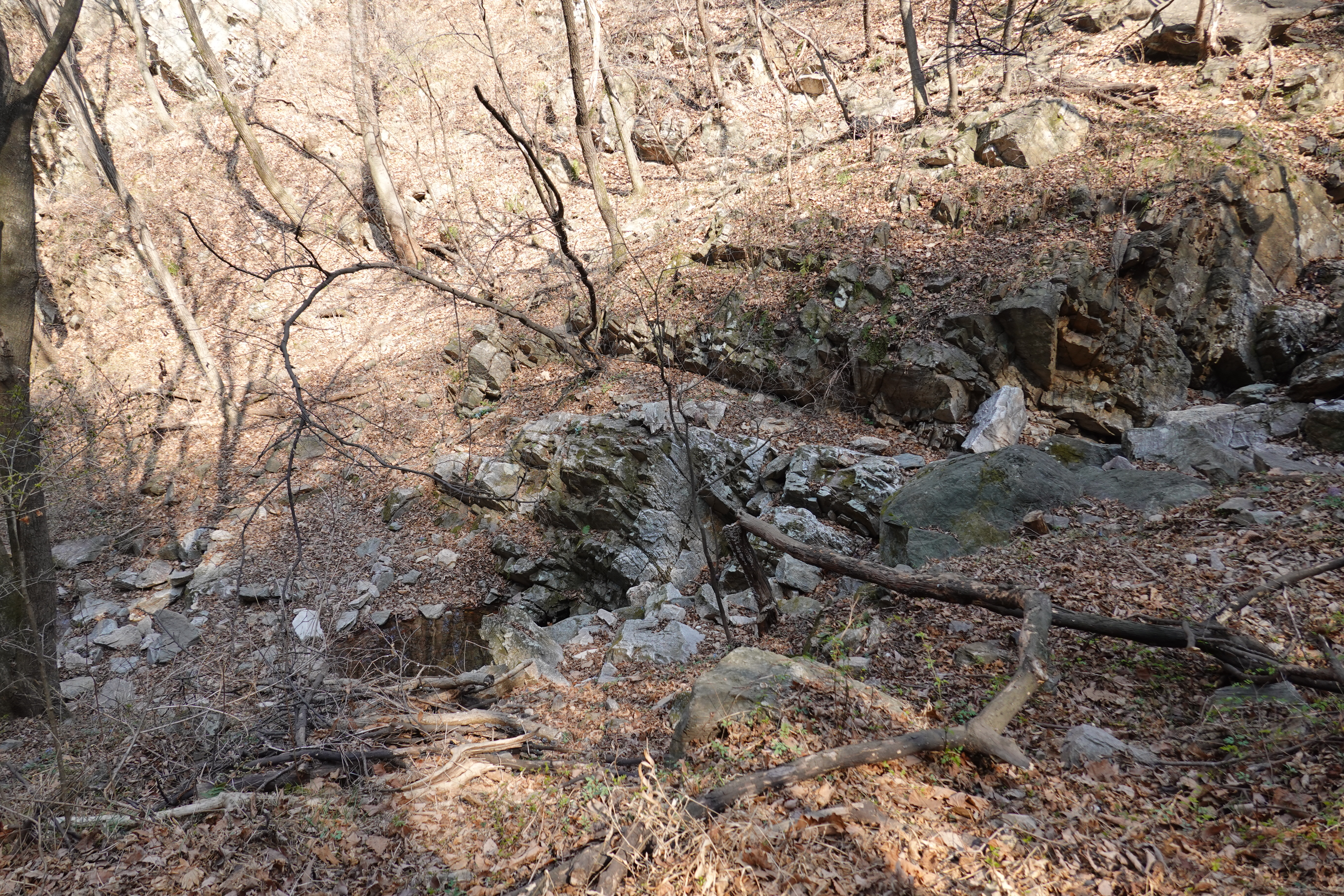 2023.03.27/ #도시기록 #수리산 #돌탑/ 안양 담배촌 끝자락 수리산산림욕장에서 태을봉 올라가는 길에 있는 돌탑. 누가 만들었을까. 돌탑 위쪽으로 또 만들려는듯 서너 무더기의 돌들이 쌓여져있다.