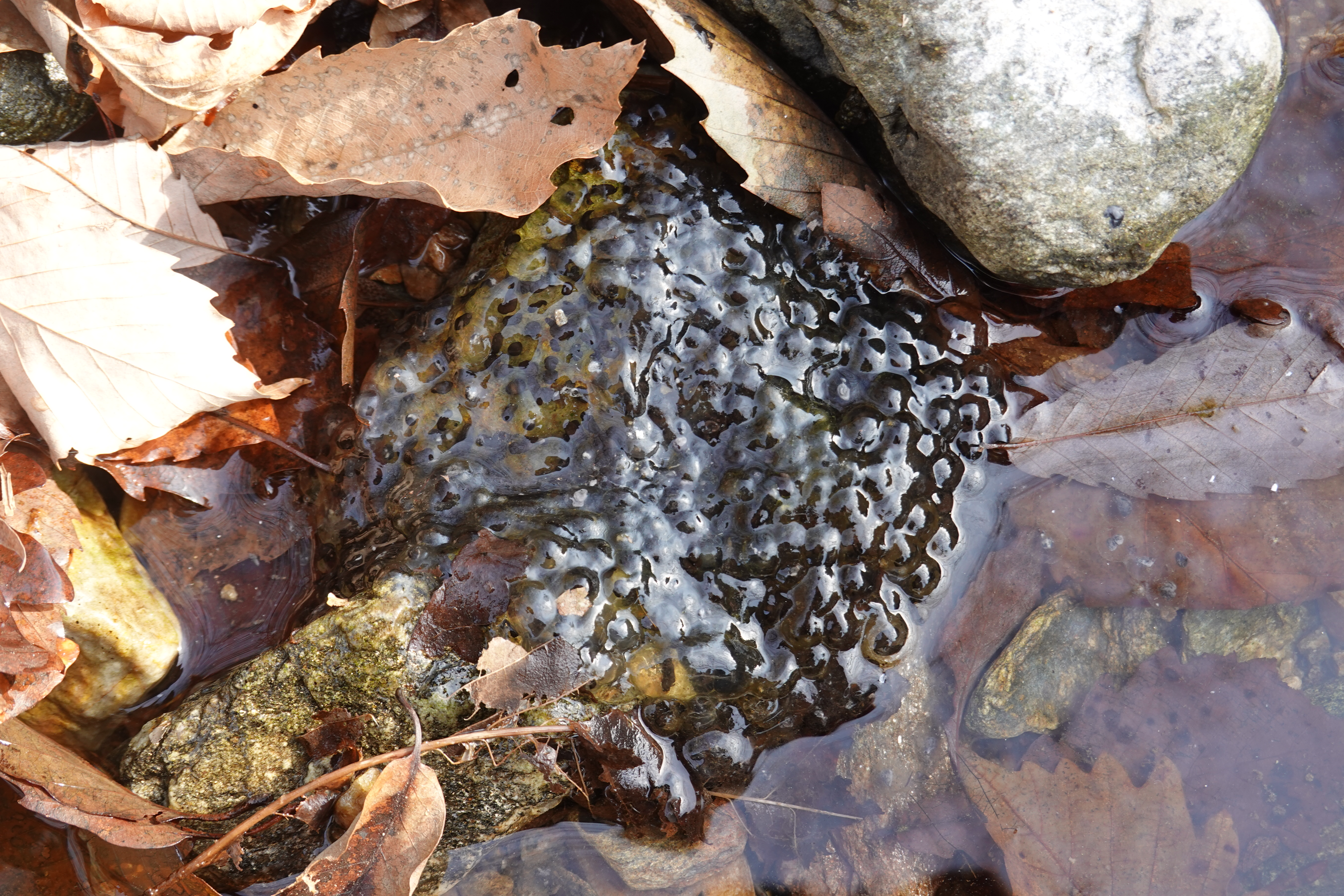 2023.03.27/ #도시기록 #생태계 #도룡농 #산개구리#서식지 #수리산 #담배촌 #수암천/ 안양 수리산 담배촌 수암천계곡에 있는 1급수 지표종 도롱뇽과 산개구리 서식지(산란지)를 가다. 작년(2022년)에는 가뭄으로 계곡에 물이 말라 도롱뇽 구조 신호를 접하고 갔을때  말라 죽어가는것을 보아야했는데 금년에는 다소나마 물이 고여있는 곳이 있어 도롱뇽과  산개구리들이 알을 잔뜩 낳았다. 이곳 생태계 보호에 앞장서 온 섹스포니스트 음악인 노용문 선생은 4월 3-5일쯤 부화를 할것 같다며 더 많은 도롱뇽이 살아날수 있도록  계곡에 물이 흘러야 한다고 말했다.