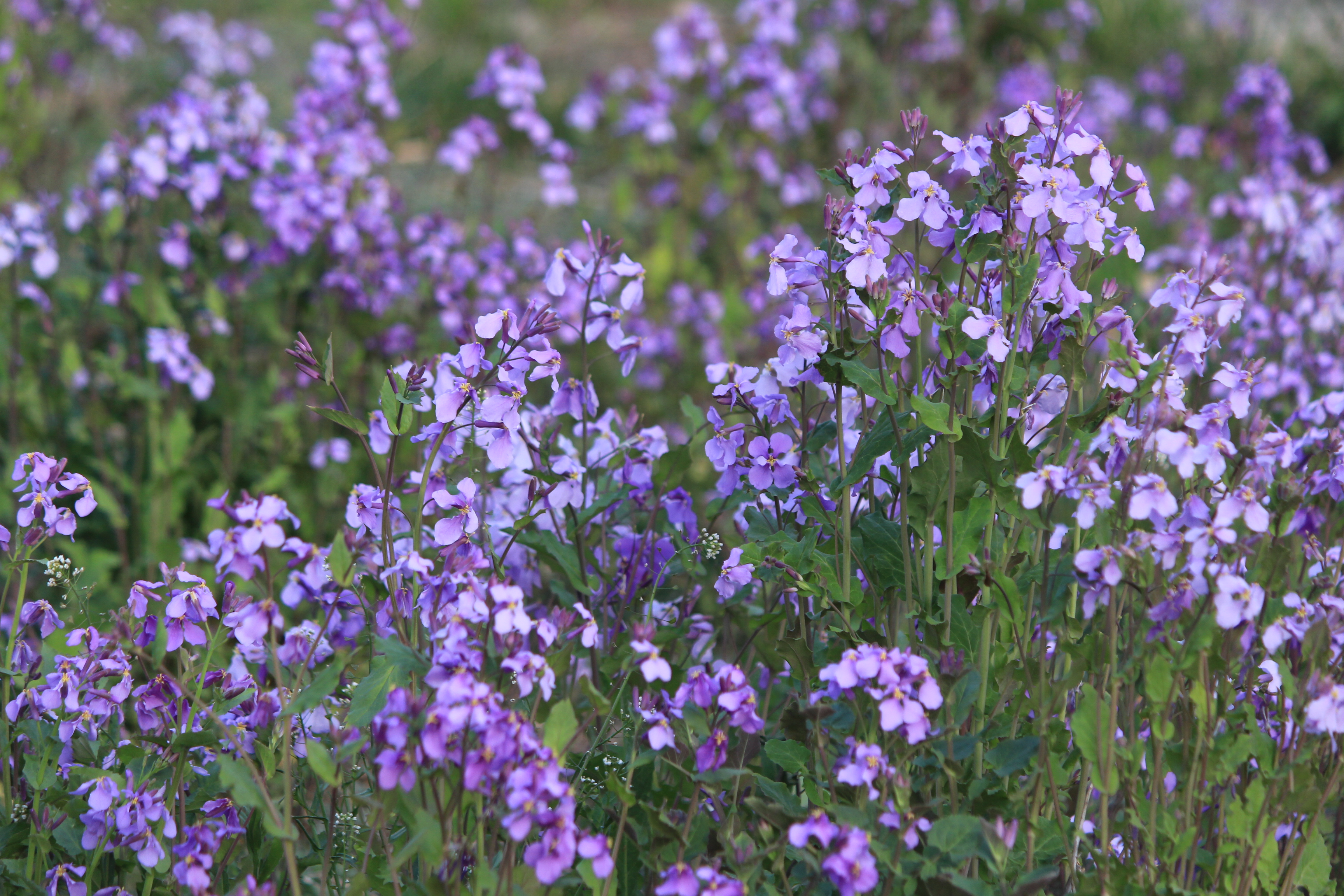 이 꽃은 중국이 원산지인 귀화식물로 양귀비목 십자화과로 소래풀, 제갈채(諸葛菜), 보라유채, 제비냉이 등 이명(異名)도 많지요.