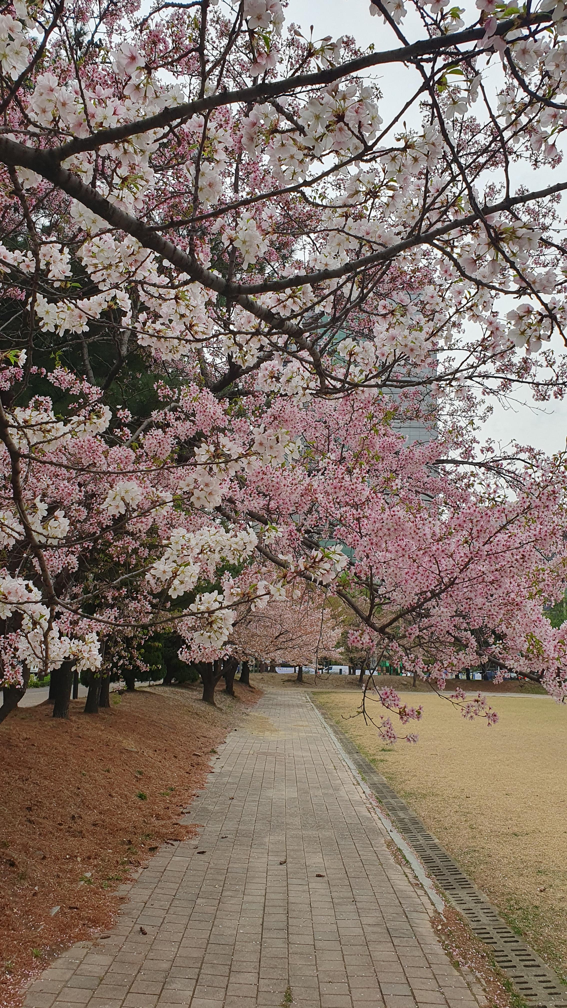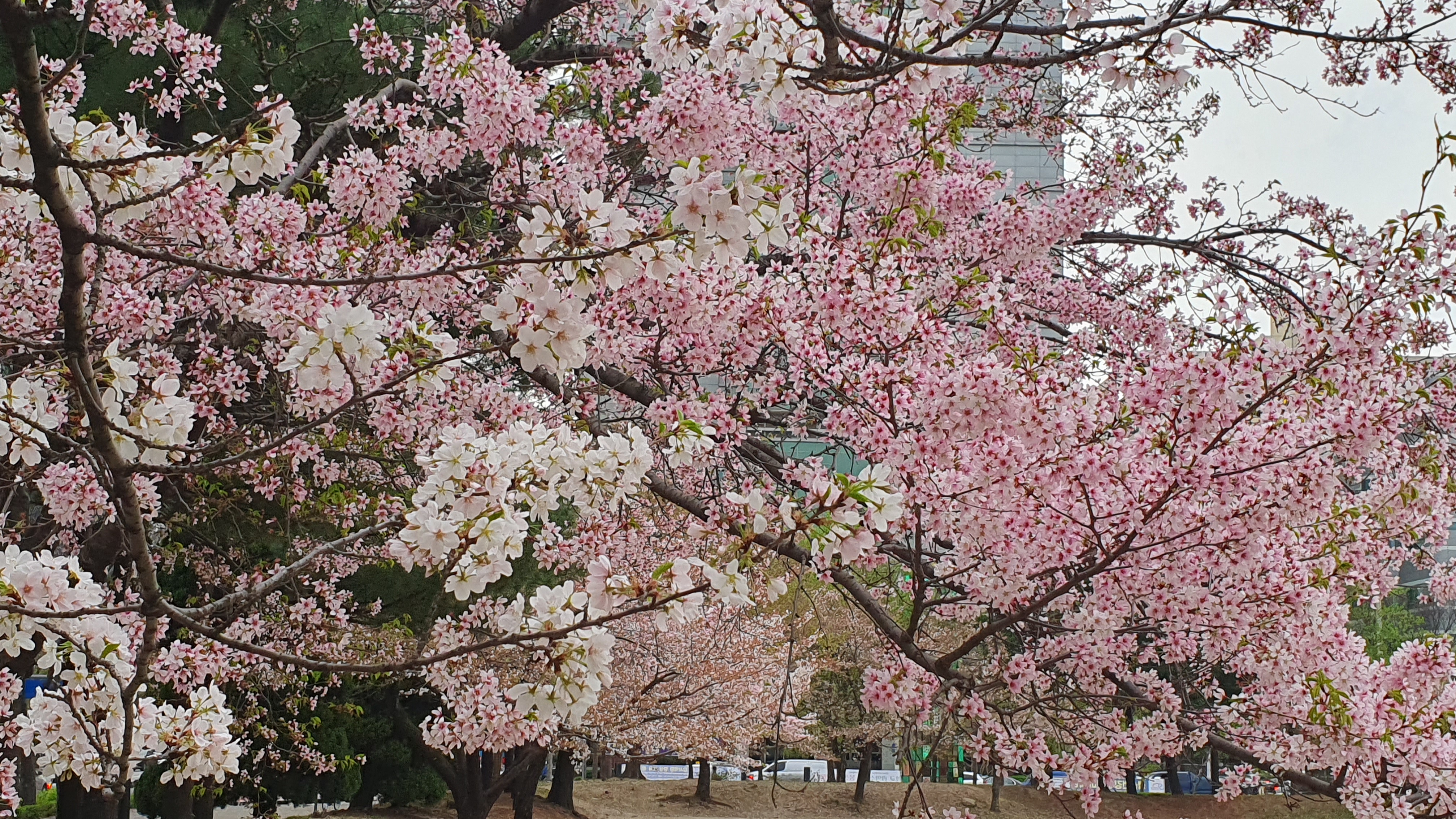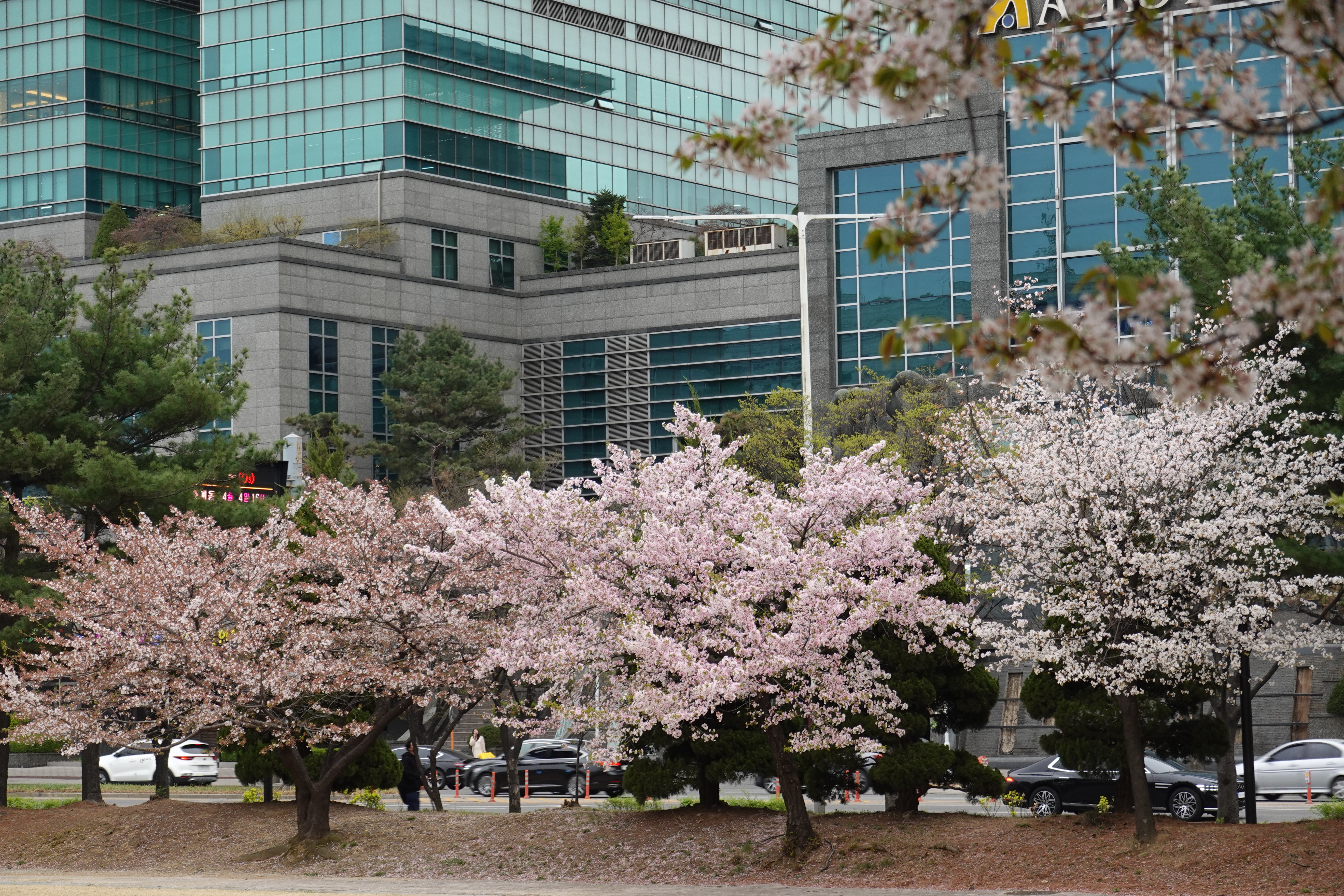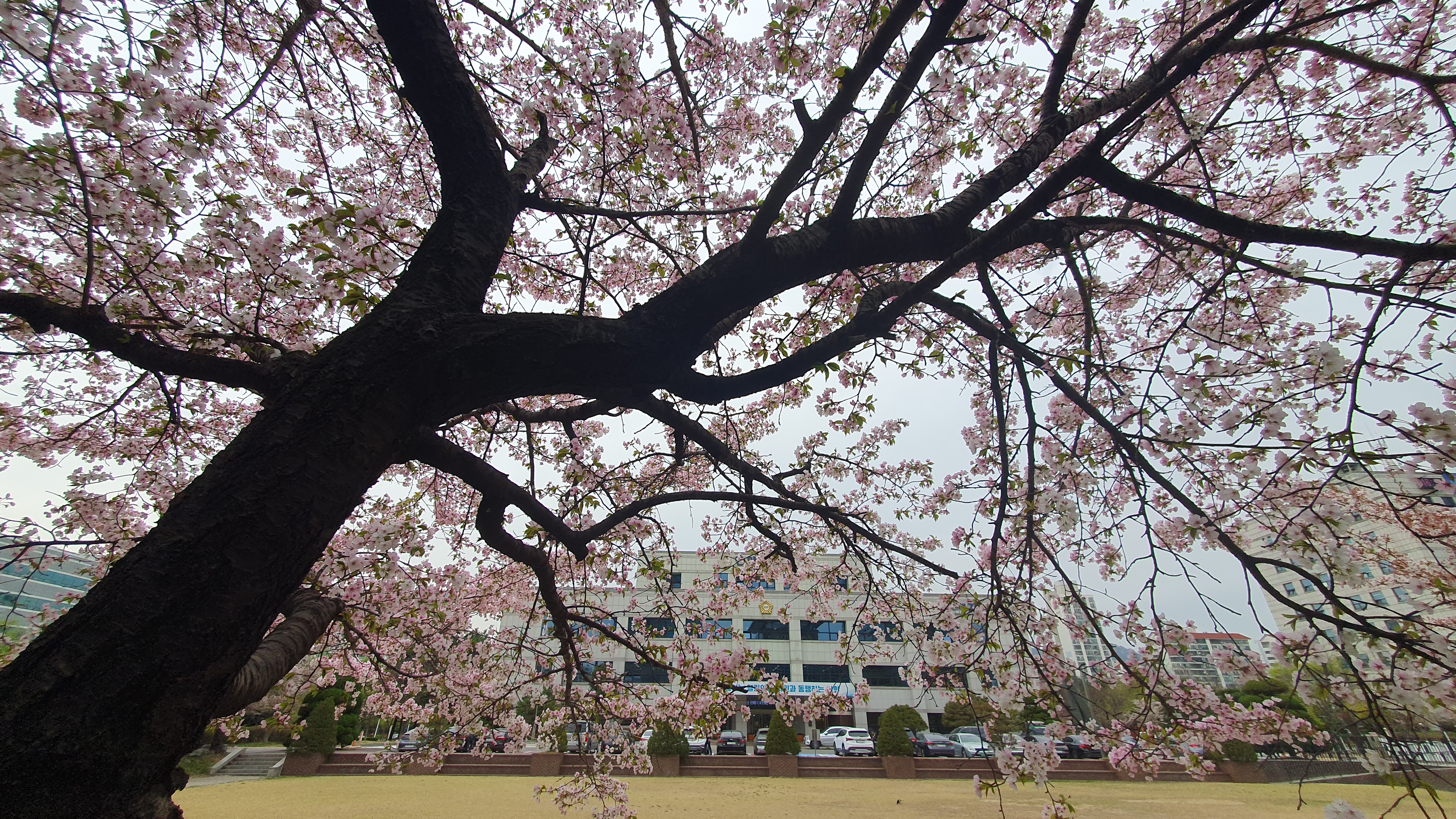2023.04.04/ #도시기록 #봄봄봄 #벚꽃맛집/ 안양시의회 잔디마당 담장뚝에 심어진 벚꽃나무들은 아름답다. 이곳의 벚꽃 색상은 분홍빛으로 아름답다. 또한 만개 시긴도 비교적 긴편이라 꽃구경하기 좋다.