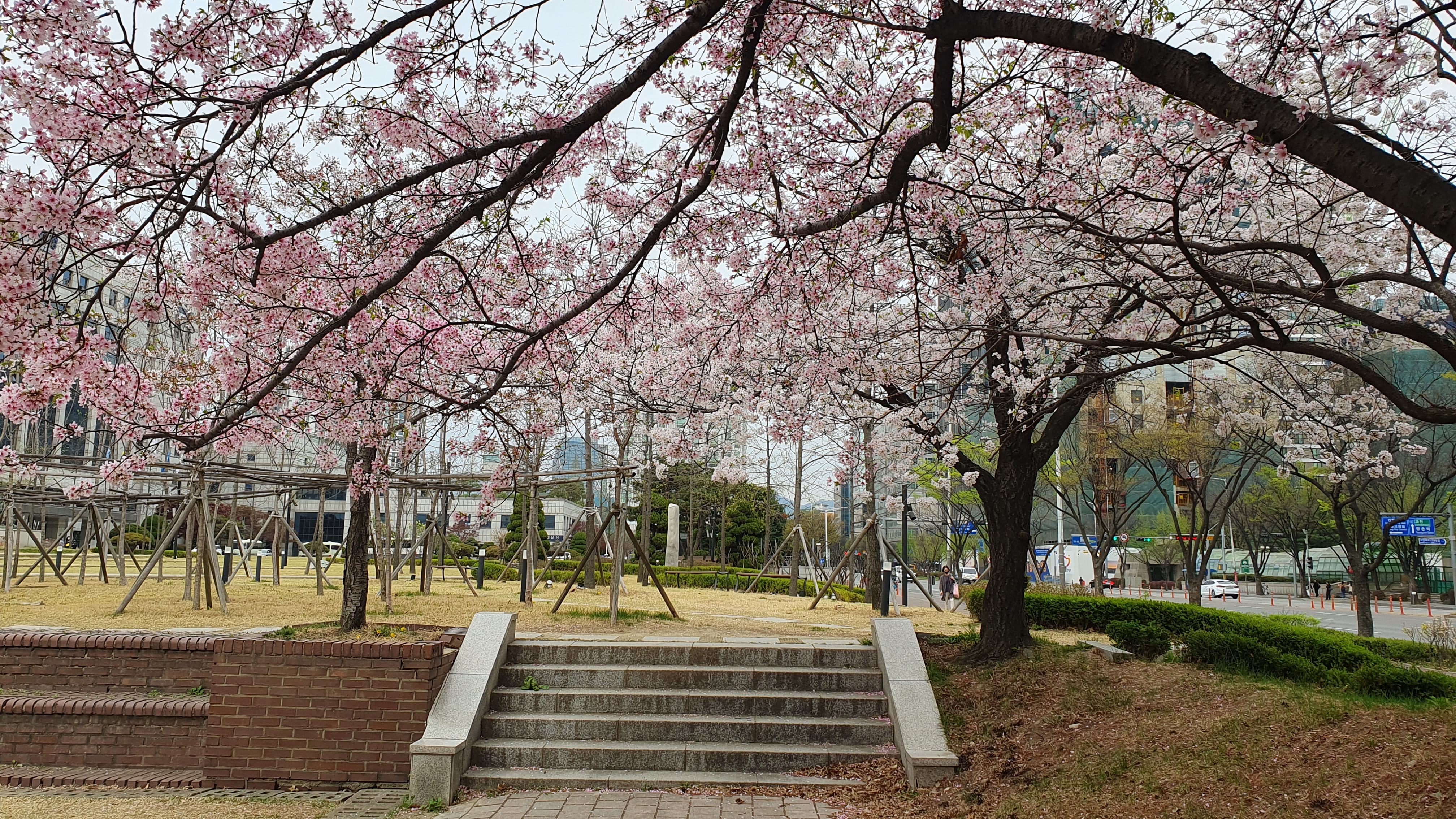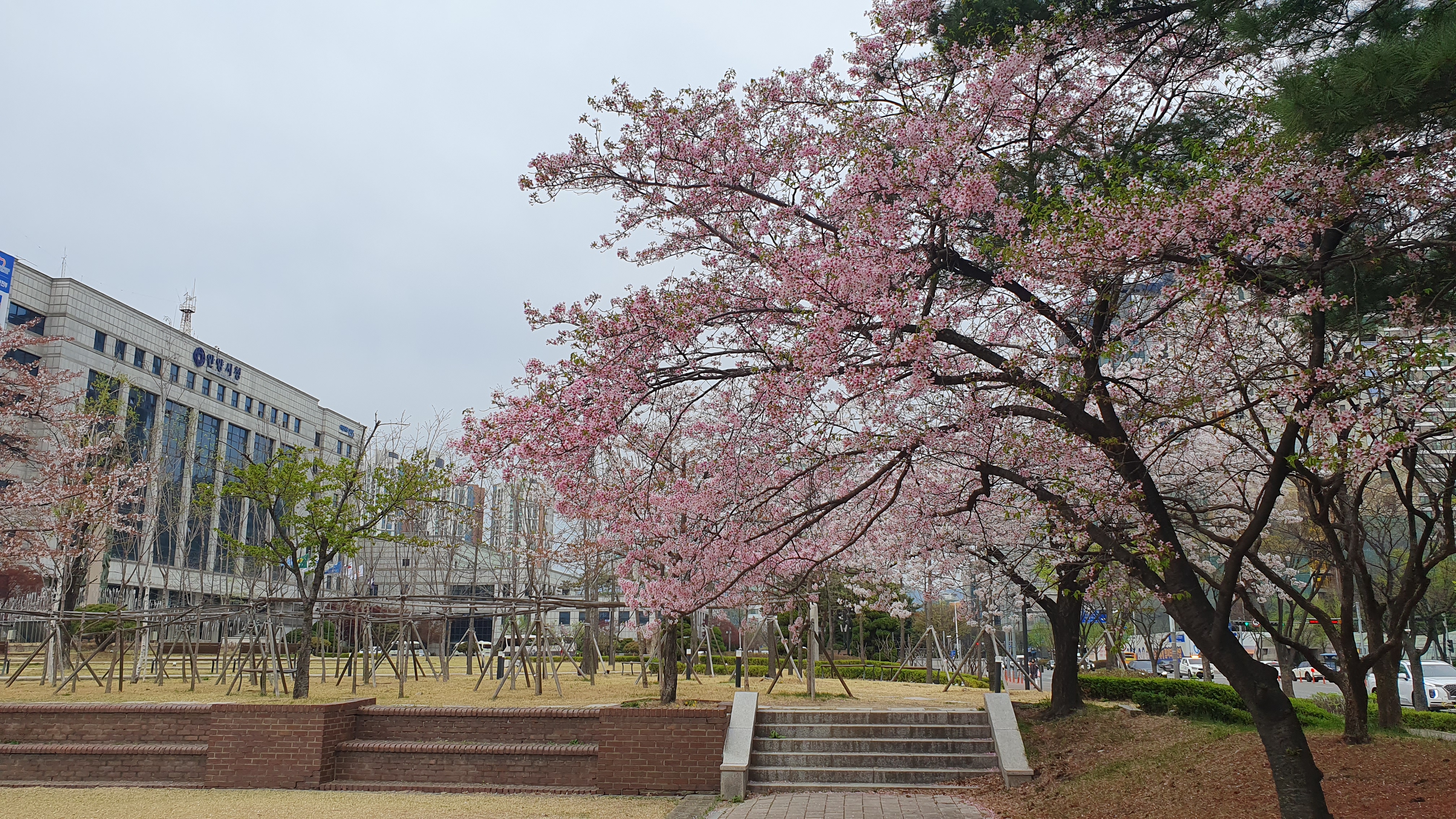 2023.04.04/ #도시기록 #봄봄봄 #벚꽃맛집/ 안양시의회 잔디마당 담장뚝에 심어진 벚꽃나무들은 아름답다. 이곳의 벚꽃 색상은 분홍빛으로 아름답다. 또한 만개 시긴도 비교적 긴편이라 꽃구경하기 좋다.