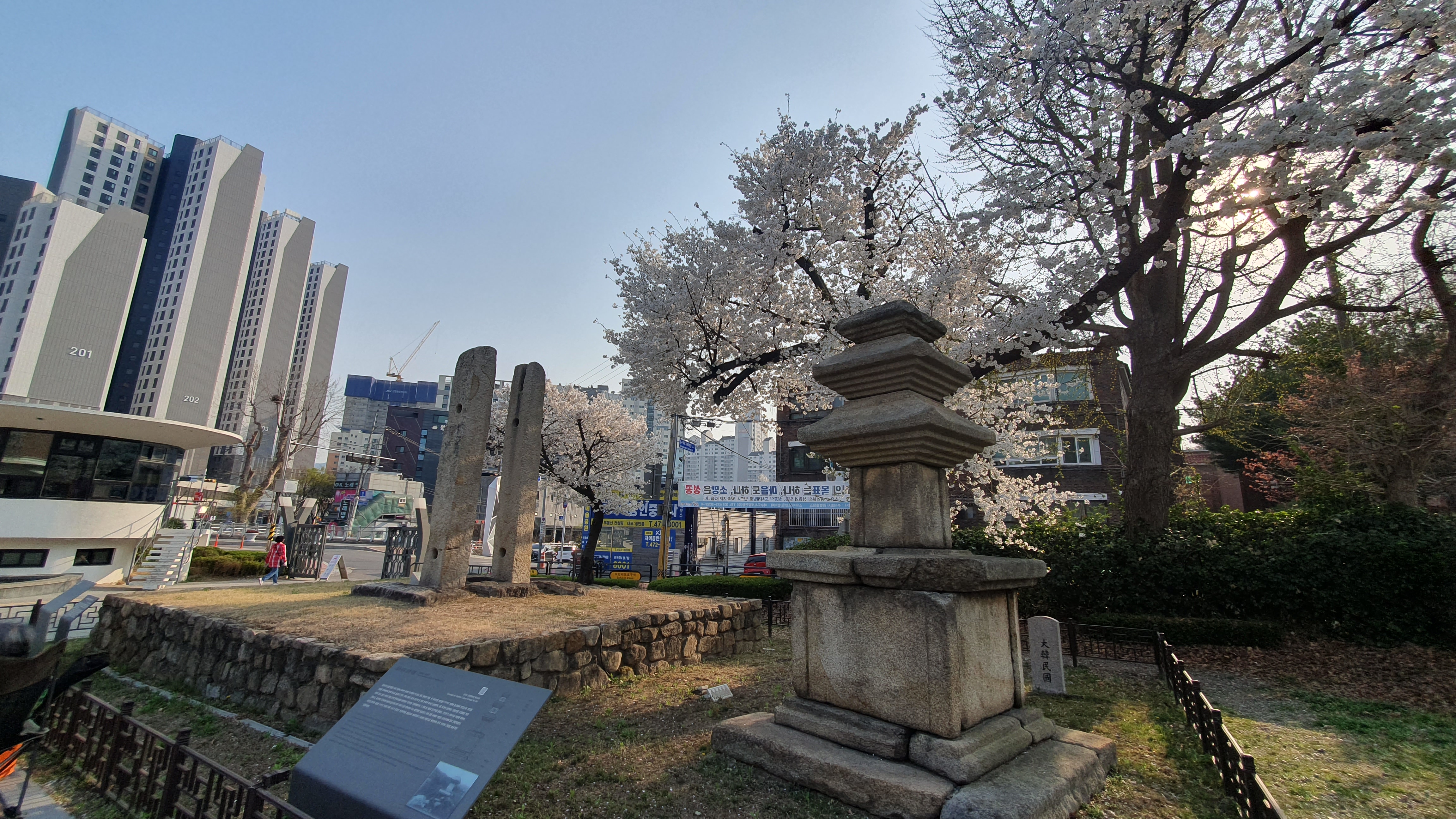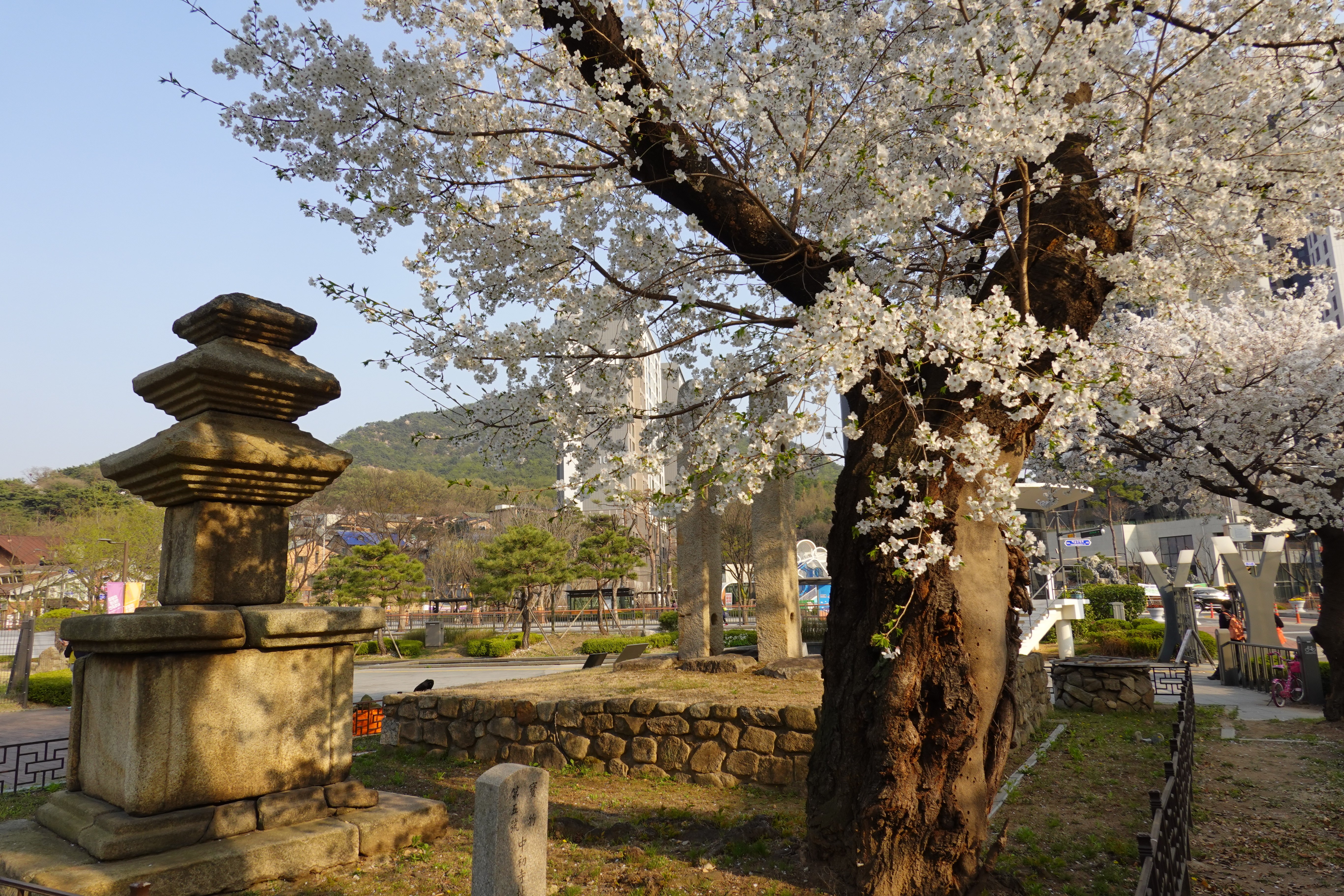 2023.04.03/ #도시기록 #벚나무 #안양예술공원 #안양박물관/ 중초사지(안양사지) 입구 보물 제4호 중초사 당간지주 옆이 자리한 벚나무. 볼때마다 마음 아픈 나무이다. 수령이 아주 오래된듯 보이는 이 벚나무는 해마다 봄이오면 은빛의 꽃들이 거대한 군락처럼 보일만큼 화려하게 만개해 안양시 관내에서 가장 아름다웠던 벚꽃나무로 동네 주민은 물론 시민들의 사랑을 받으며 사진작가들이 찾아올 정도로 그야말로 명물이었다. 하지만 6~7년쯤 전부터 시름시름 앓아 대부분의 가지들을 잘라내고 링거 수액까지 맞고 상처가 큰 줄기 일부는 시멘트로 메꾸어 봉합하는 등 의 대수슬도 받았던 나무이기에 가지에 달린 하얀꽃들을 보면 안쓰럽고 살아있는것 만으로도 감사하다.