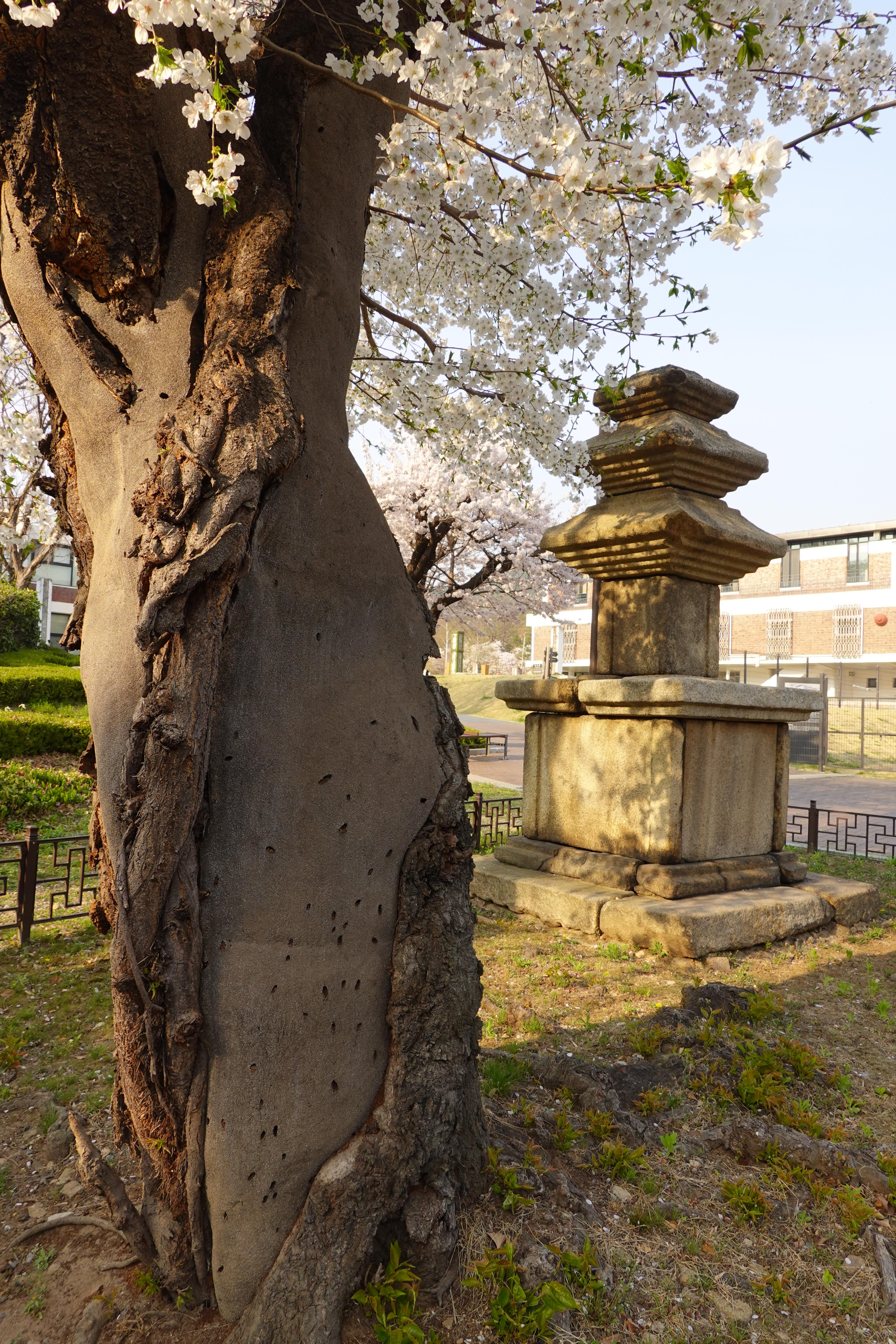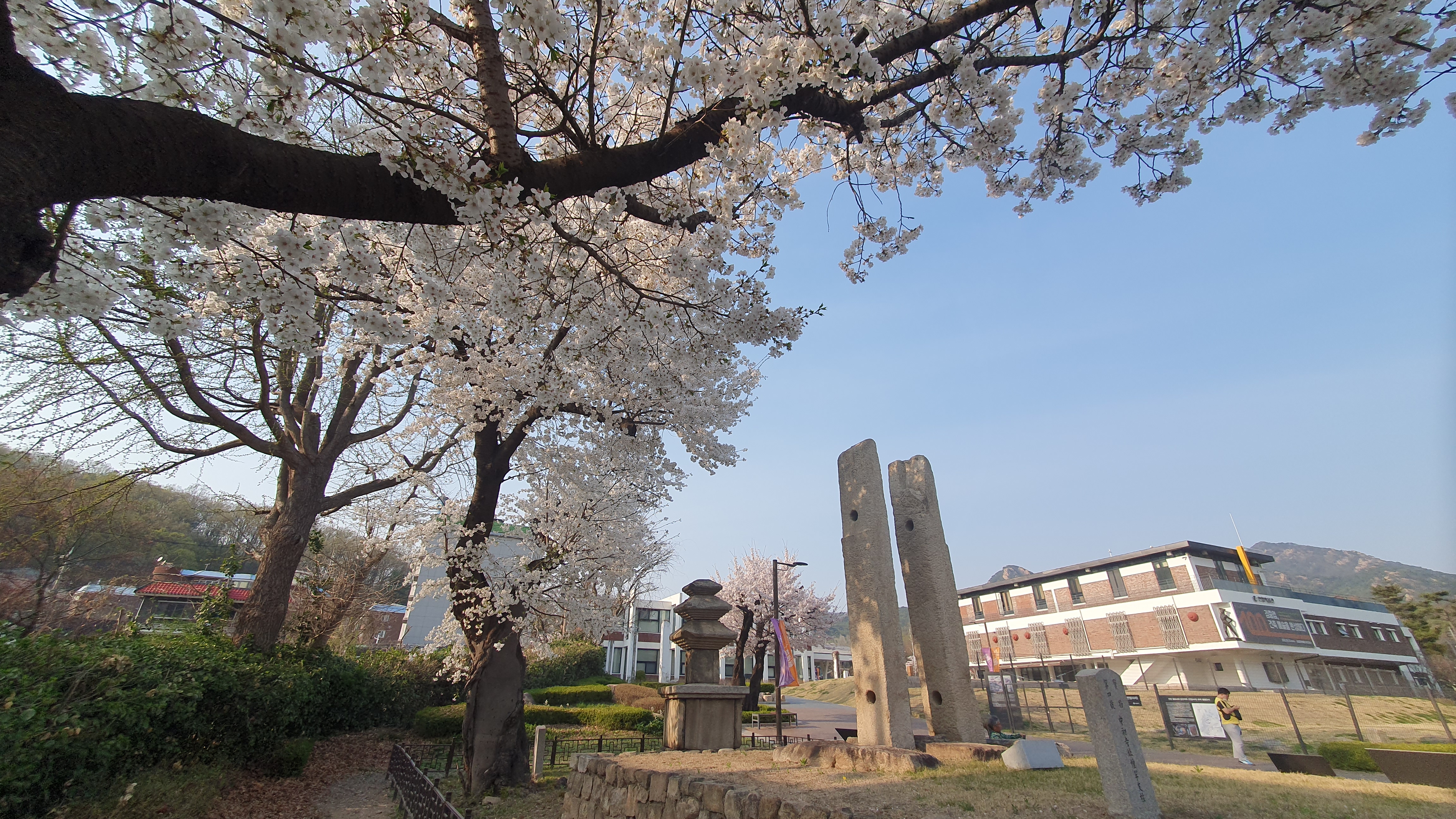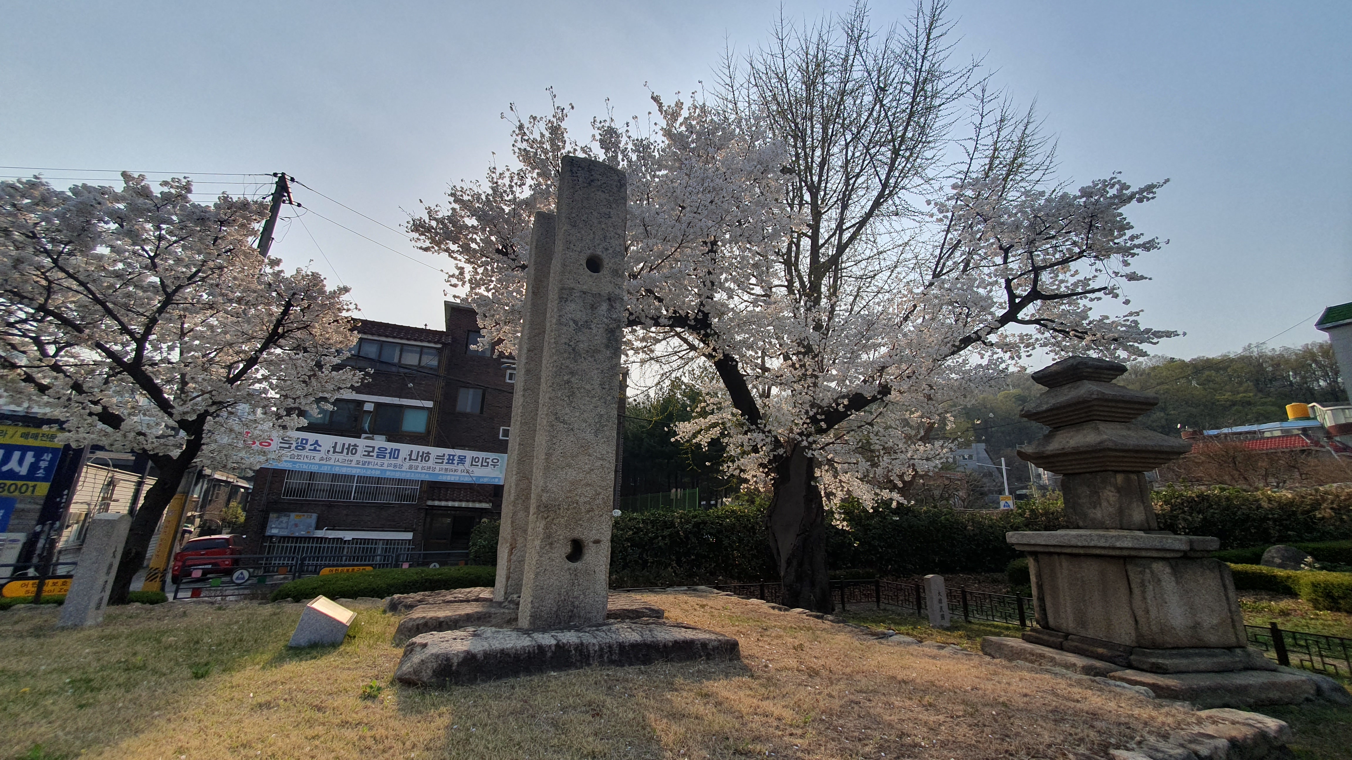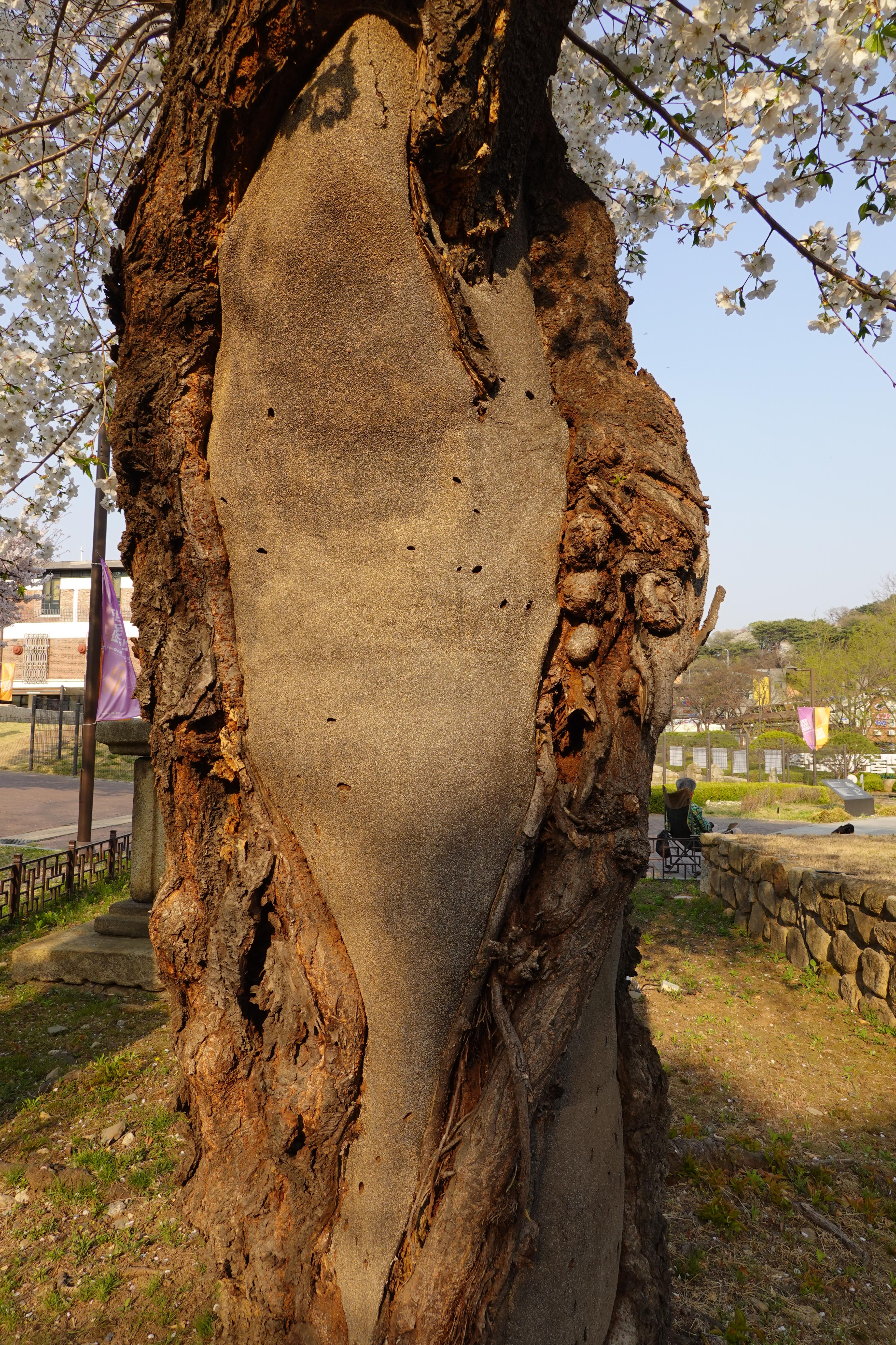 2023.04.03/ #도시기록 #벚나무 #안양예술공원 #안양박물관/ 중초사지(안양사지) 입구 보물 제4호 중초사 당간지주 옆이 자리한 벚나무. 볼때마다 마음 아픈 나무이다. 수령이 아주 오래된듯 보이는 이 벚나무는 해마다 봄이오면 은빛의 꽃들이 거대한 군락처럼 보일만큼 화려하게 만개해 안양시 관내에서 가장 아름다웠던 벚꽃나무로 동네 주민은 물론 시민들의 사랑을 받으며 사진작가들이 찾아올 정도로 그야말로 명물이었다. 하지만 6~7년쯤 전부터 시름시름 앓아 대부분의 가지들을 잘라내고 링거 수액까지 맞고 상처가 큰 줄기 일부는 시멘트로 메꾸어 봉합하는 등 의 대수슬도 받았던 나무이기에 가지에 달린 하얀꽃들을 보면 안쓰럽고 살아있는것 만으로도 감사하다.