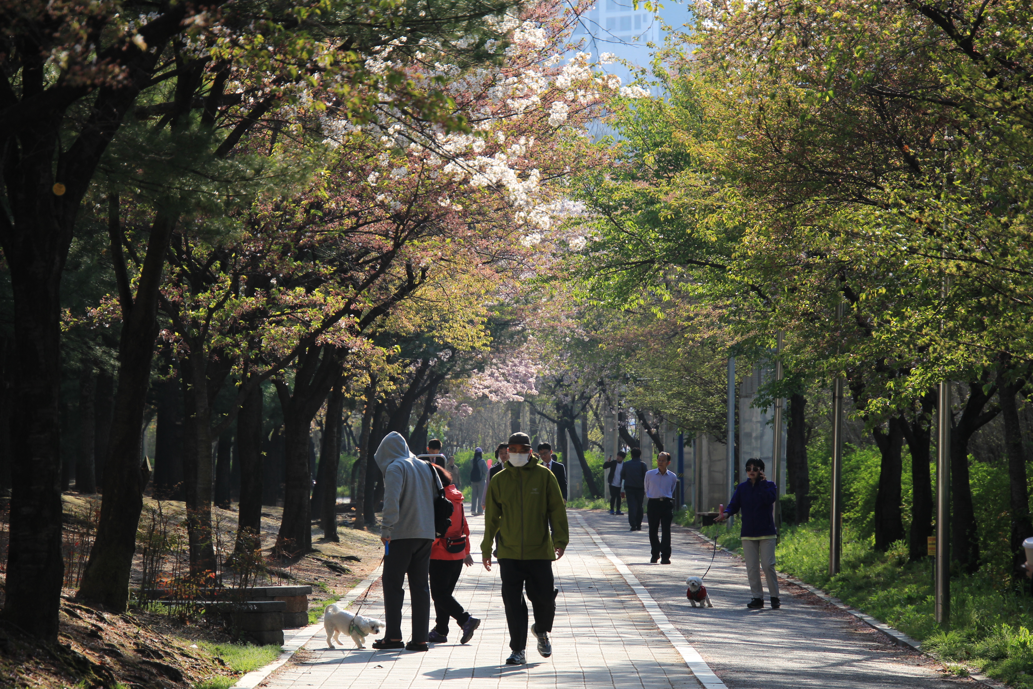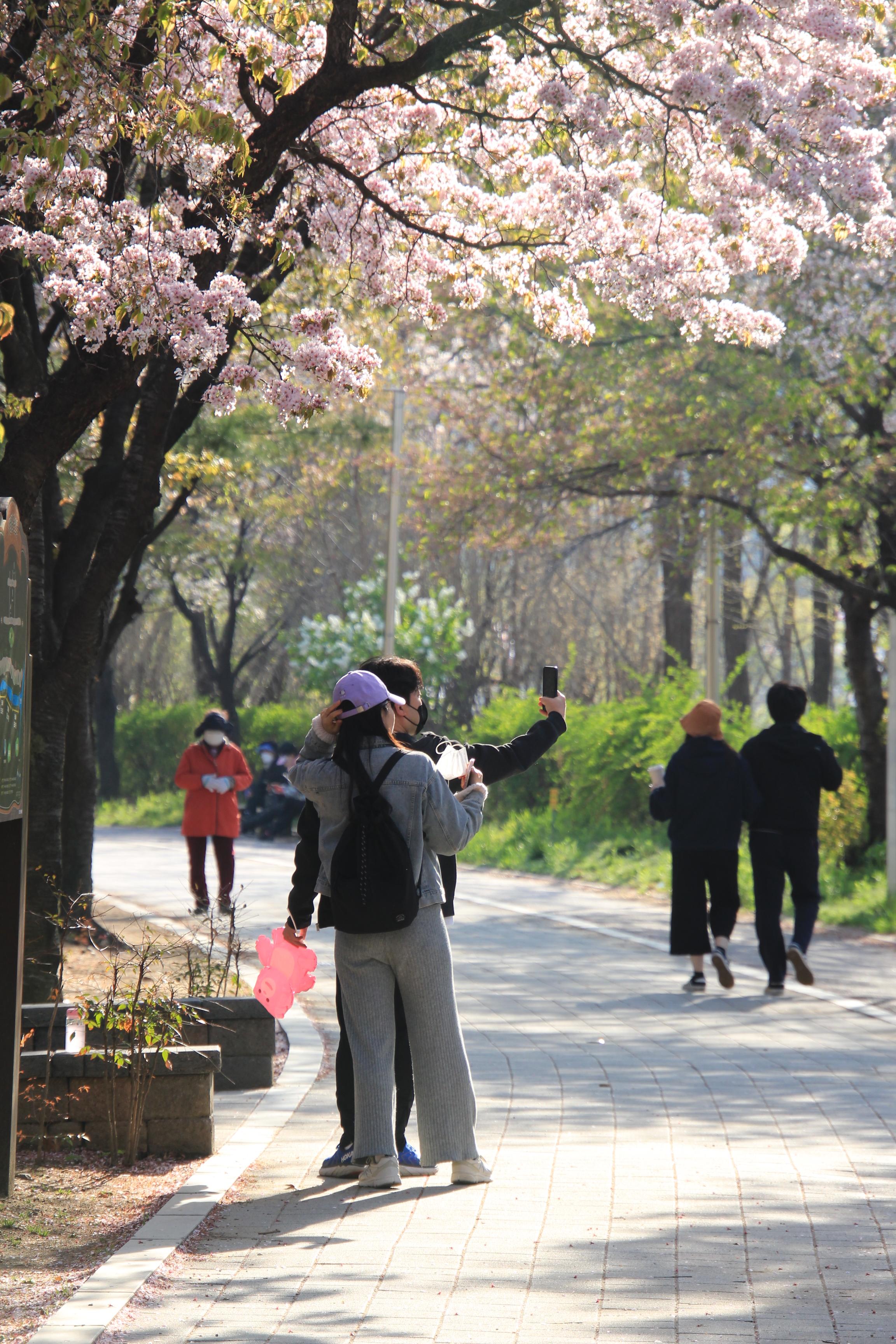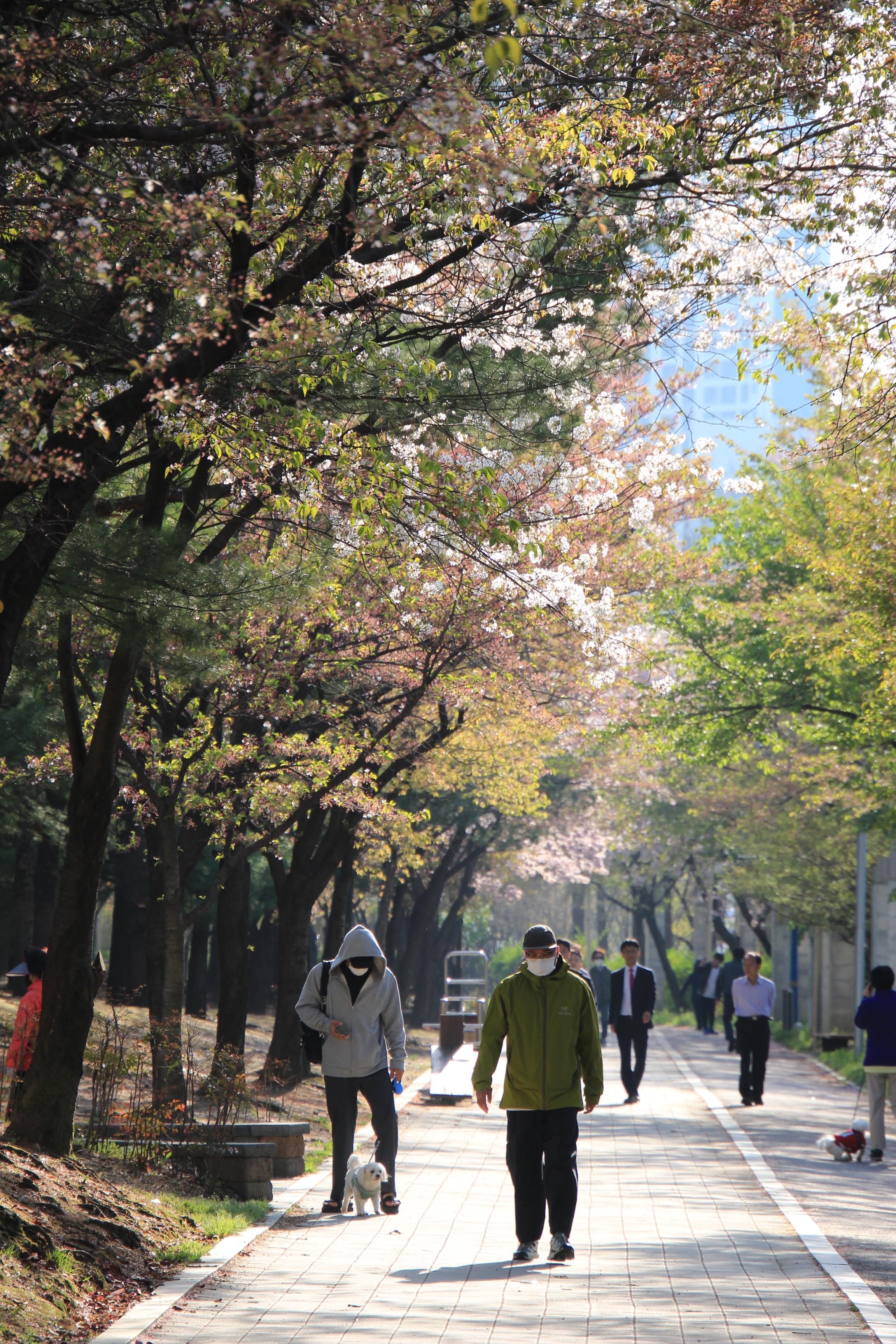 2023.04.09/ #도시기록 #안양 #학운공원 #벚꽃맛집/ 충훈부, 옛검역원 등 안양 도심속 벚꽃나무 대부분은 꽃잎 떨어지고 졌는데 학운공원 산책로의 벚꽃은 아직 예쁜 자태를 뽐내고 있다.