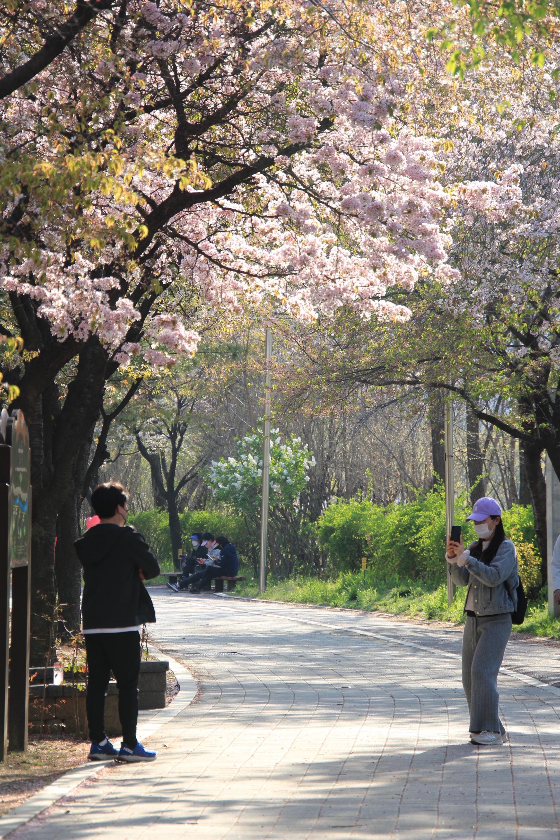 2023.04.09/ #도시기록 #안양 #학운공원 #벚꽃맛집/ 충훈부, 옛검역원 등 안양 도심속 벚꽃나무 대부분은 꽃잎 떨어지고 졌는데 학운공원 산책로의 벚꽃은 아직 예쁜 자태를 뽐내고 있다.