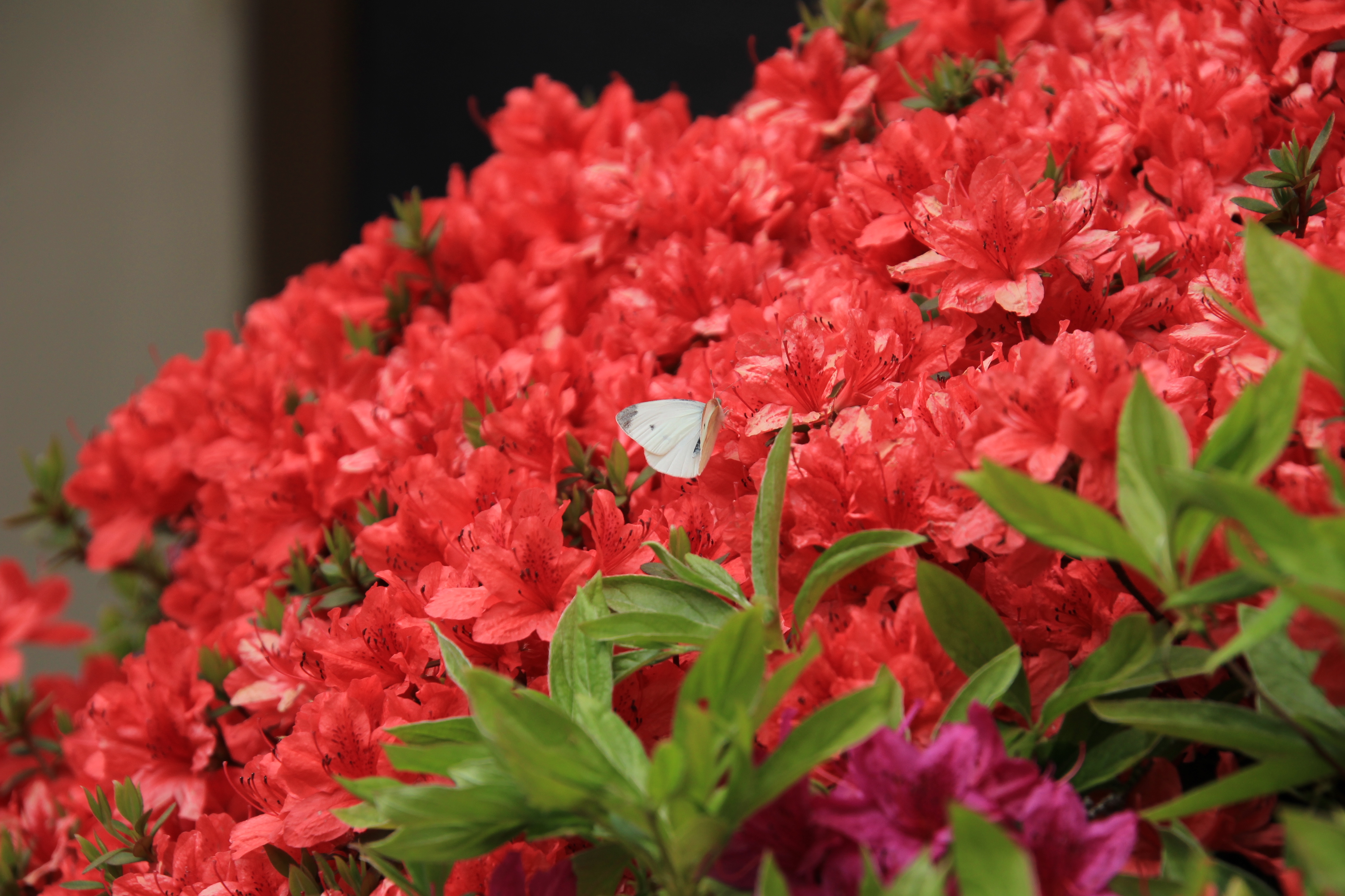 2023.04.13/ #도시기록 #나비 #만안구청/ 벌과 나비 보기 어려운 요즈음 안양 만안구청 정원에 활짝 핀 철쭉꽃의 아름다움에 반한듯 나비 두세마리가 나타나 춤을 춘다.