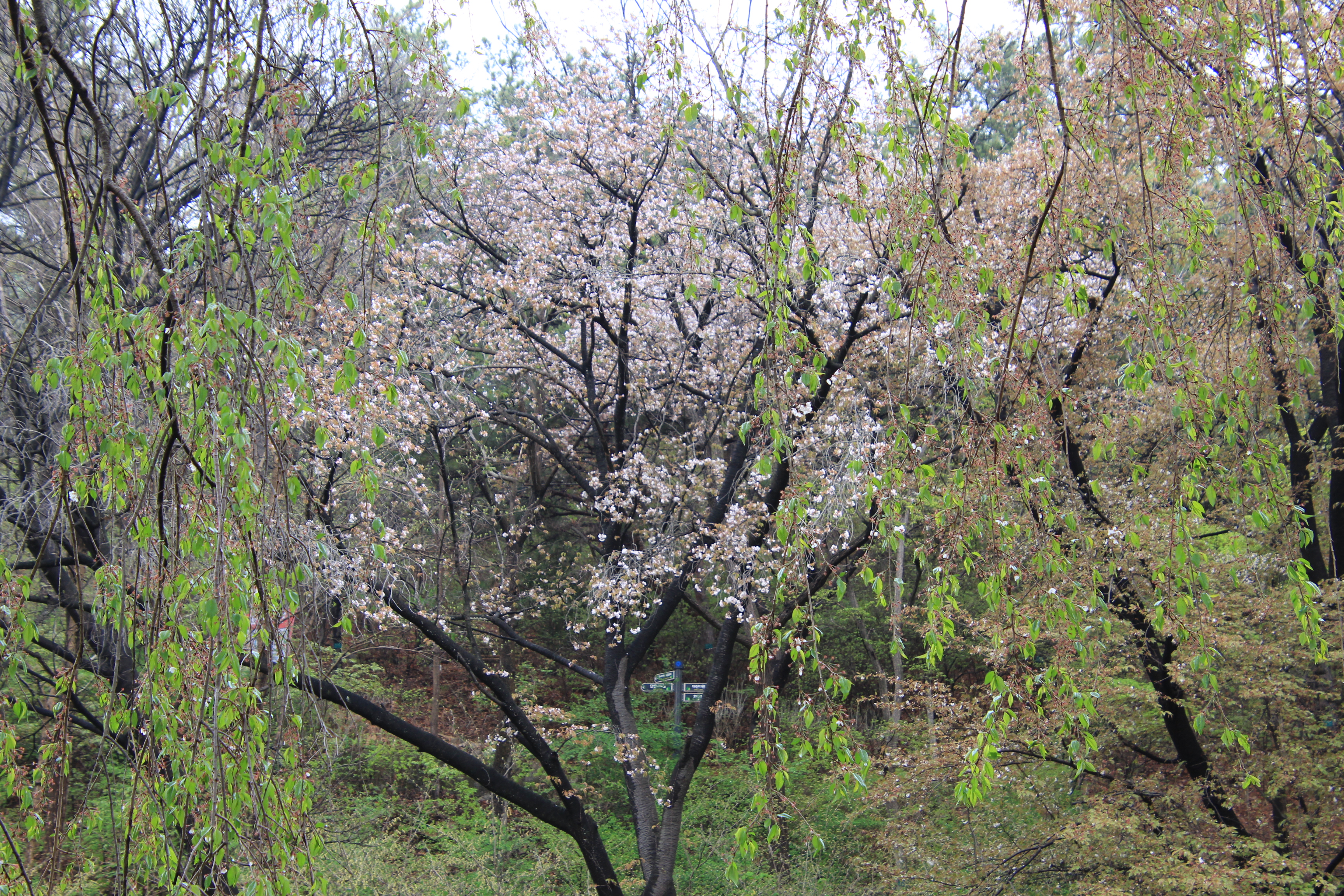 수목원이 관악산 깊숙한 계곡에 있는 관계로 기온차 때문인지 자목련과 개나리는 아직 만개중이다. 또 벚꽃은 하얀 꽃비를 바람에 휘날리고 연못가에서는 앙증맞은 금낭화들이 이쁜 자태들을 발산하고 있다.