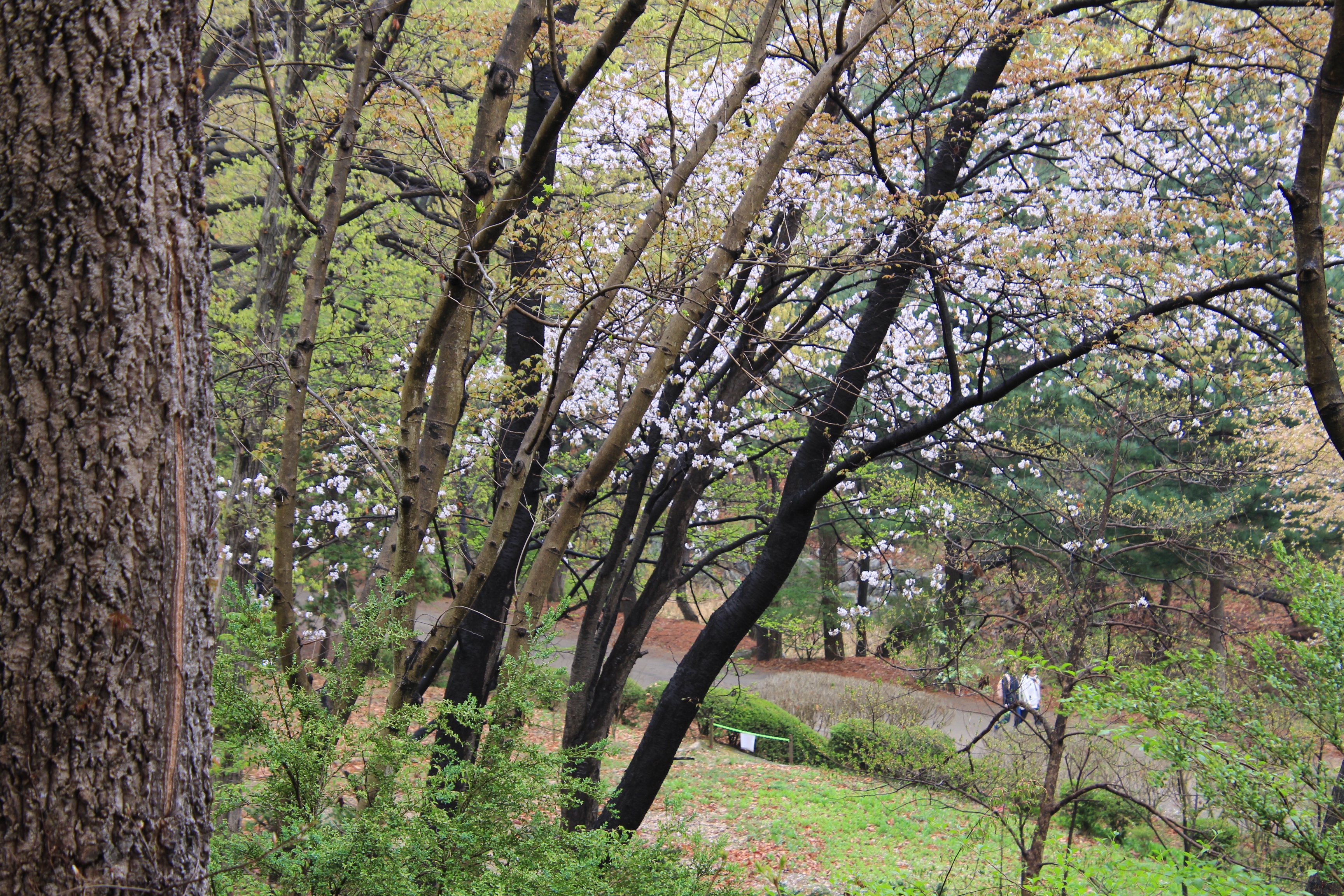 수목원이 관악산 깊숙한 계곡에 있는 관계로 기온차 때문인지 자목련과 개나리는 아직 만개중이다. 또 벚꽃은 하얀 꽃비를 바람에 휘날리고 연못가에서는 앙증맞은 금낭화들이 이쁜 자태들을 발산하고 있다.