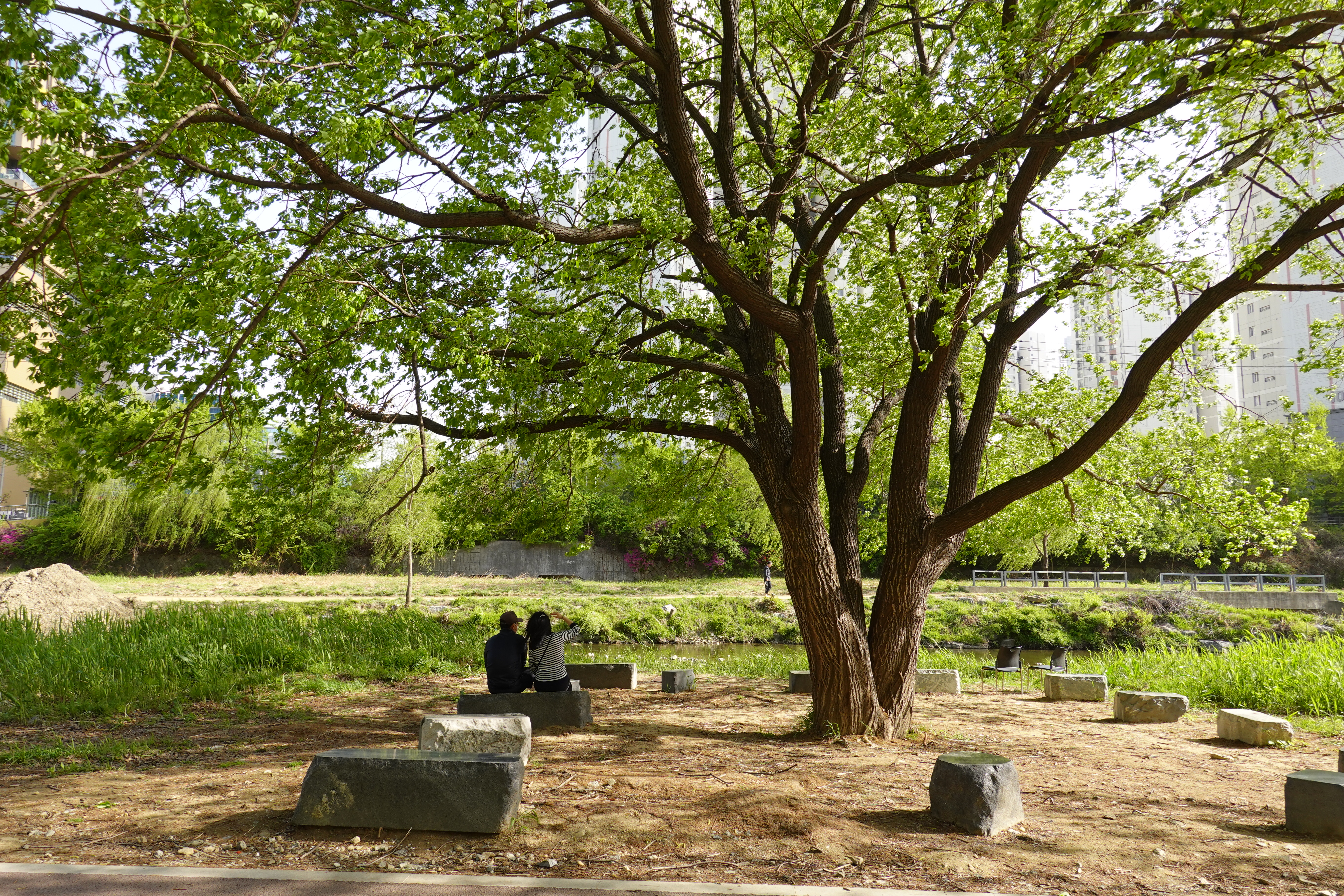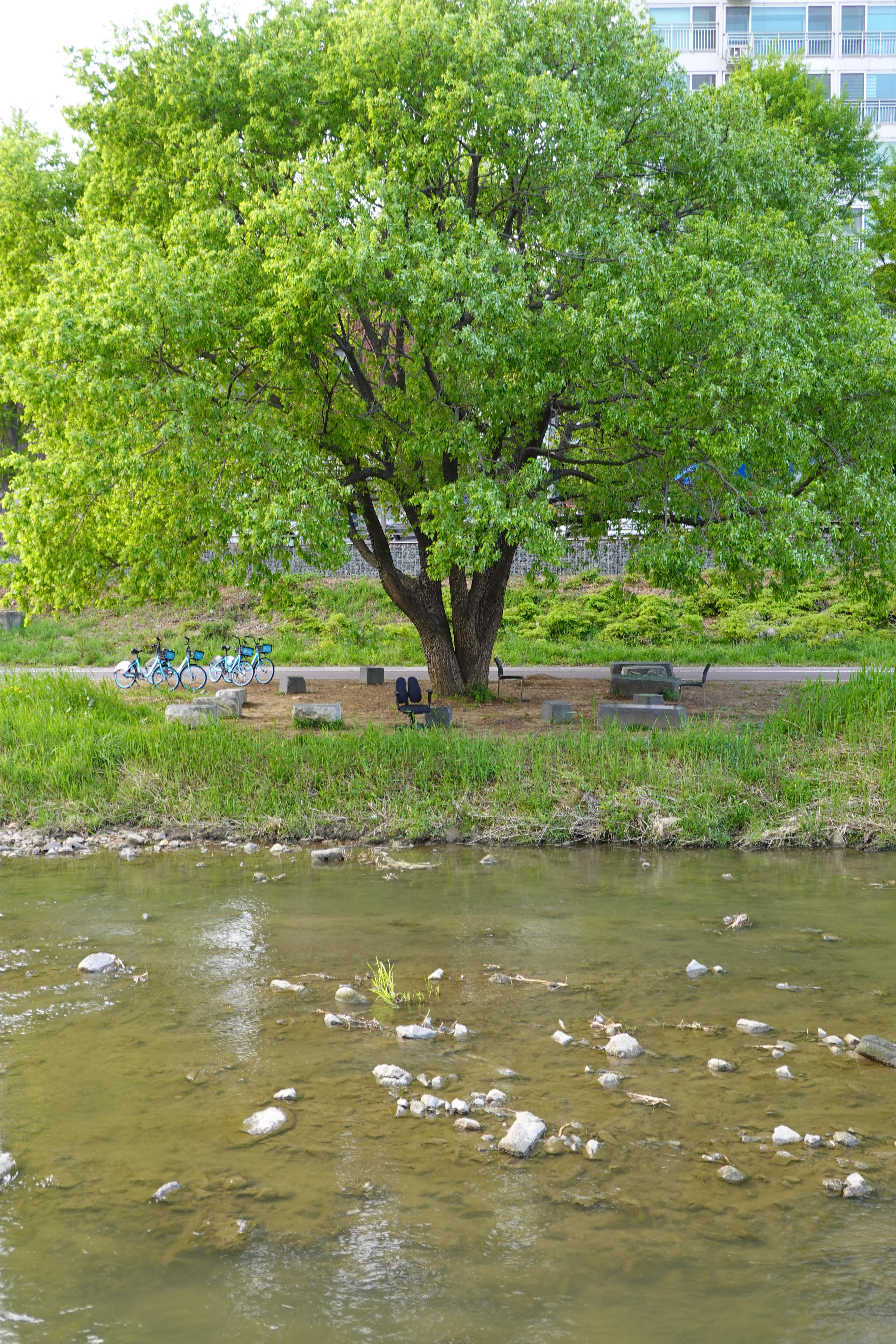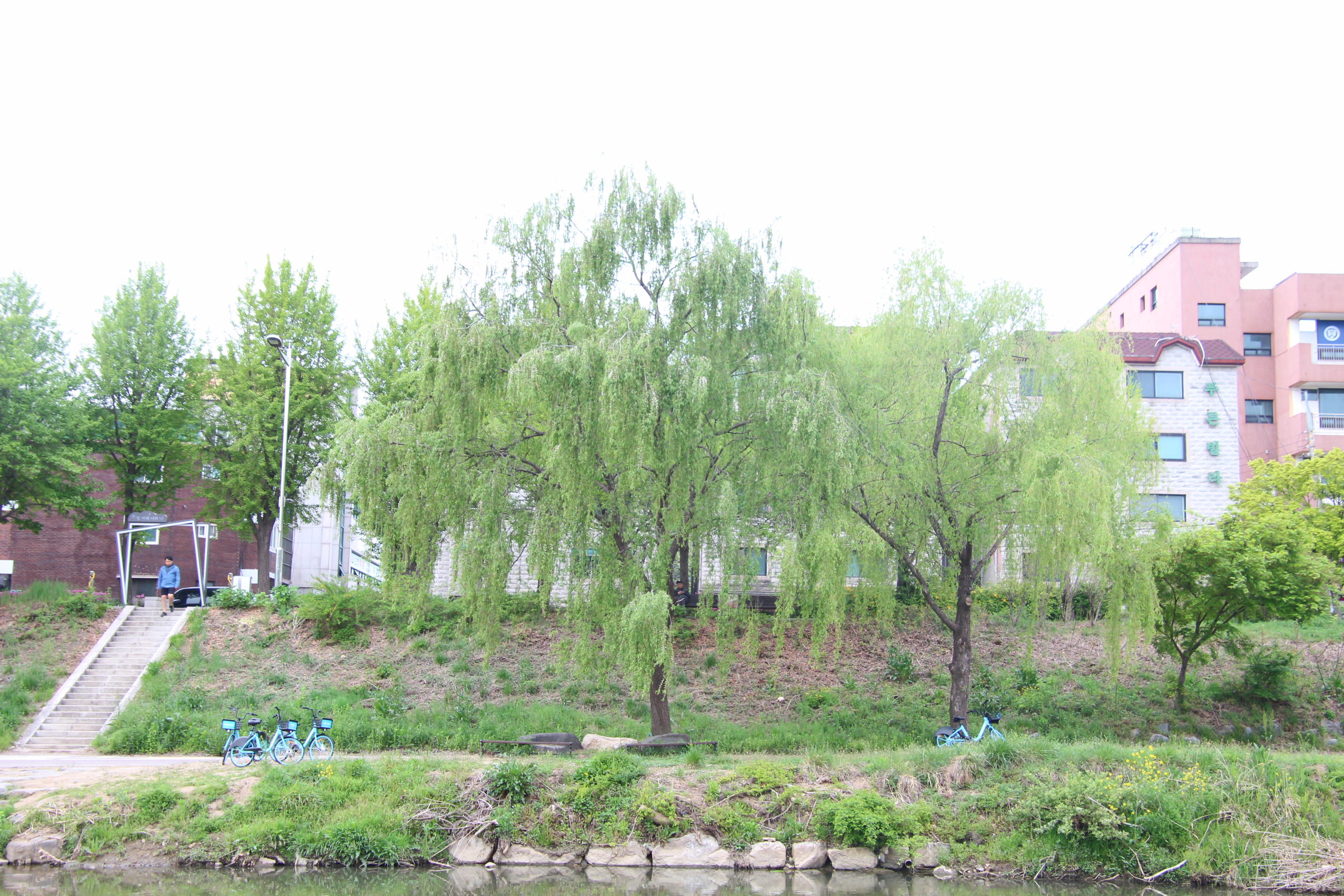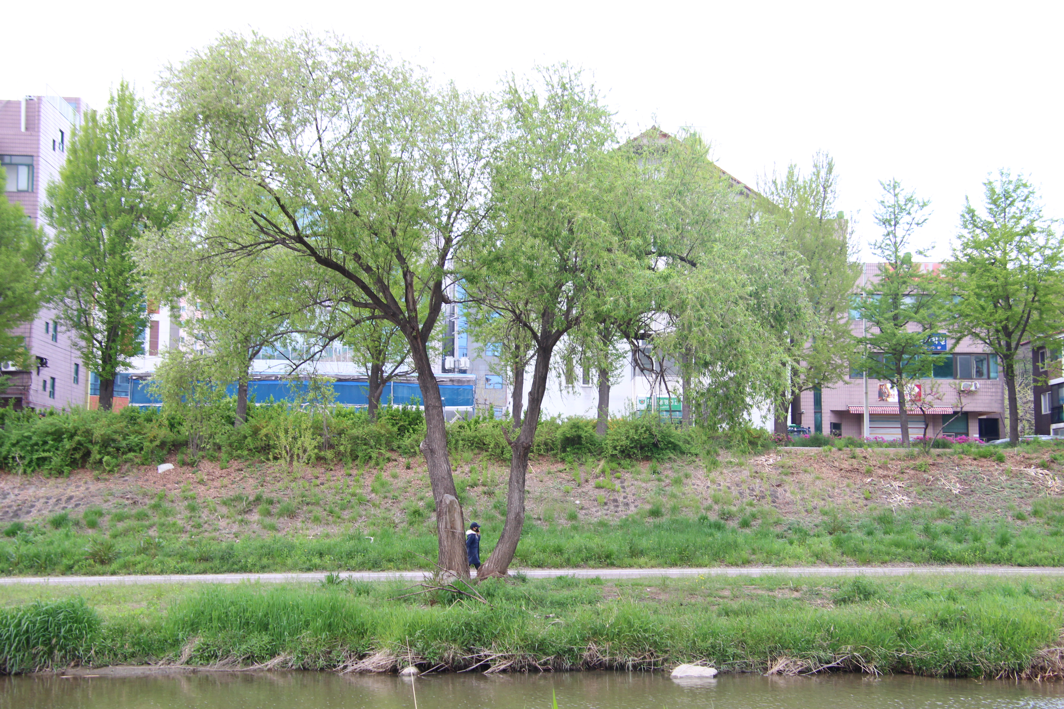 2023.04.18/ #도시기록 #나무들 #안양 #학의천/ 지난해 여름 엄청난 물난리를견뎌내고, 이후 치수대책을 이유로 천변에서 잘 자라온 굵은 나무들이 베어지고, 짤려져 사라졌음에도 살아남은 학의천 나무들. 삭막해져 버린 하천에 푸릇푸릇 청량감을 만들어주고, 점점 무더워지는 날씨에 시원한 바람과 그늘을 줄것이기에 너무 고맙고 귀한 존재들입니다.